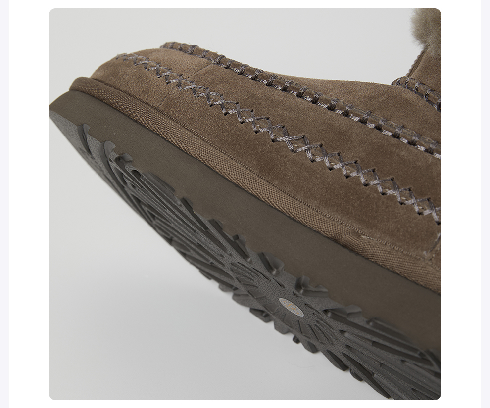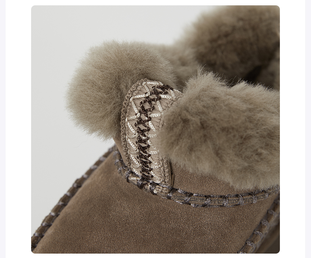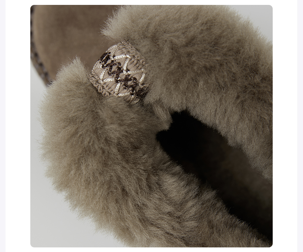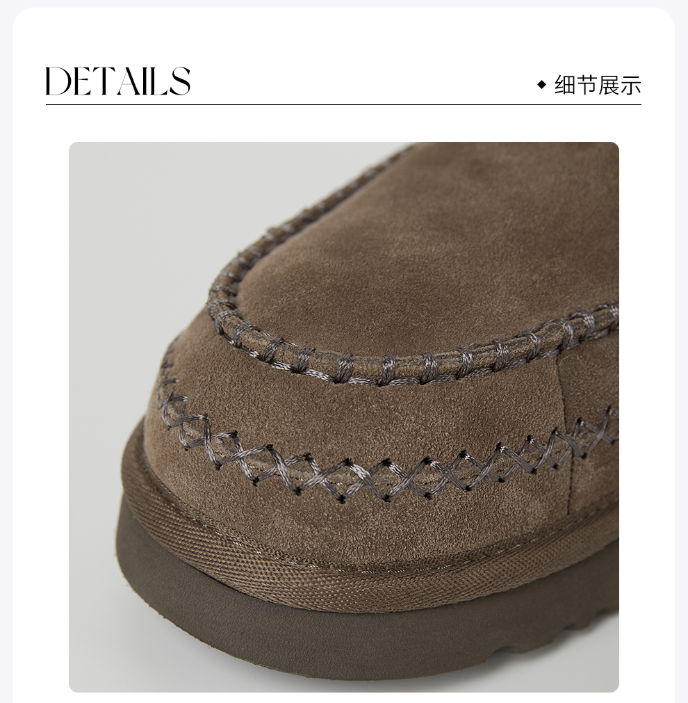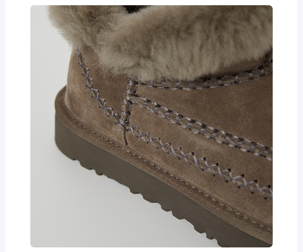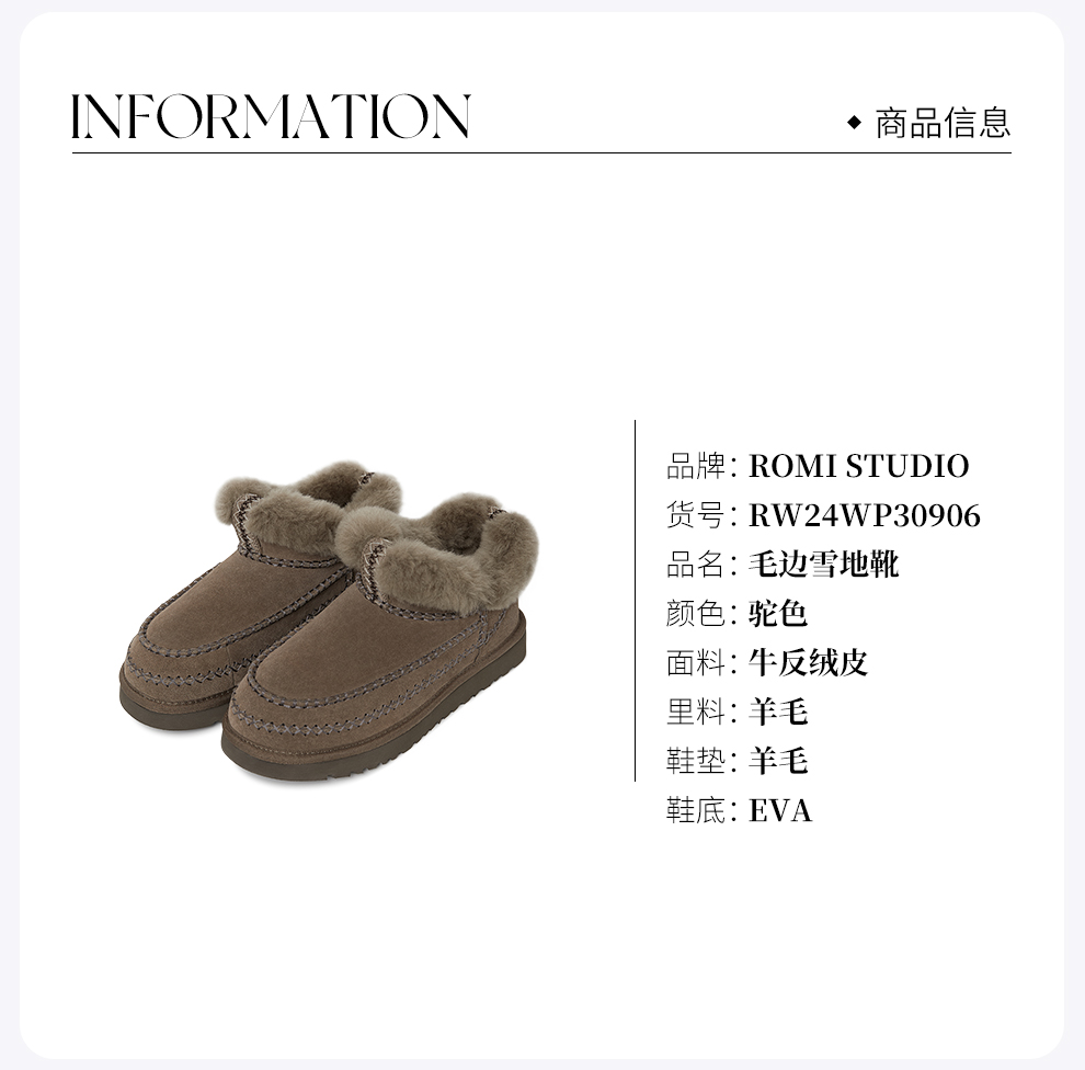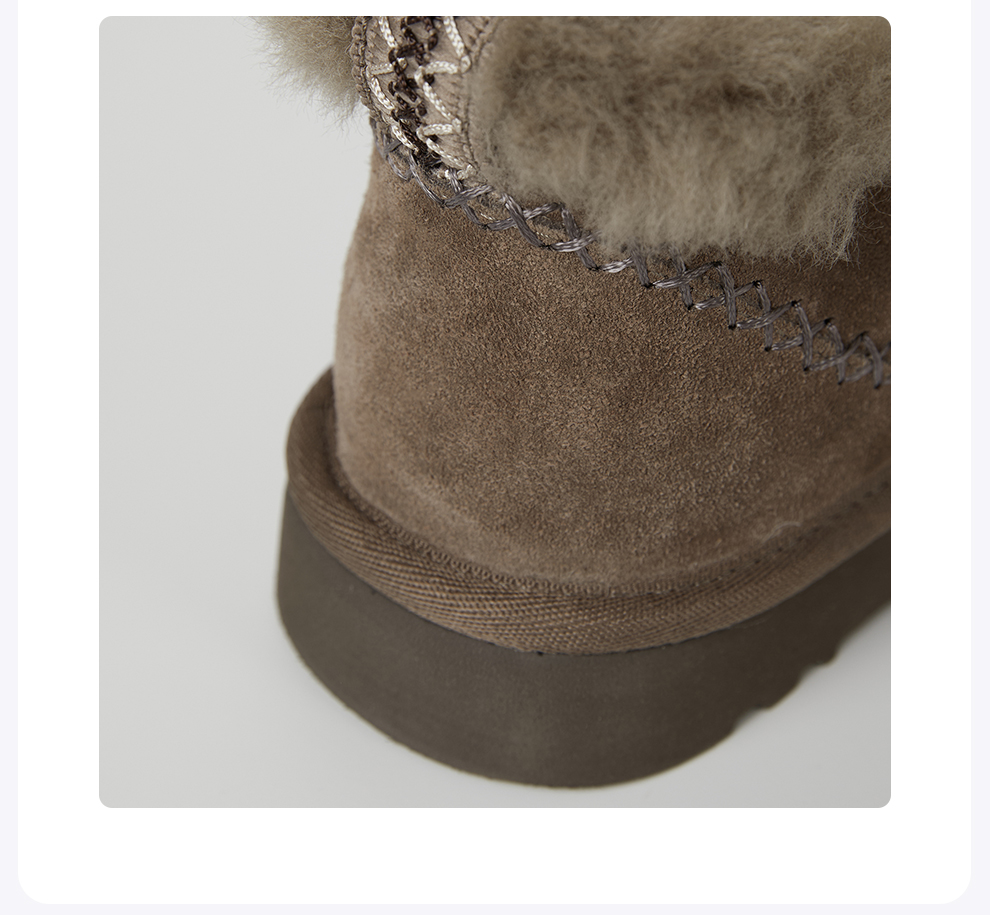 ROMI STUDIO牛反绒拼羊羔毛手工马克线短筒毛边雪地靴RW24WP30906