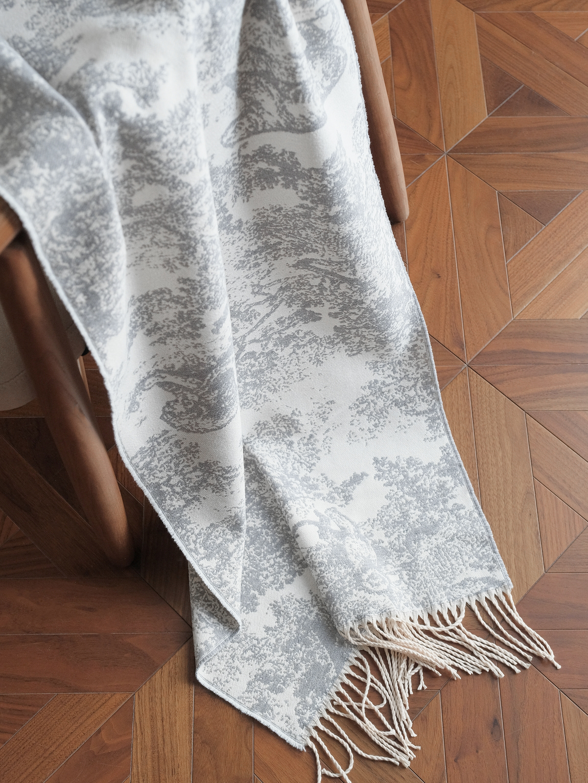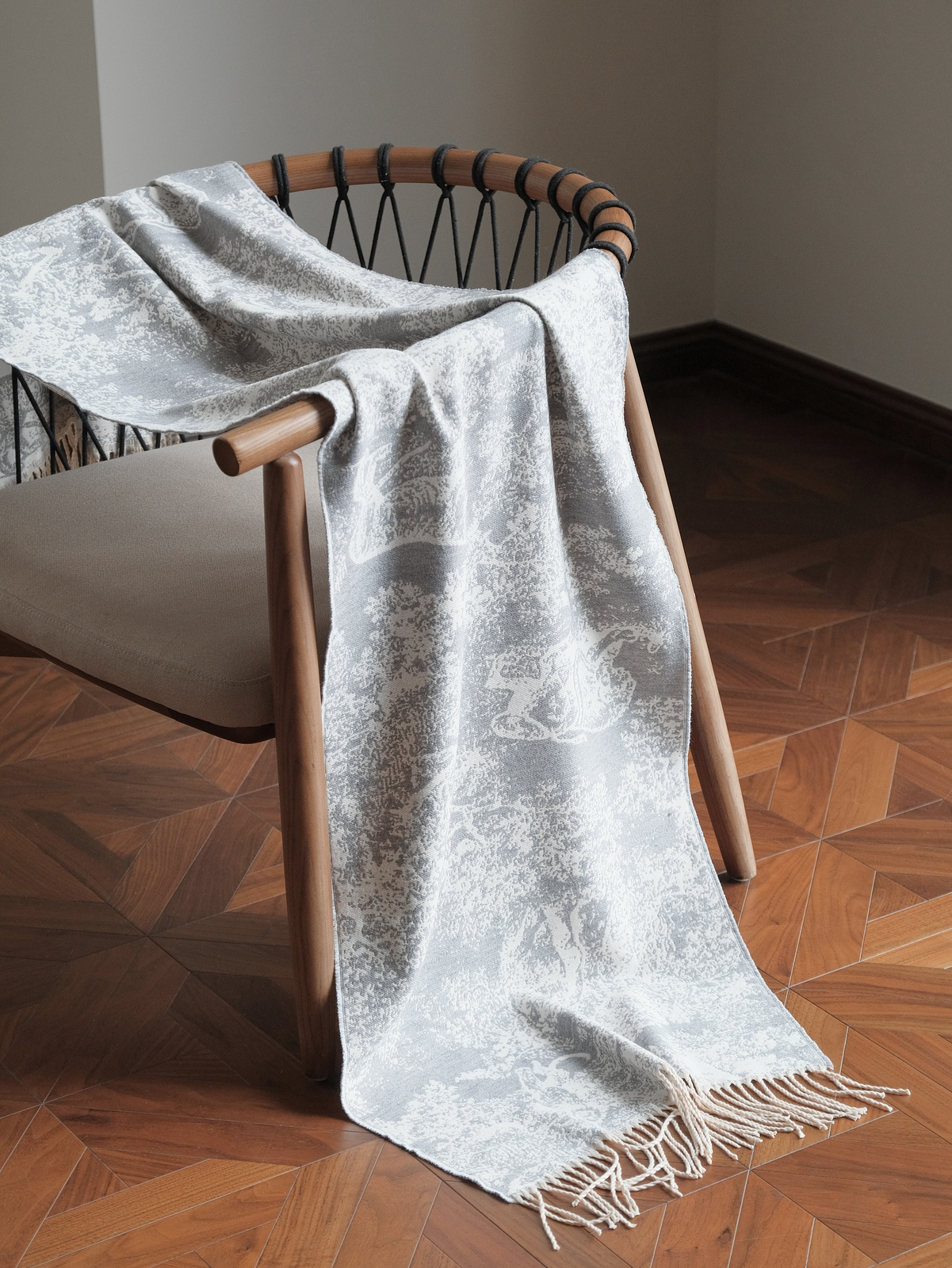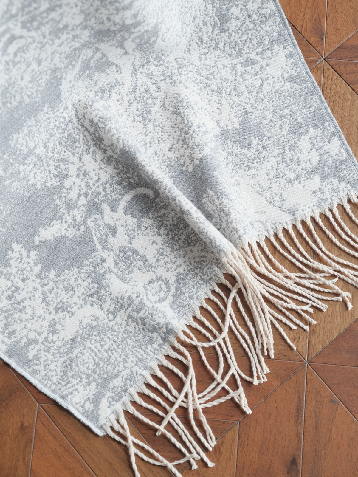 这款围巾饰以灰色 Sauvage 茹伊印花,全新演绎 经典图案。采用山羊绒和绵羊毛混纺面料精心制作,饰以流苏饰边和 Cistian 标志。长款设计,可系在颈部或披在肩部。建议专业干洗。