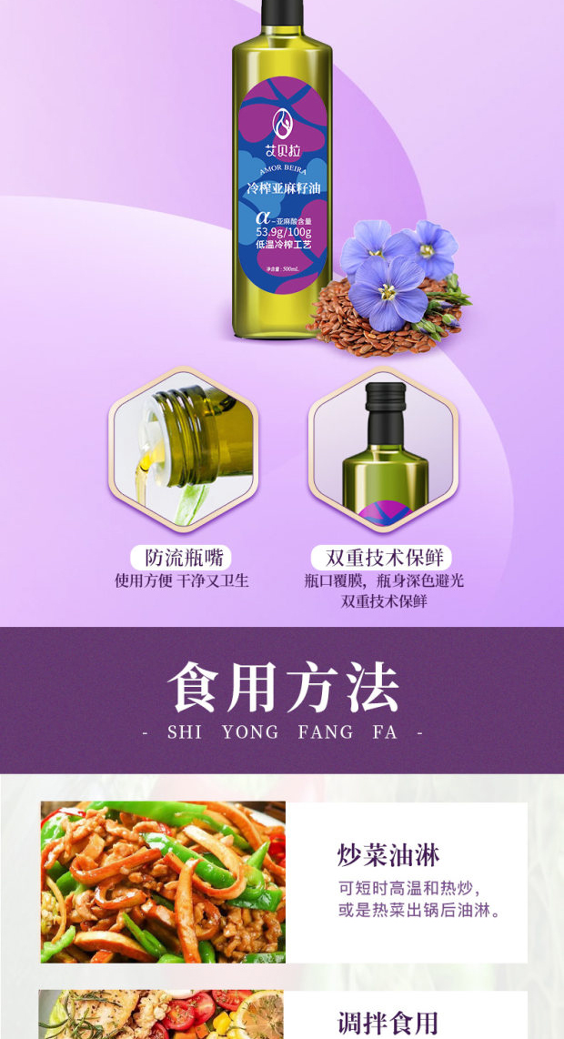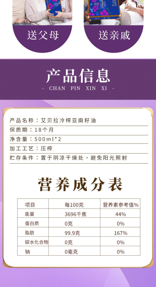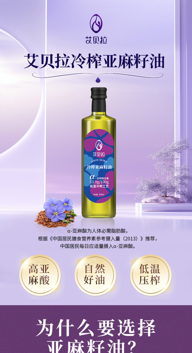 艾贝拉冷榨亚麻籽油礼盒500ml*2