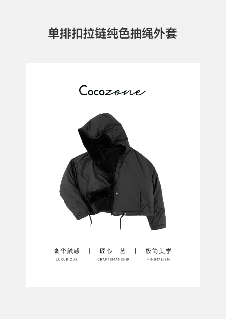COCO ZONE 刘 一一 单排扣拉链纯色抽绳外套 CD1A1810