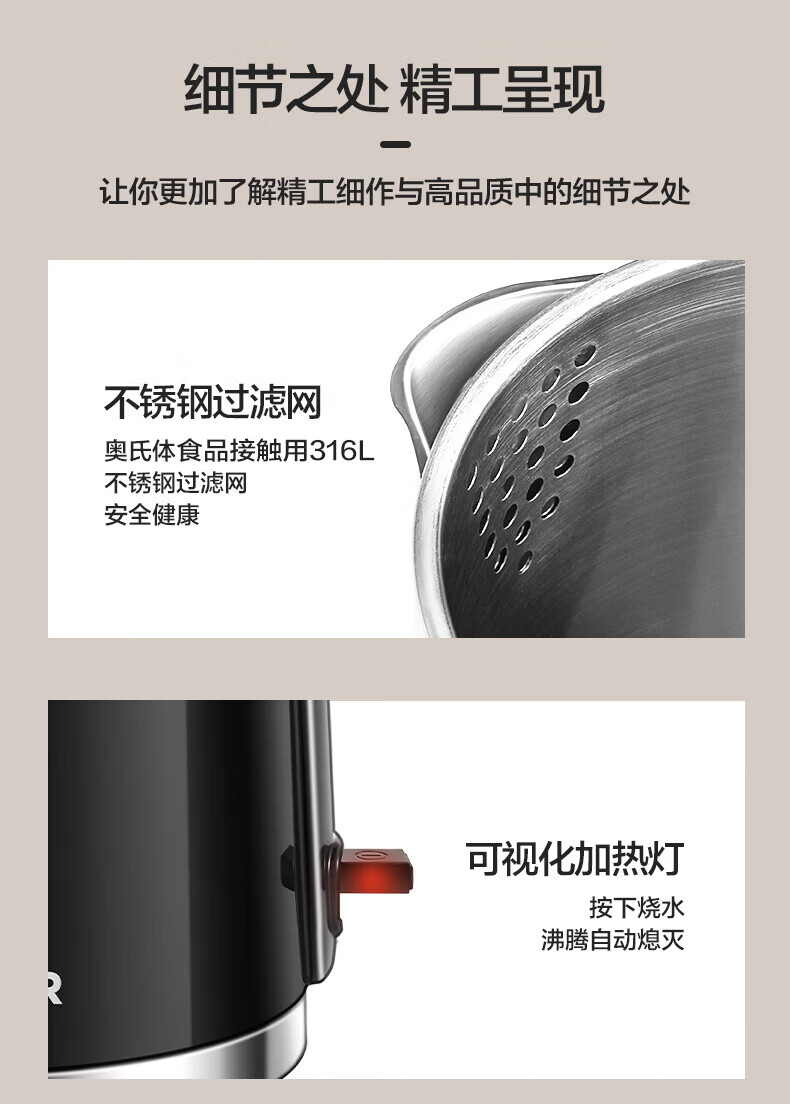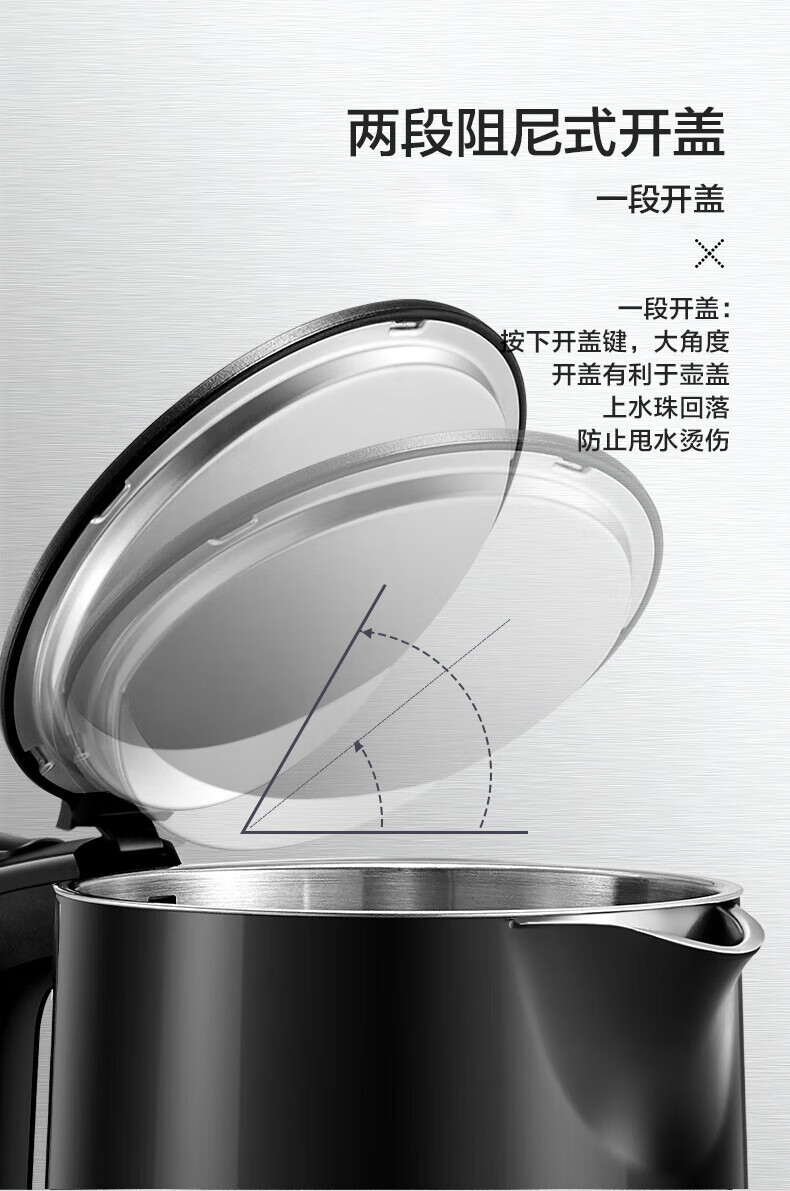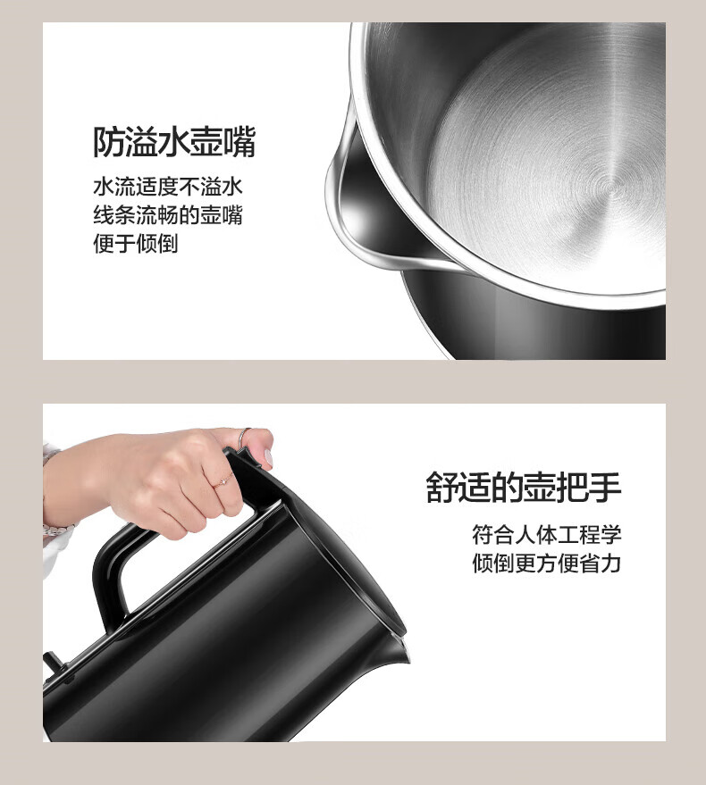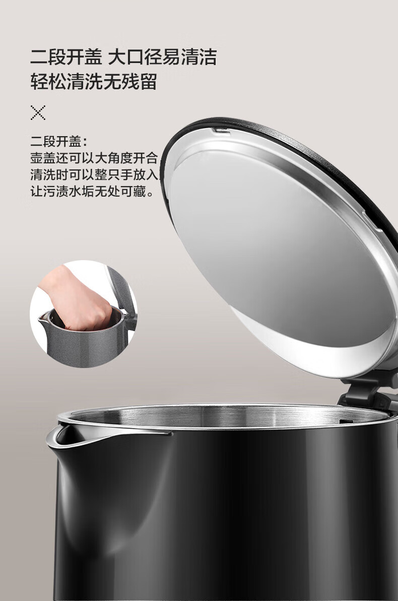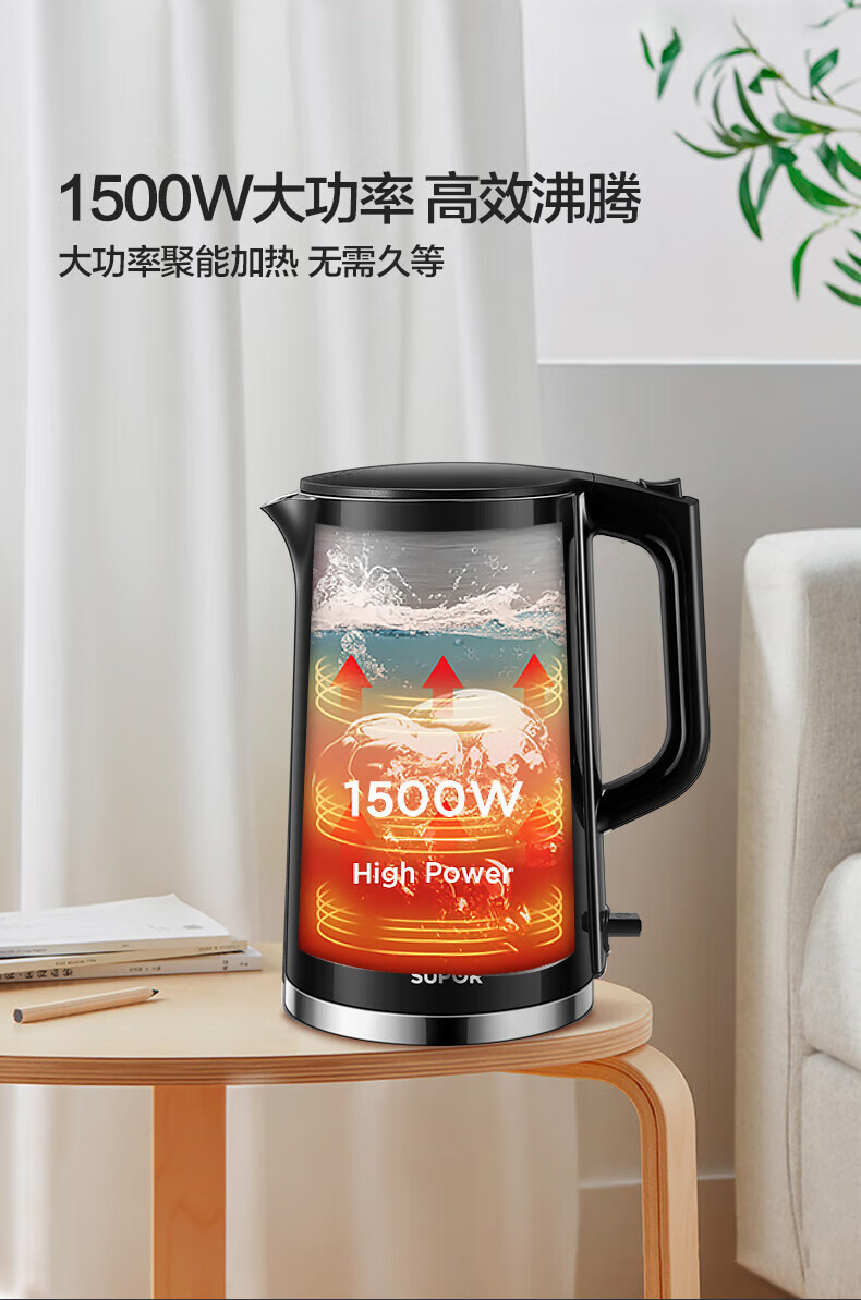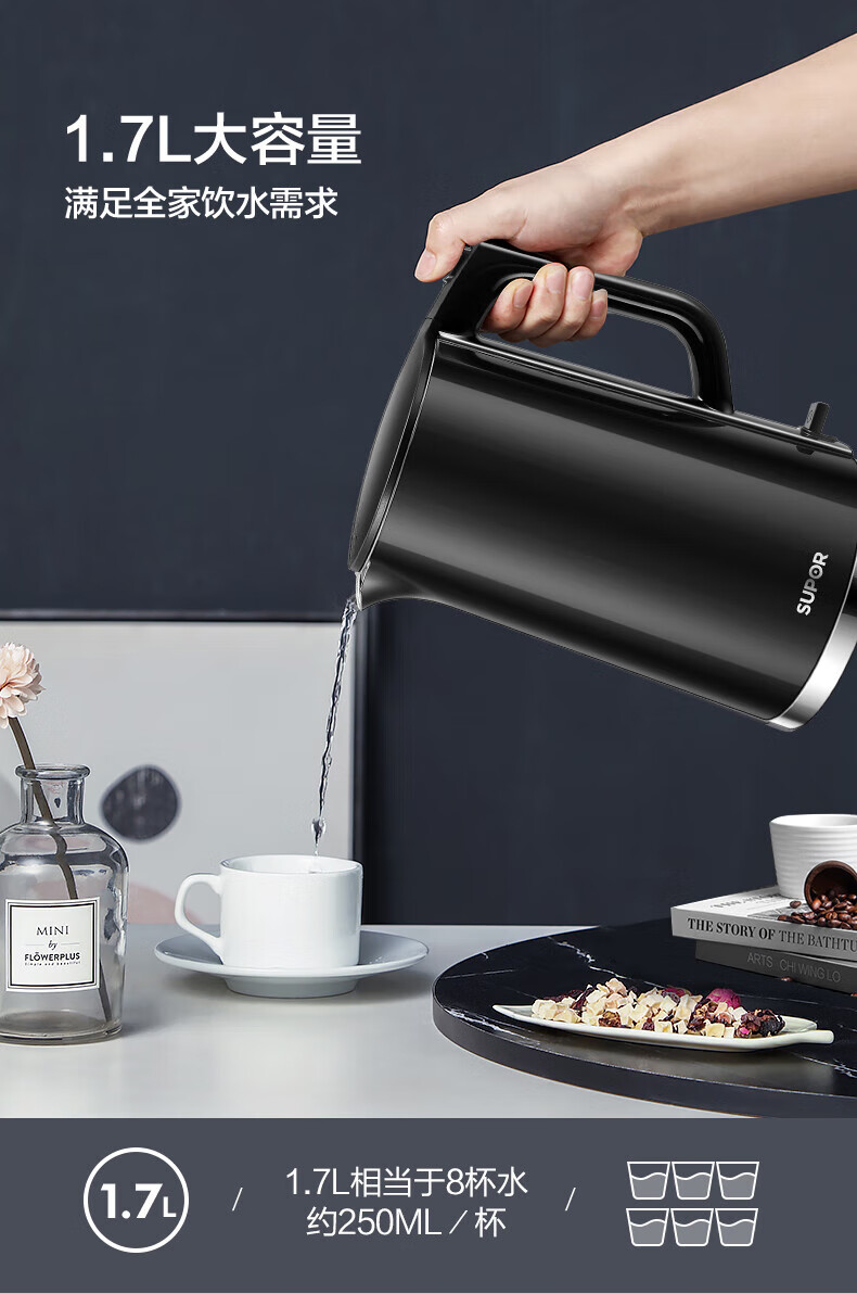 苏泊尔(SUPOR)电水壶双层保温防烫电热水壶1500W大功率全钢无缝316L不锈钢烧水壶家用1.7升SW-17S16L