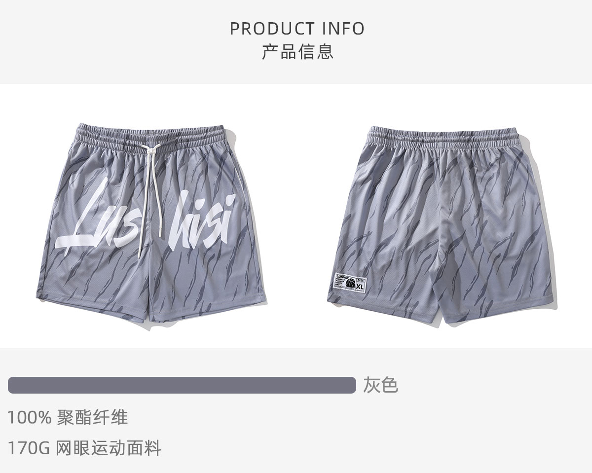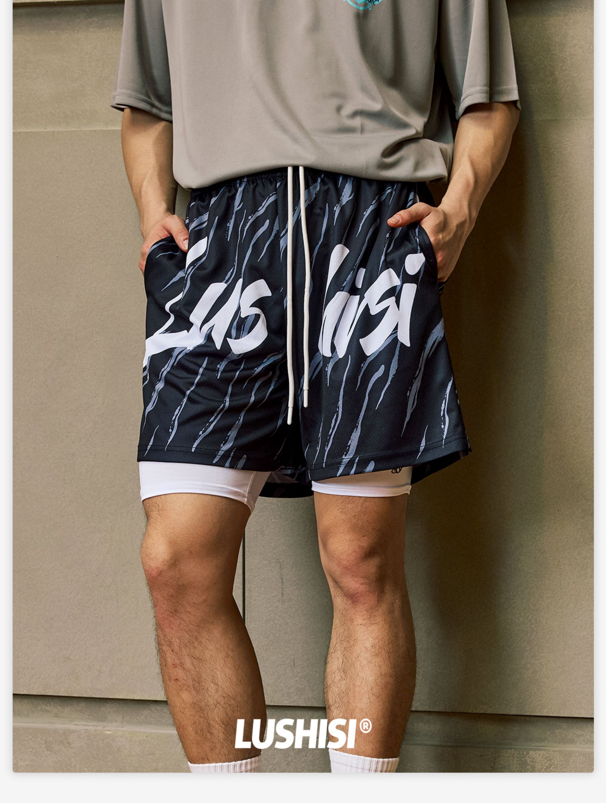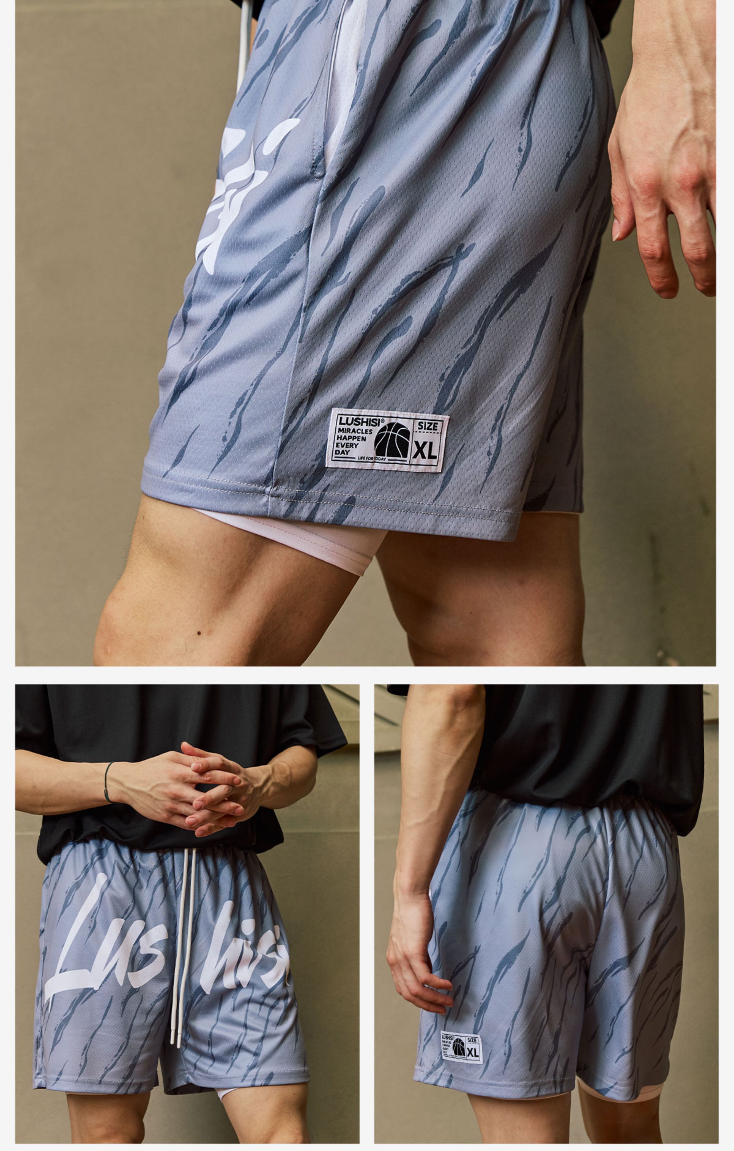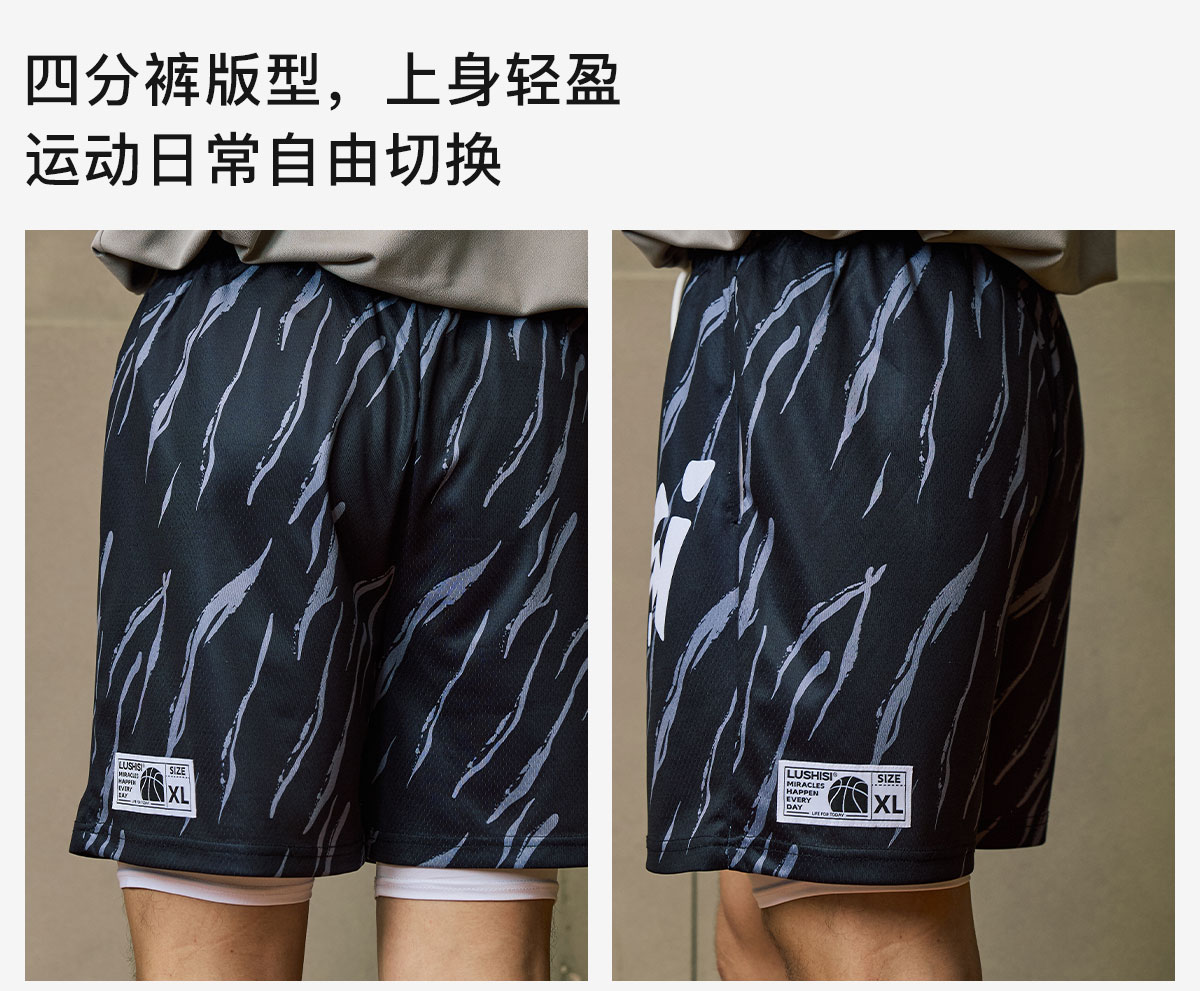 LUSHISI斑马纹主题印花美式速干不过膝四五分网眼运动短裤篮球裤