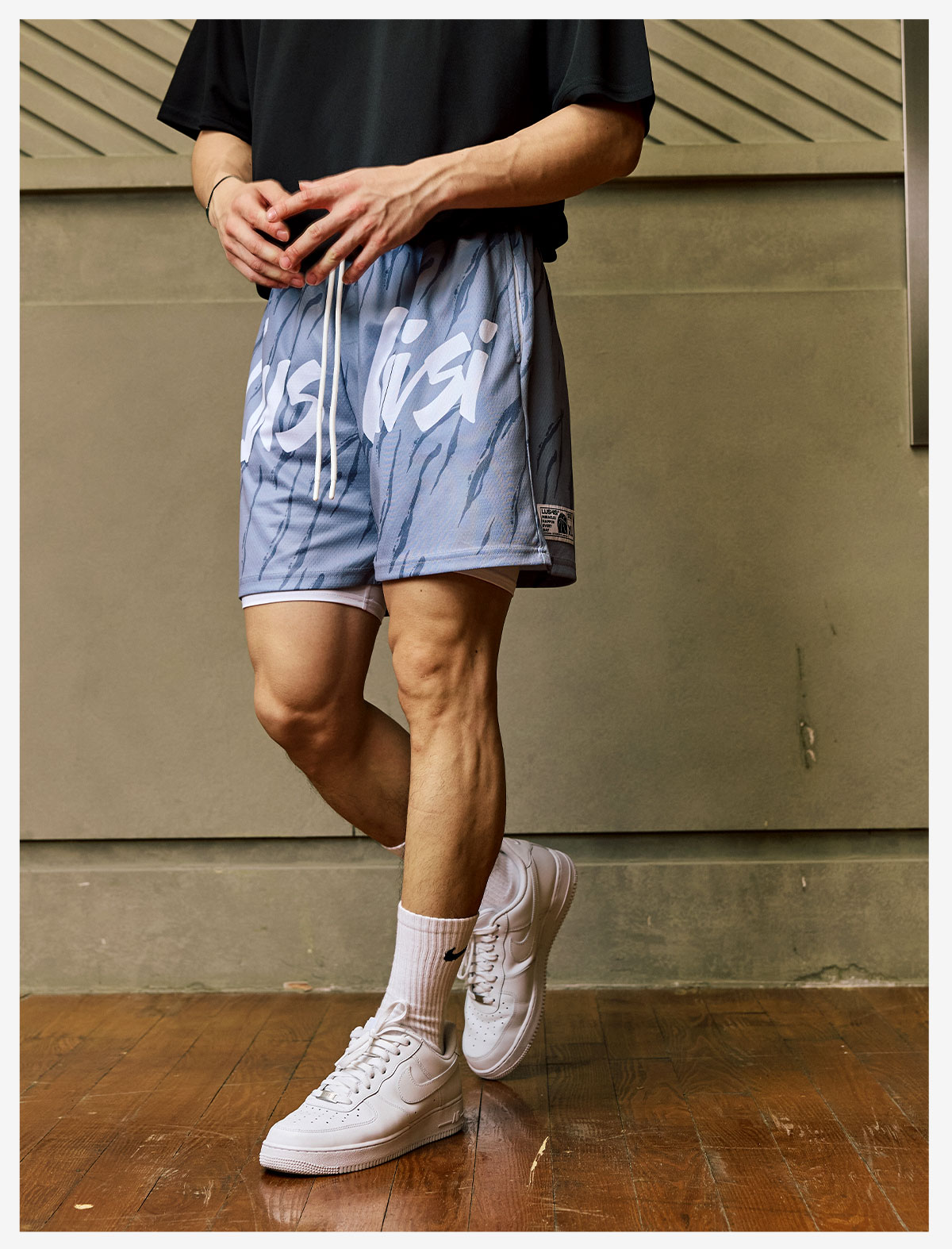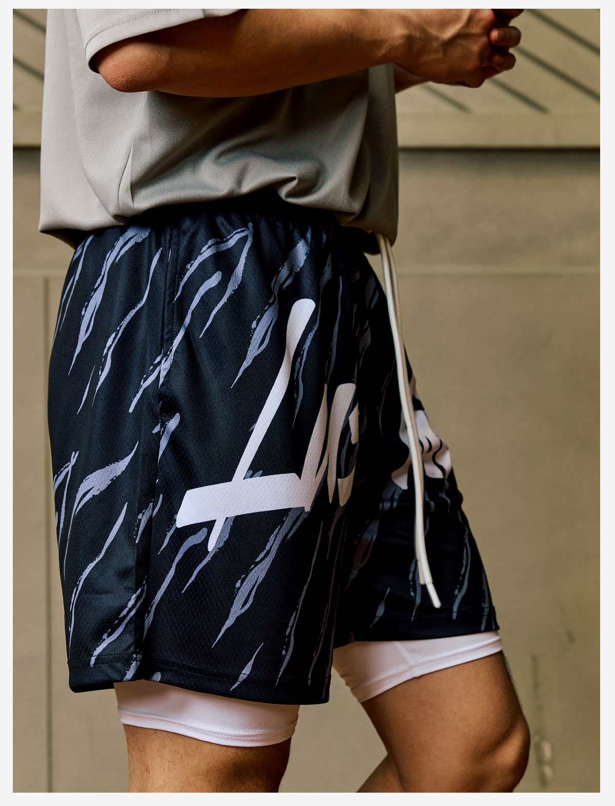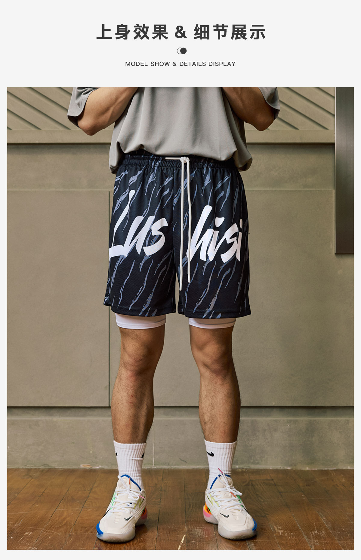 LUSHISI斑马纹主题印花美式速干不过膝四五分网眼运动短裤篮球裤