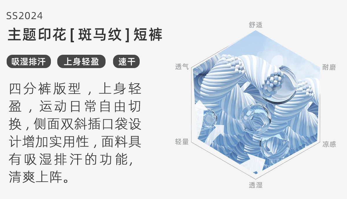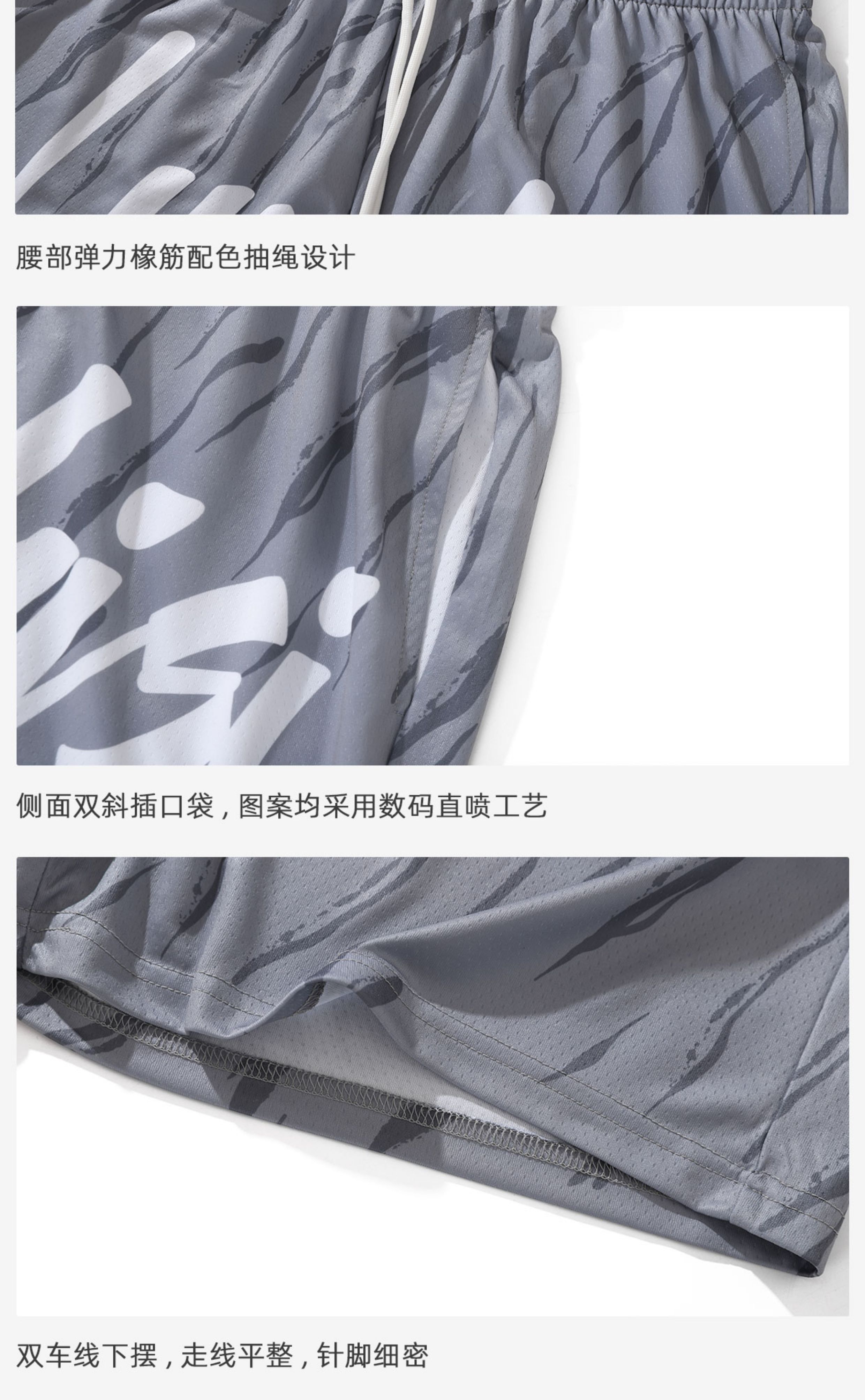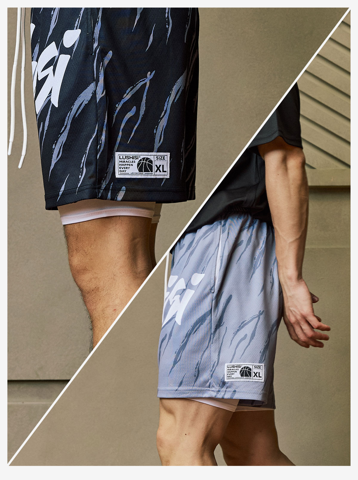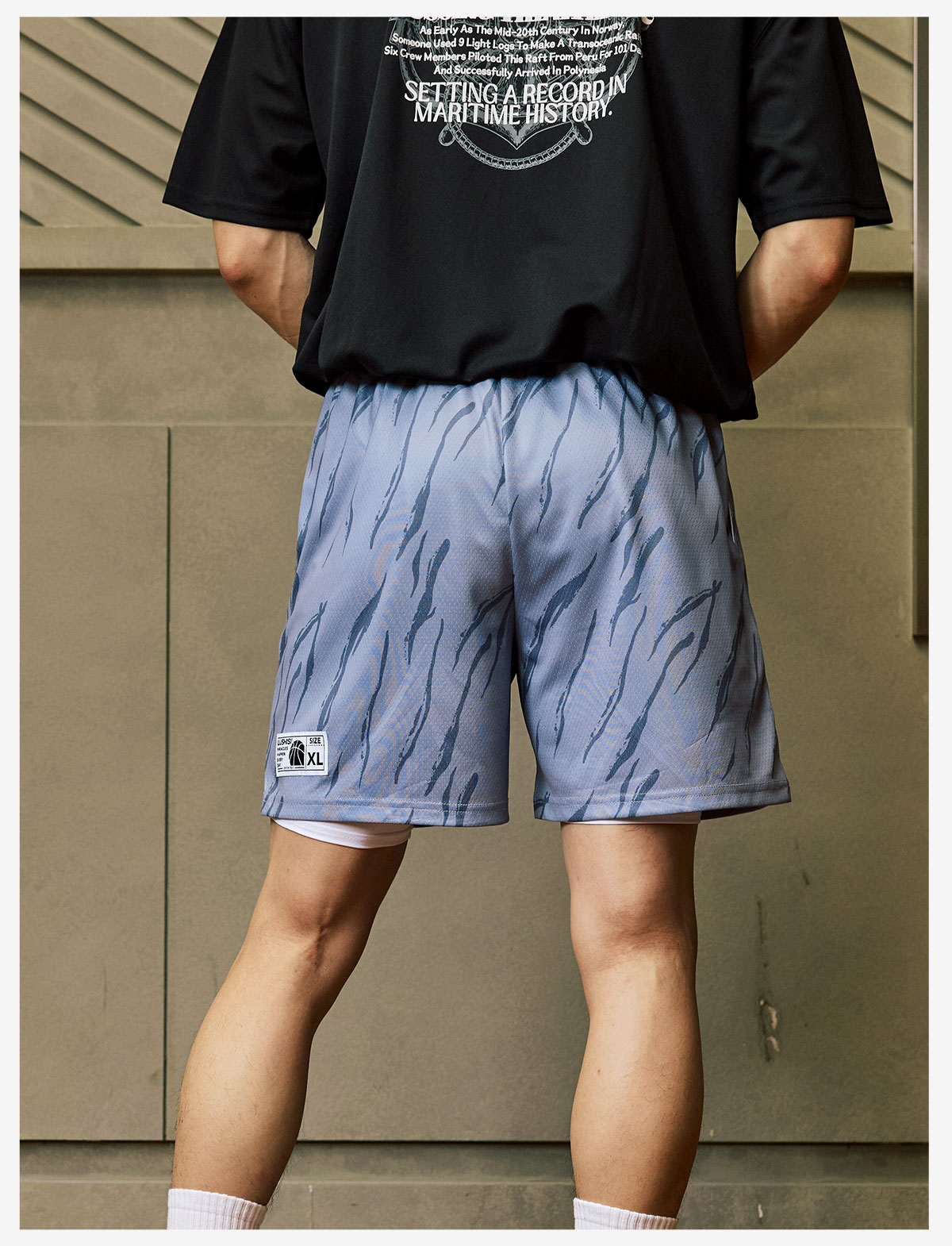LUSHISI斑马纹主题印花美式速干不过膝四五分网眼运动短裤篮球裤