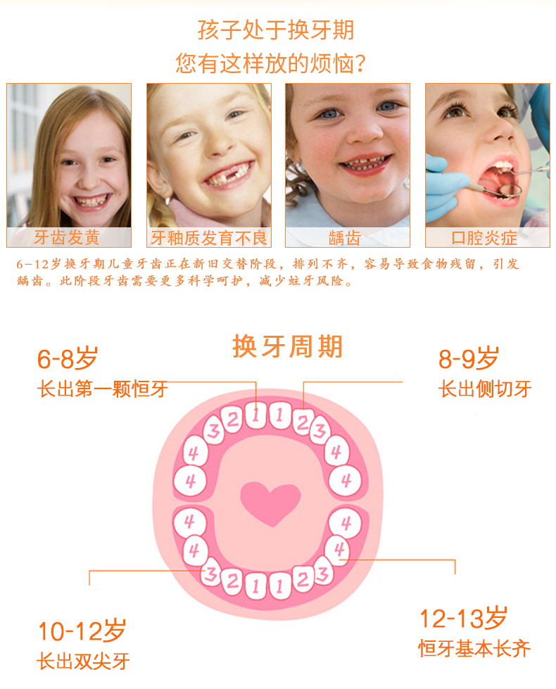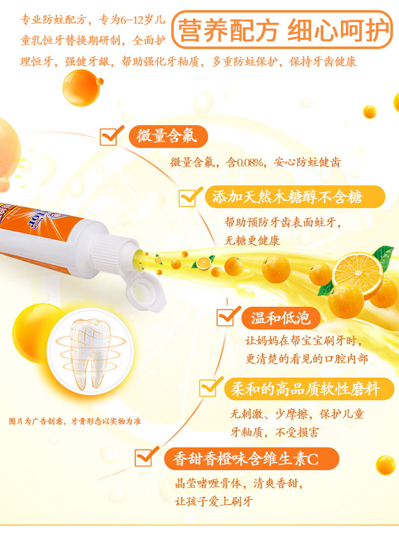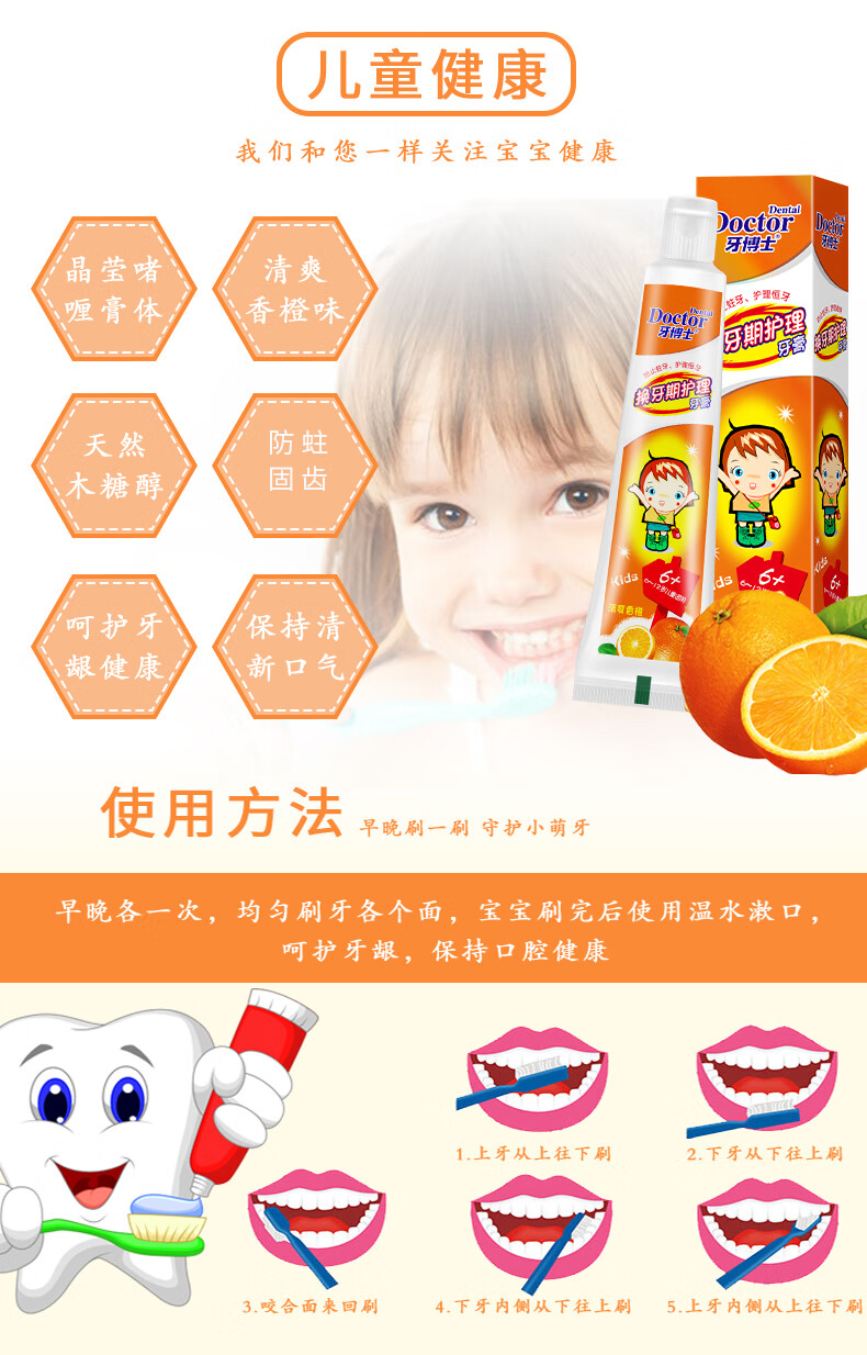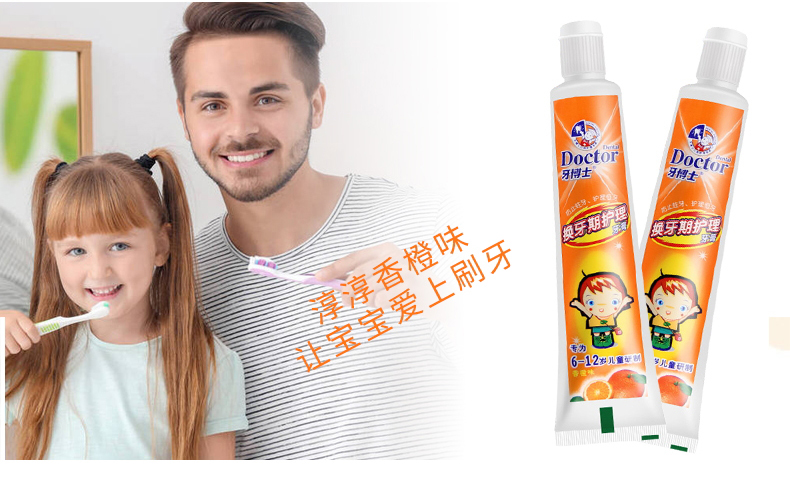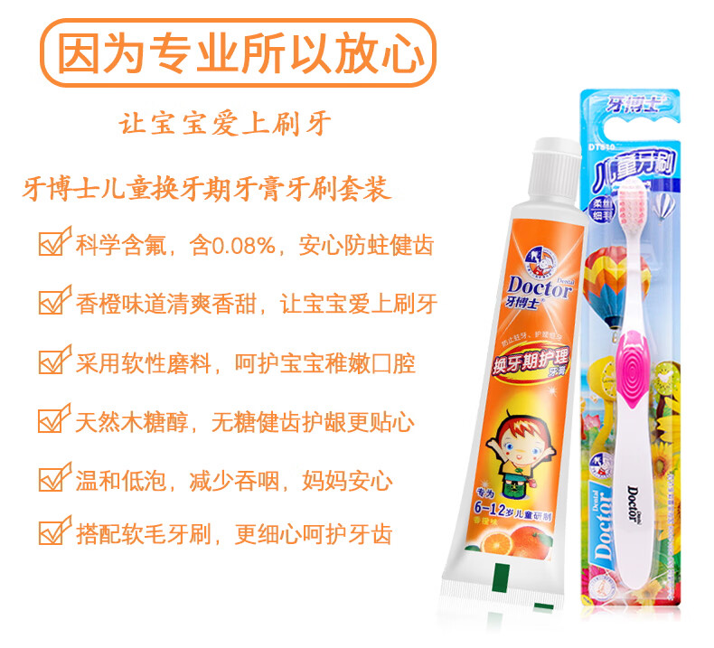 【鼎】牙博士儿童牙膏牙刷6-12岁含氟防蛀固齿 (香橙味50g+1支牙刷)