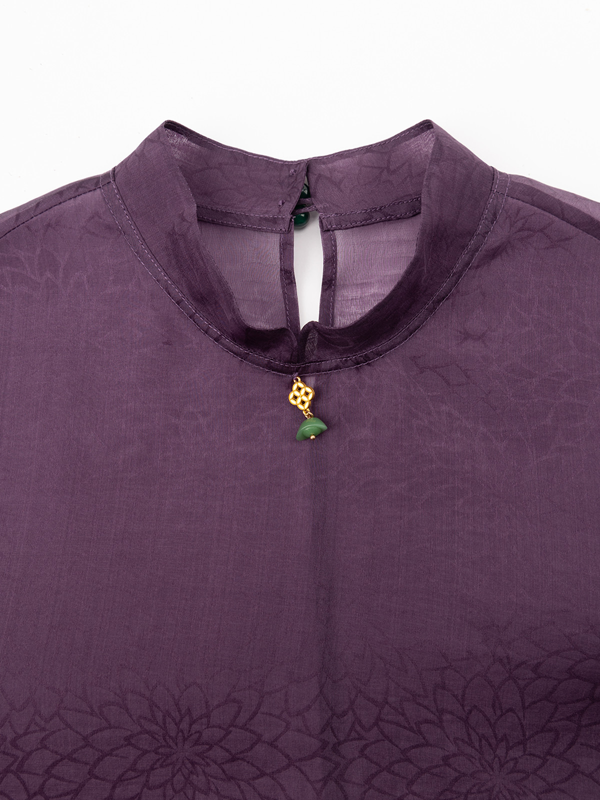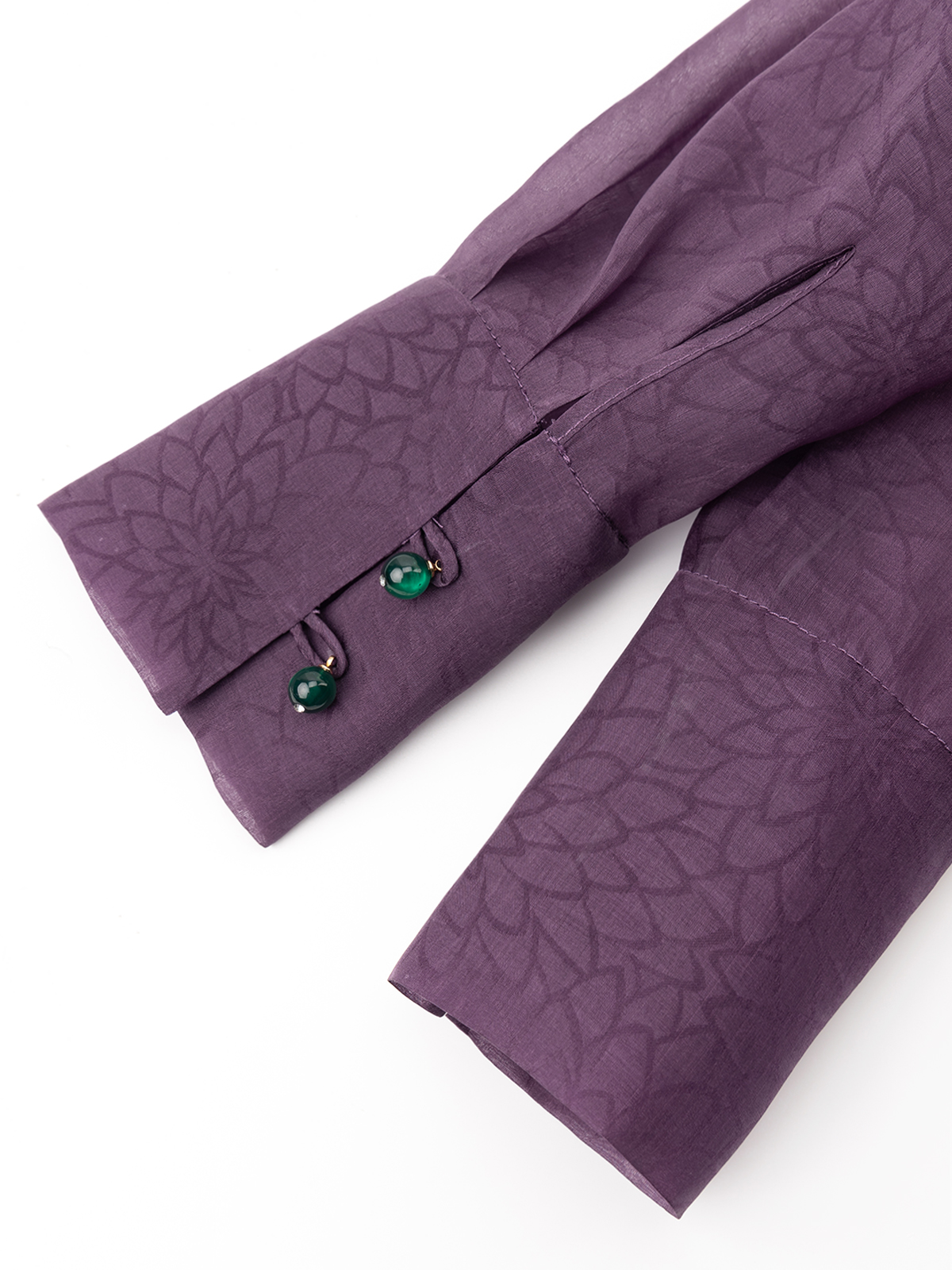 COCO ZONE中式立领提花长袖衬衫早春时尚国风上衣CC1A0482