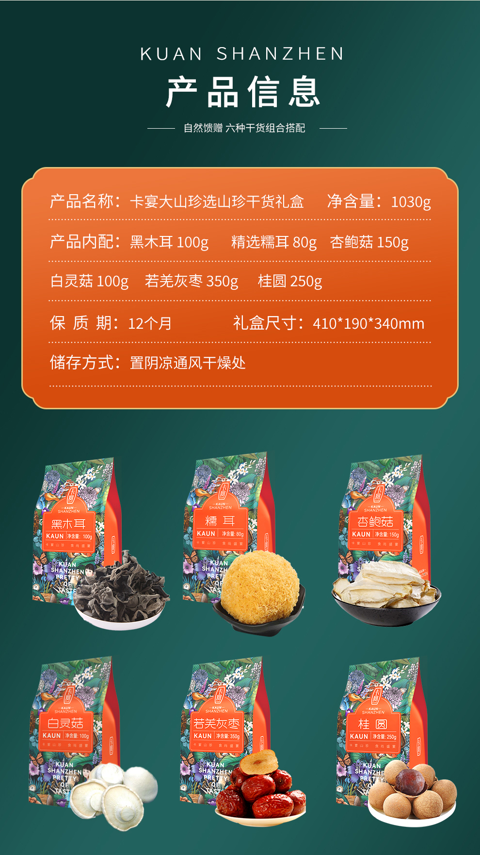 卡宴大山珍选山珍干货礼盒1030g