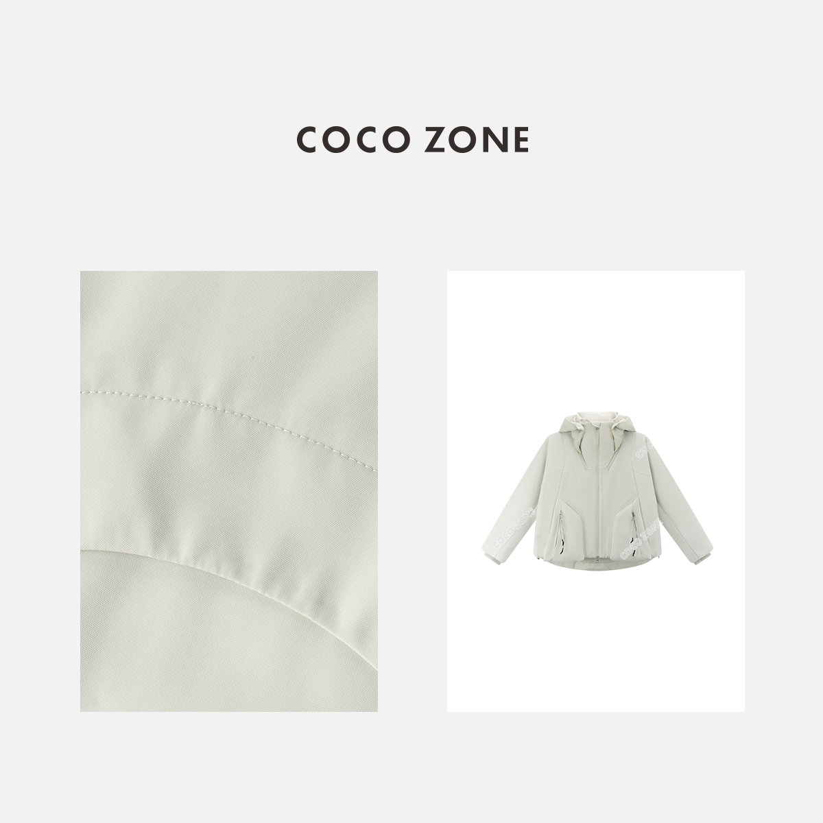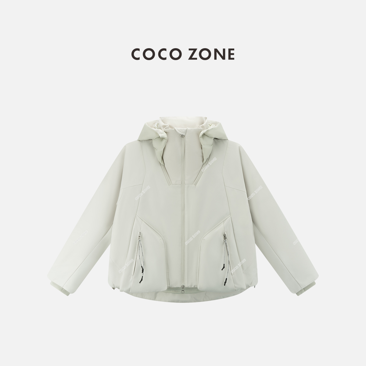 COCO ZONE 高级感连帽拼接通勤风保暖鹅绒服 CC2C1632