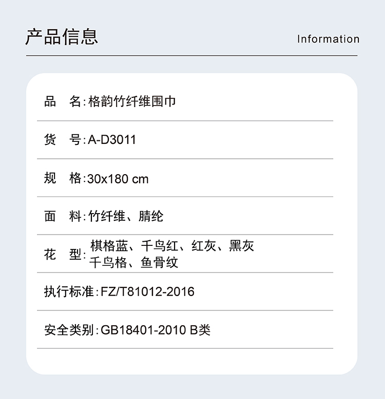 ELSYALN艾丝雅兰 A-D3011格韵竹纤维围巾