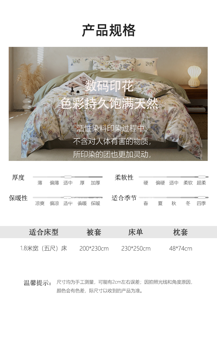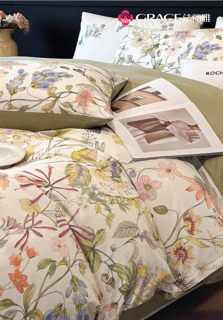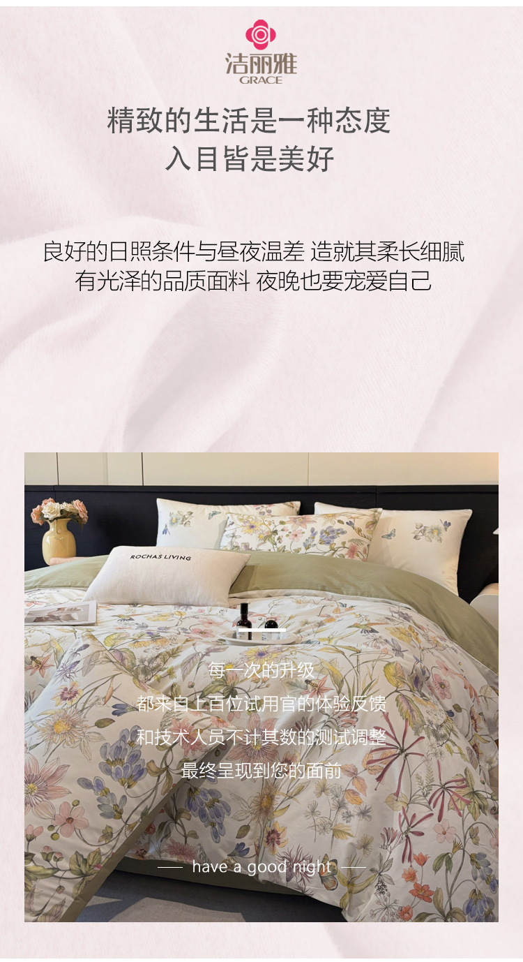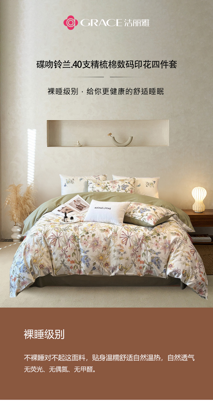 洁丽雅(Grace)碟吻铃兰.40支精梳棉数码印花四件套JLY25603