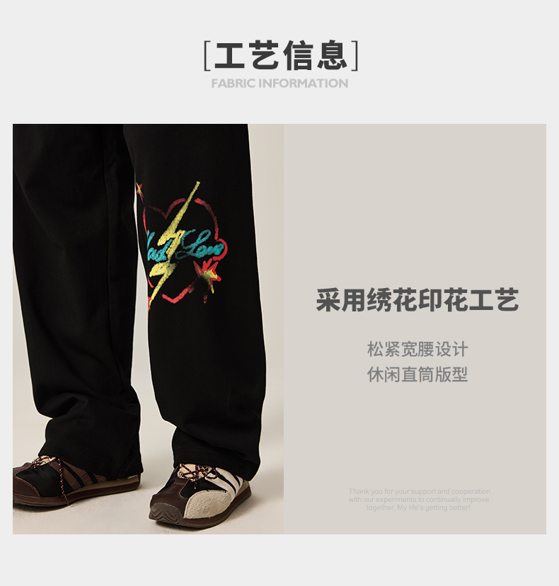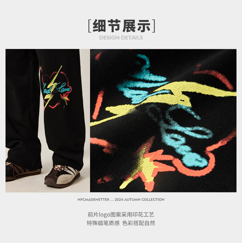 NPC潮牌【狂爱系列】蜡笔爱心印花休闲卫裤男松紧腰长裤秋NP46SP22