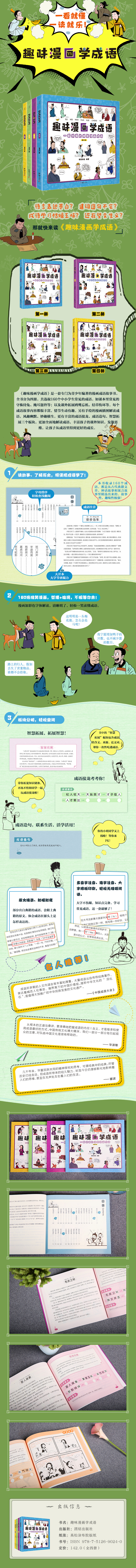 趣味漫画学成语(全4册)6-12岁 160个成语160张搞笑漫画 哲理+脑洞