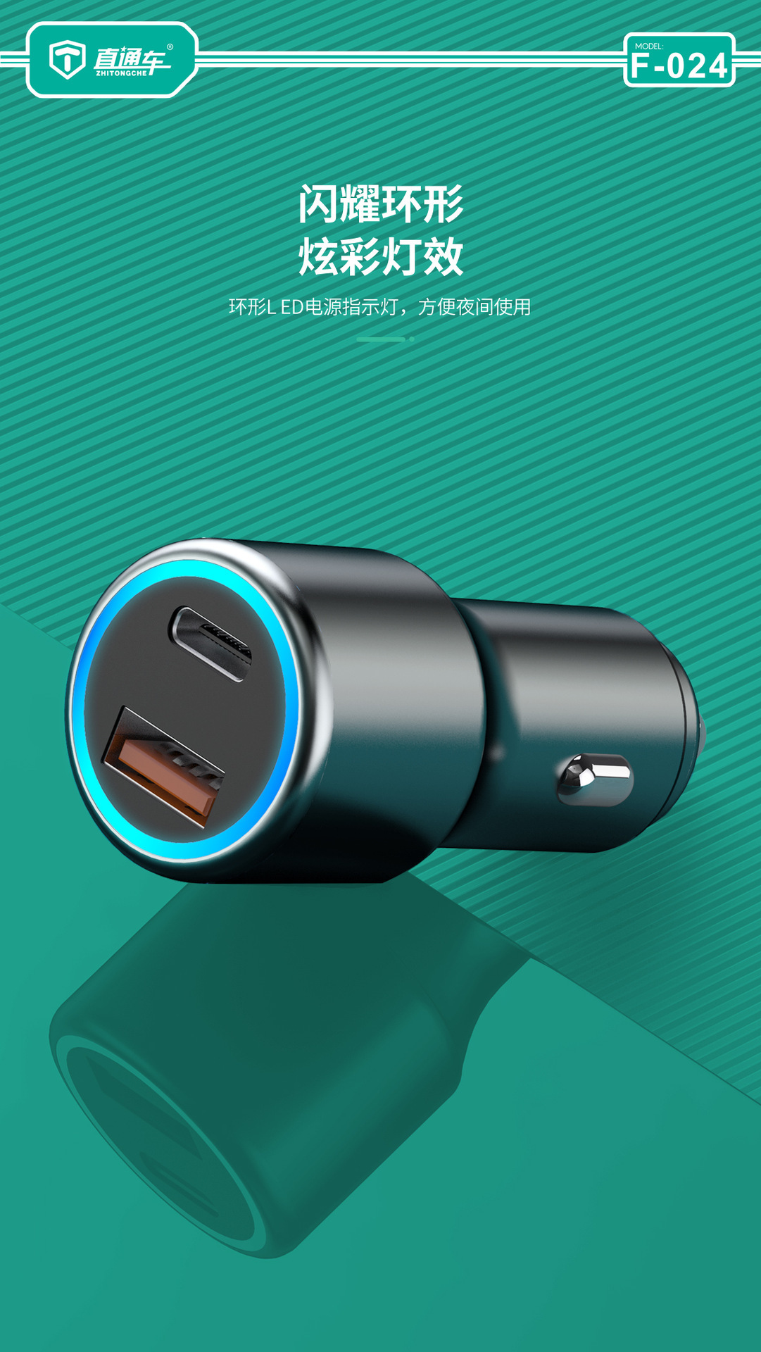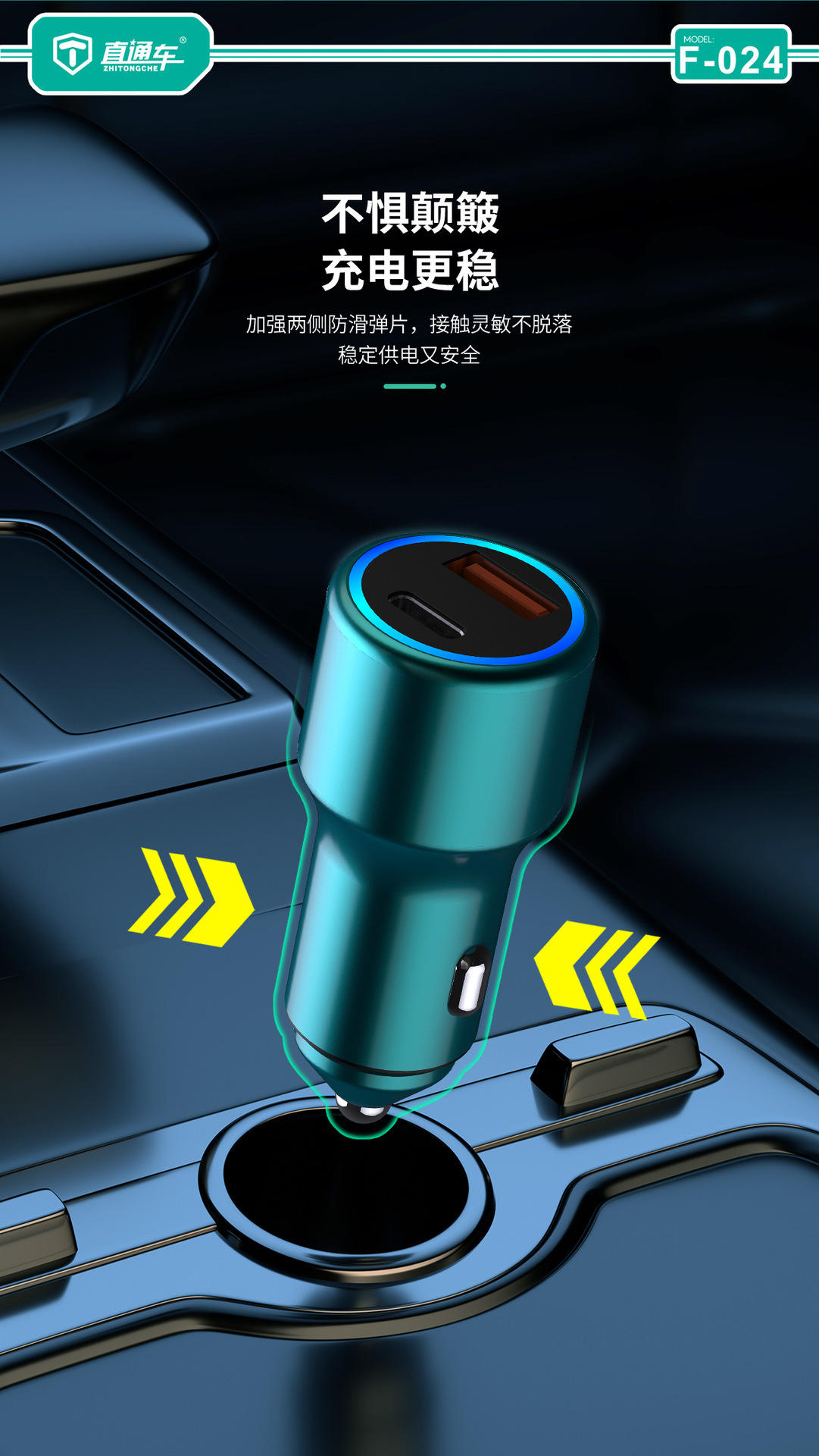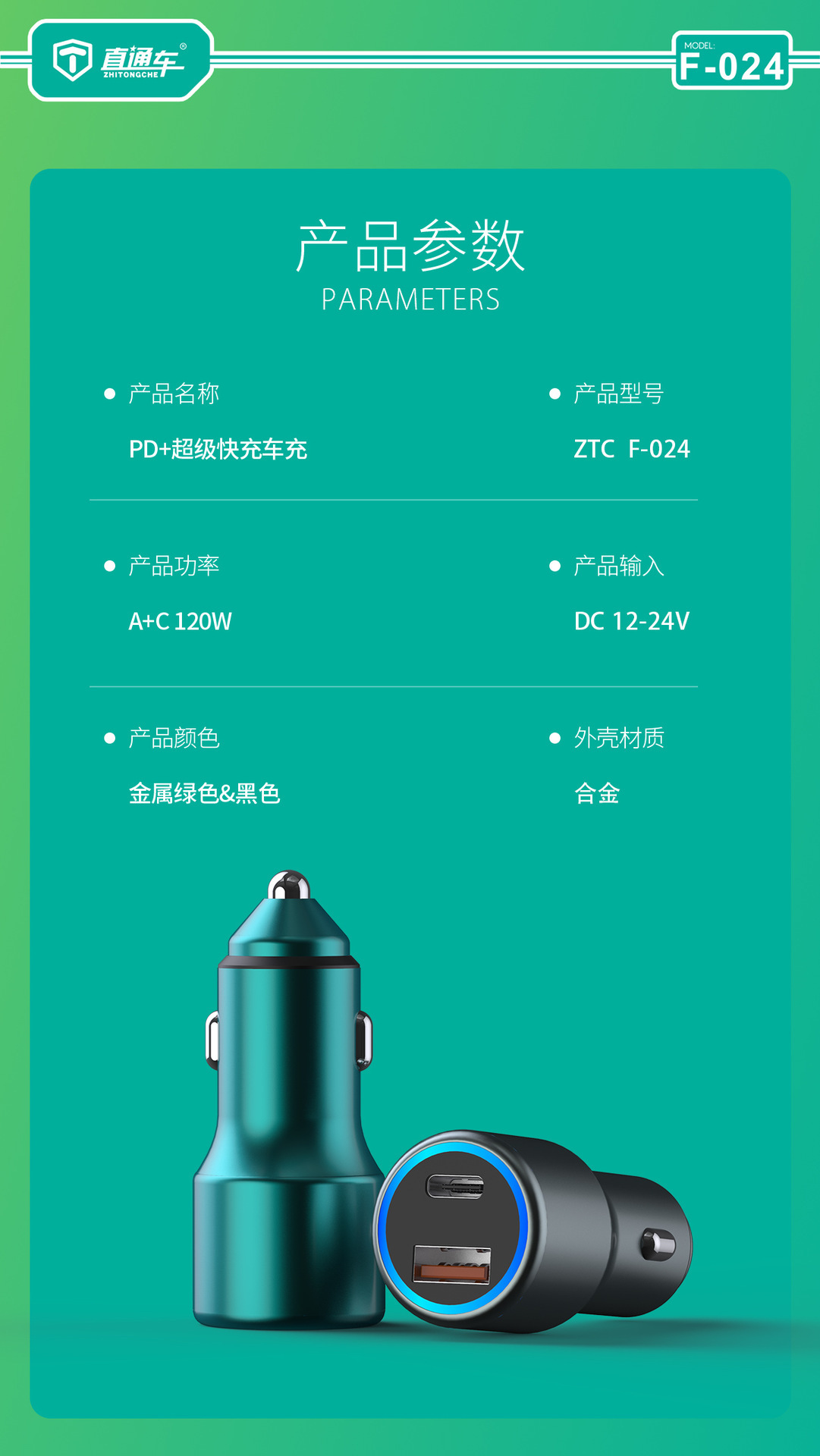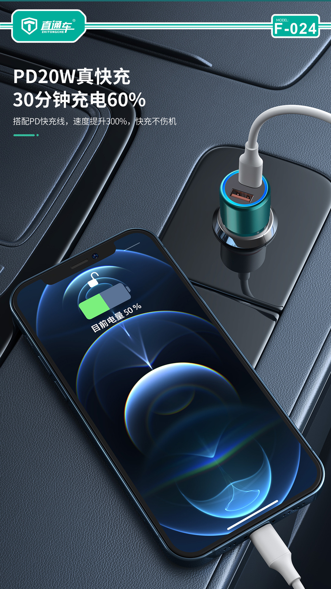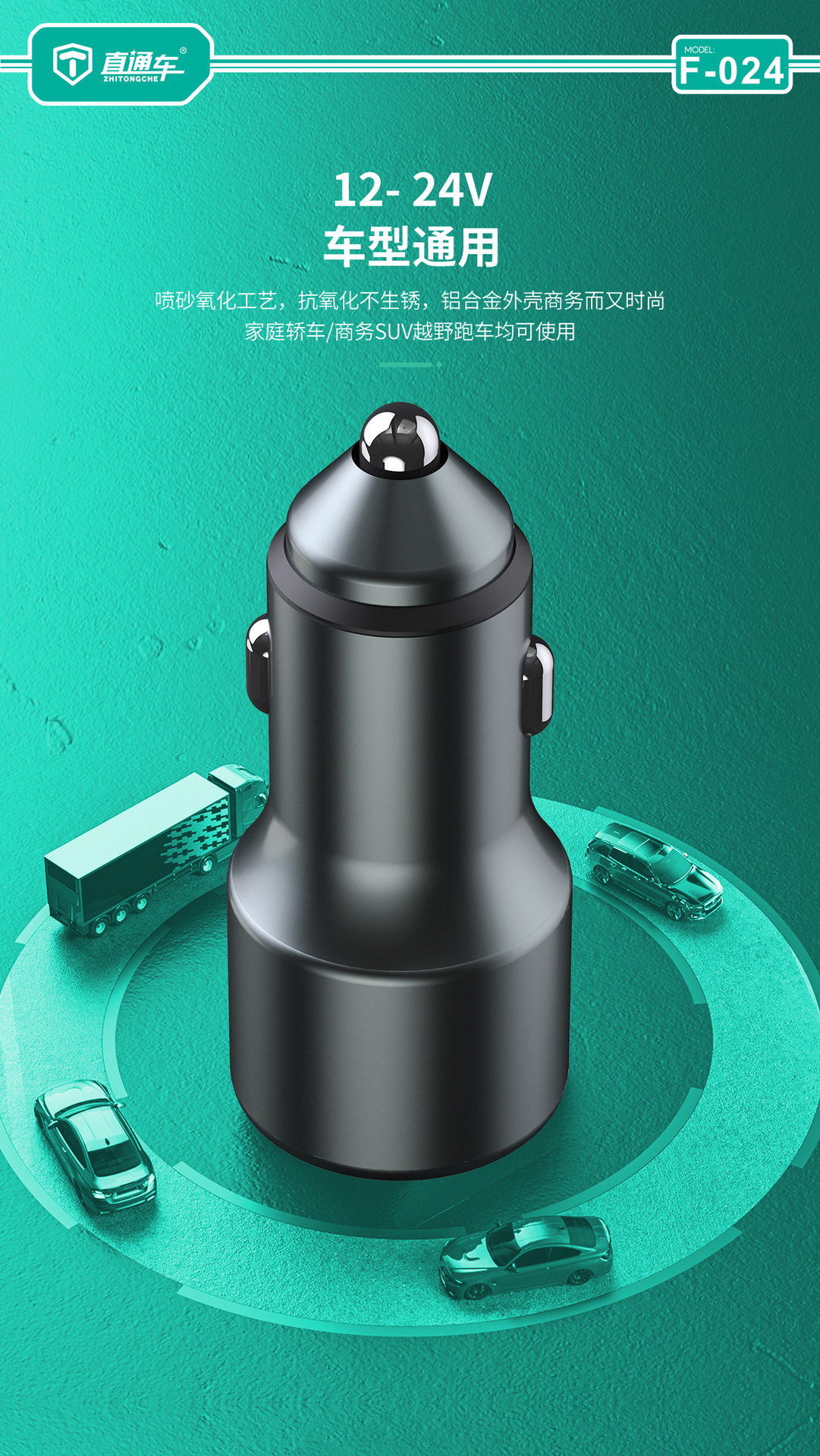 严选【金属多兼容车载充电器】100W+20W双口PD快充适用华为平果米荣耀PO车充1个