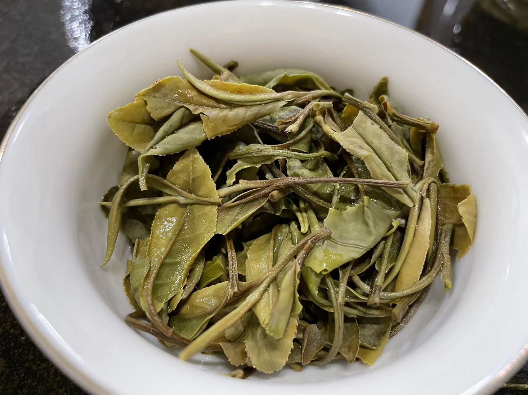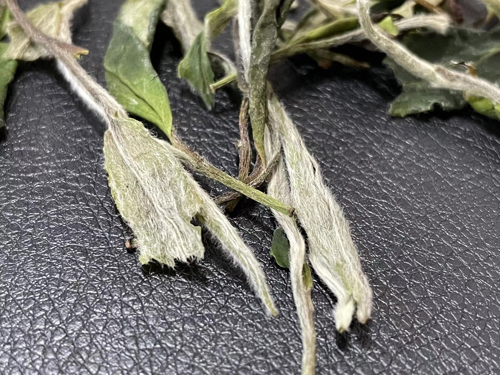 叶子与芽大体是一样的长度,整体等级大概是三级牡丹状态。(肯定不是贡眉级别,也不是一级牡丹级别)