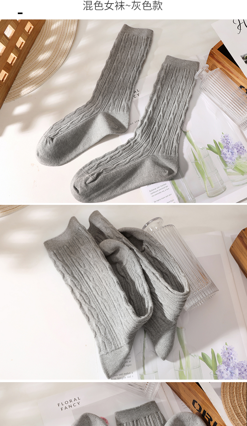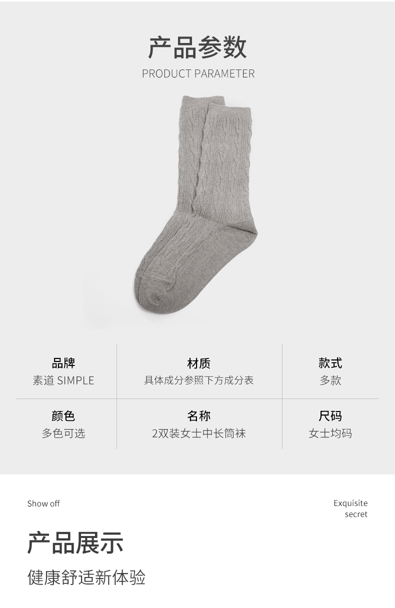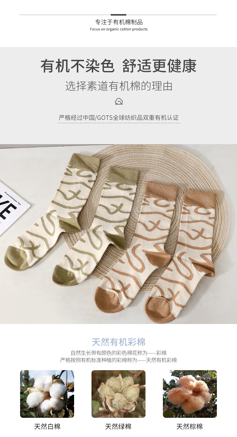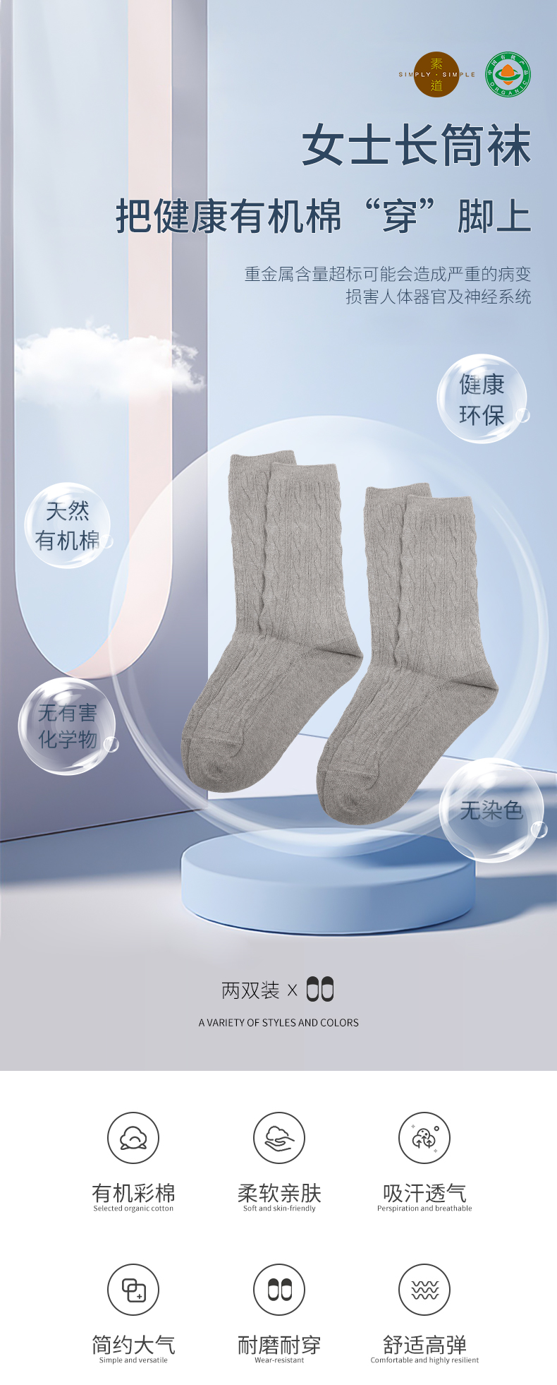 素道天然有机彩棉 女士中长筒袜 棉质半截女袜 灰色高筒棉袜