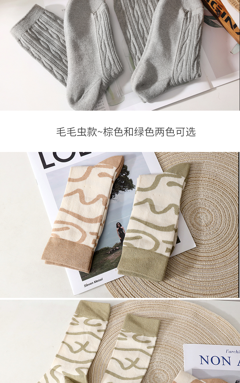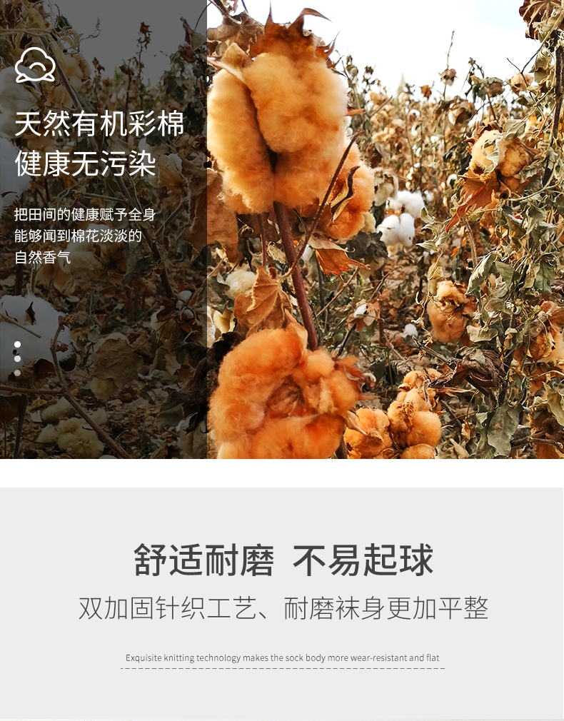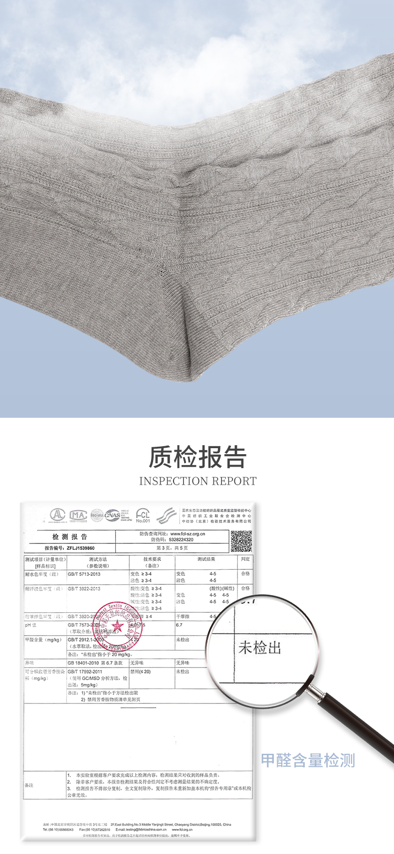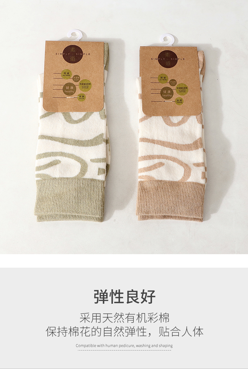 素道天然有机彩棉 女士中长筒袜 棉质半截女袜 灰色高筒棉袜