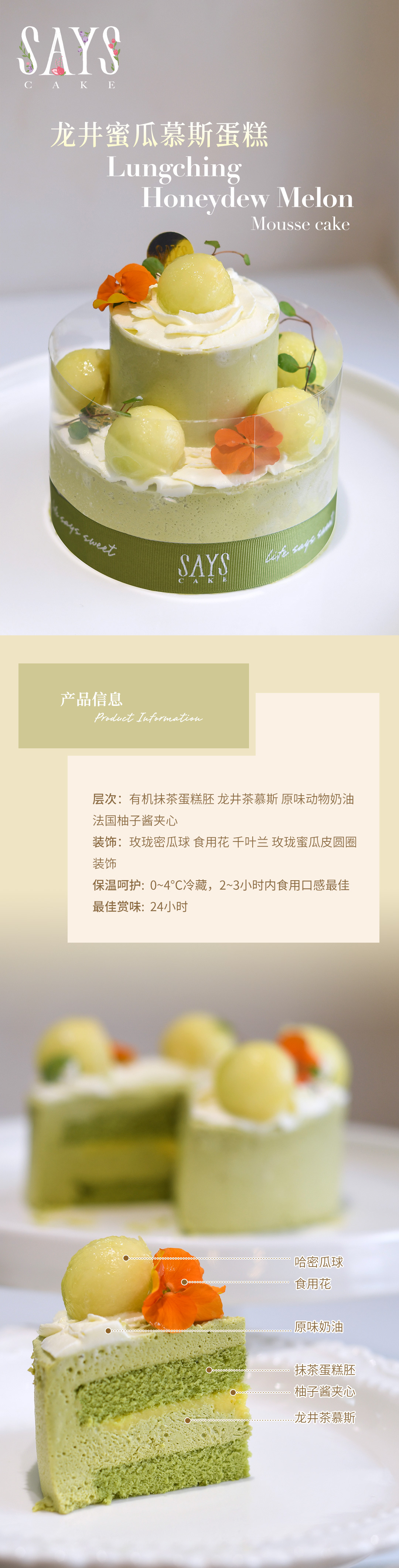 【预定】龙井蜜瓜 Lungching Honeydew Melon Mousse cake