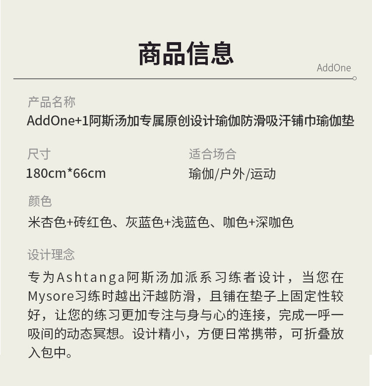 AddOne+1阿斯汤加专属原创设计瑜伽防滑吸汗铺巾