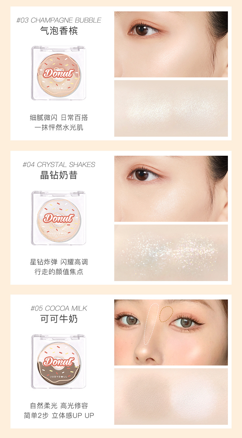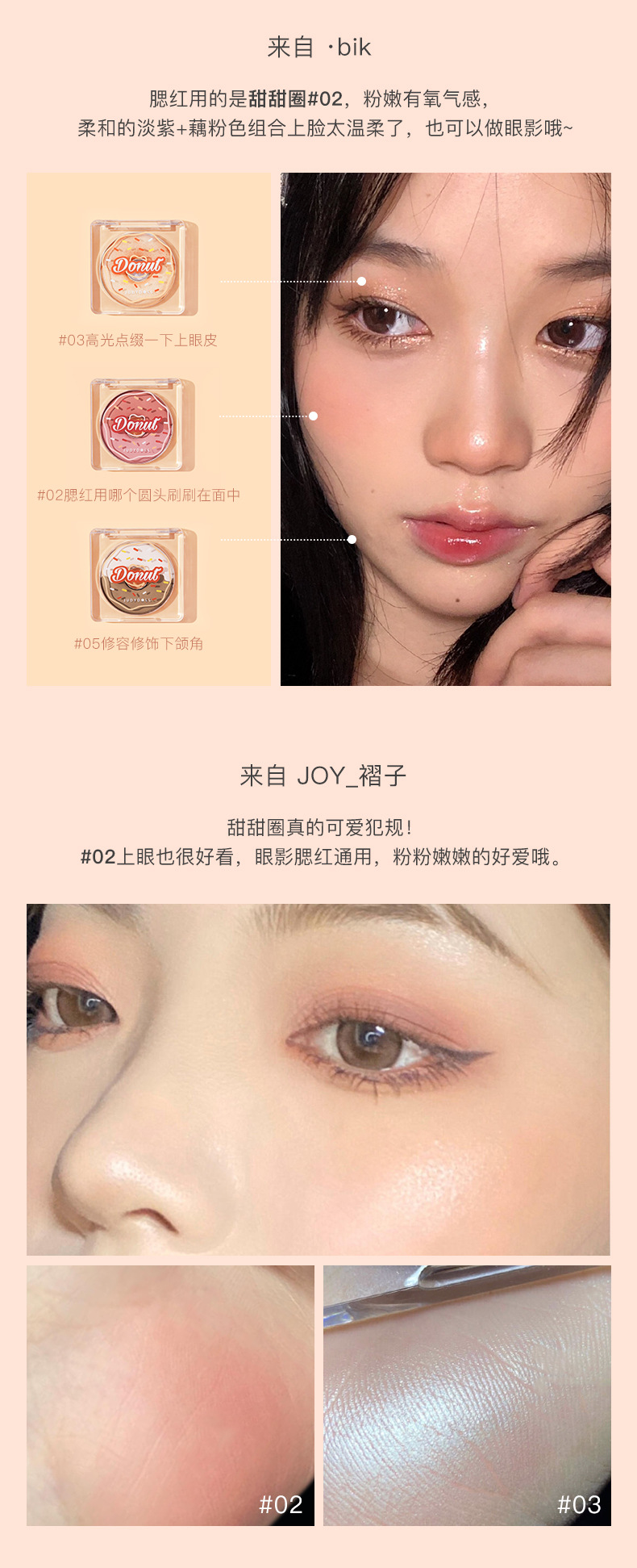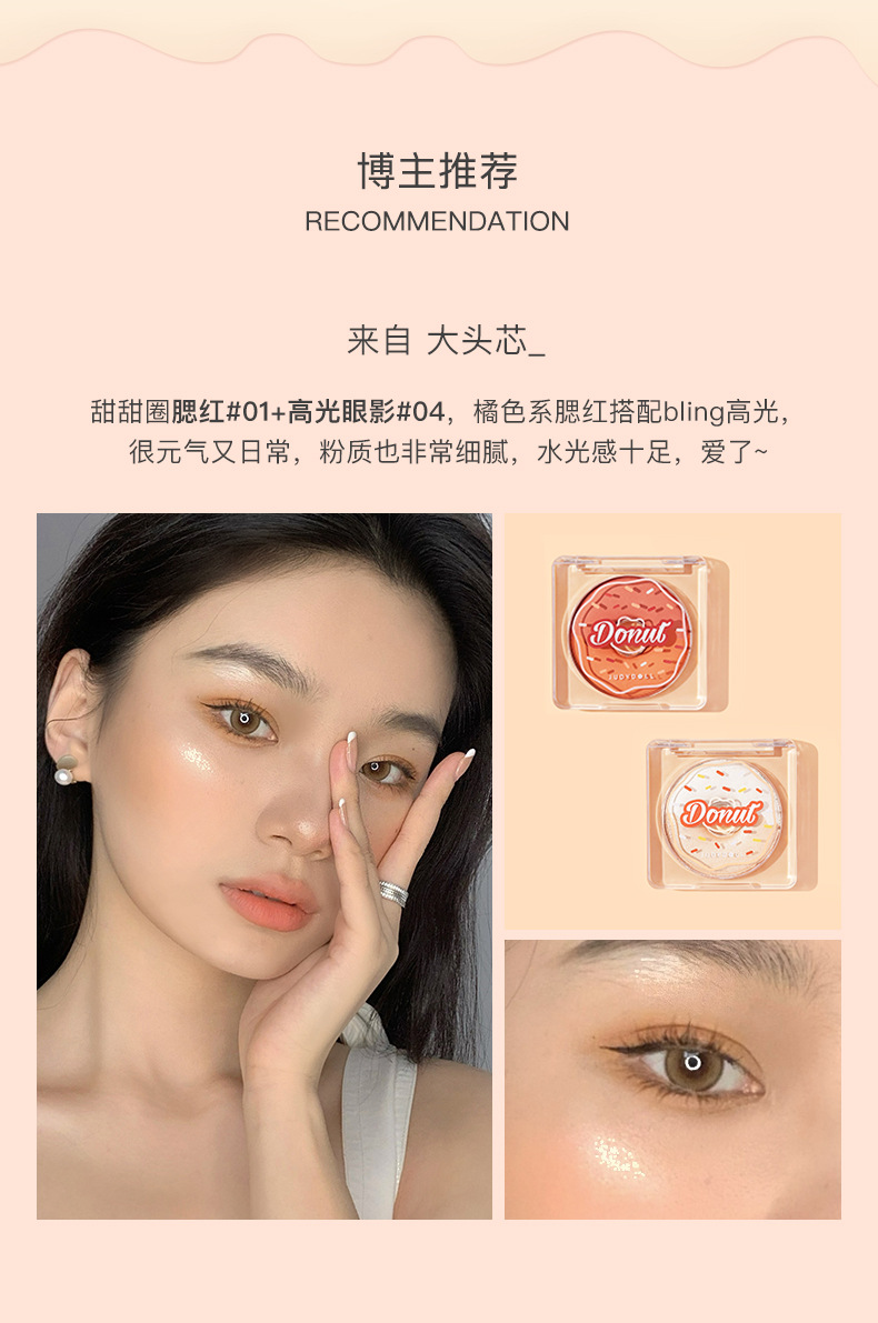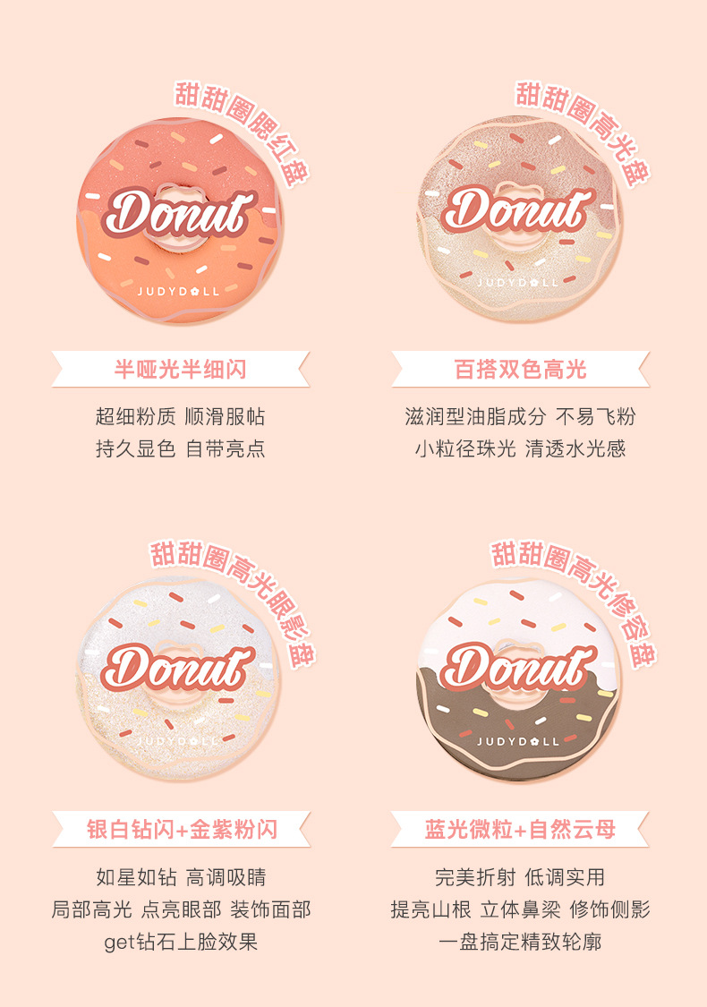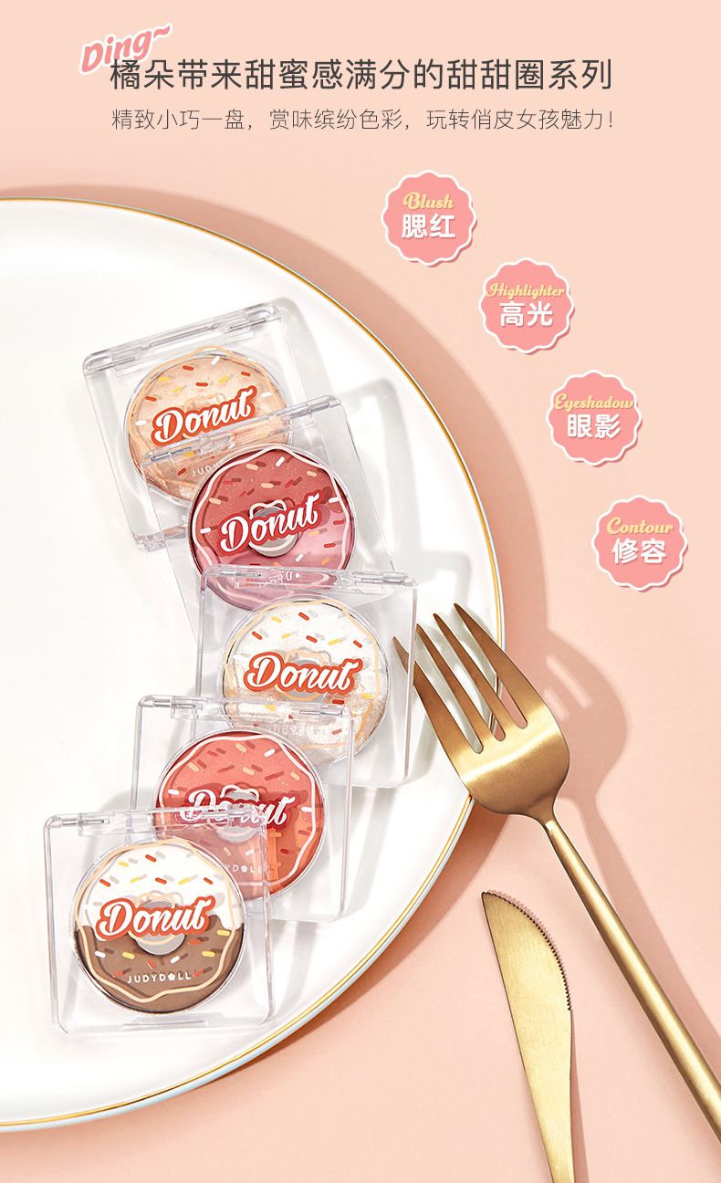 】Judydoll橘朵甜甜圈腮红高光阴影修容一体盘粉色自然裸妆提亮