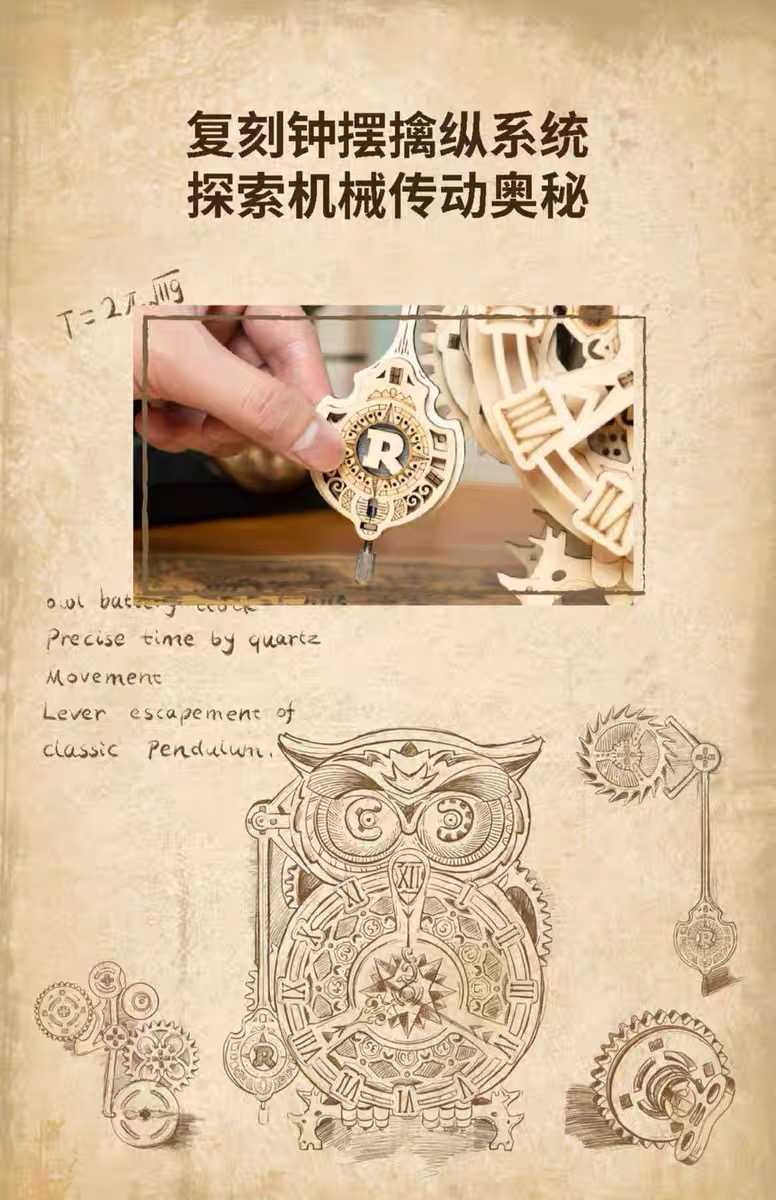 若客(ROKR)机械时痕·猫头鹰座钟cj