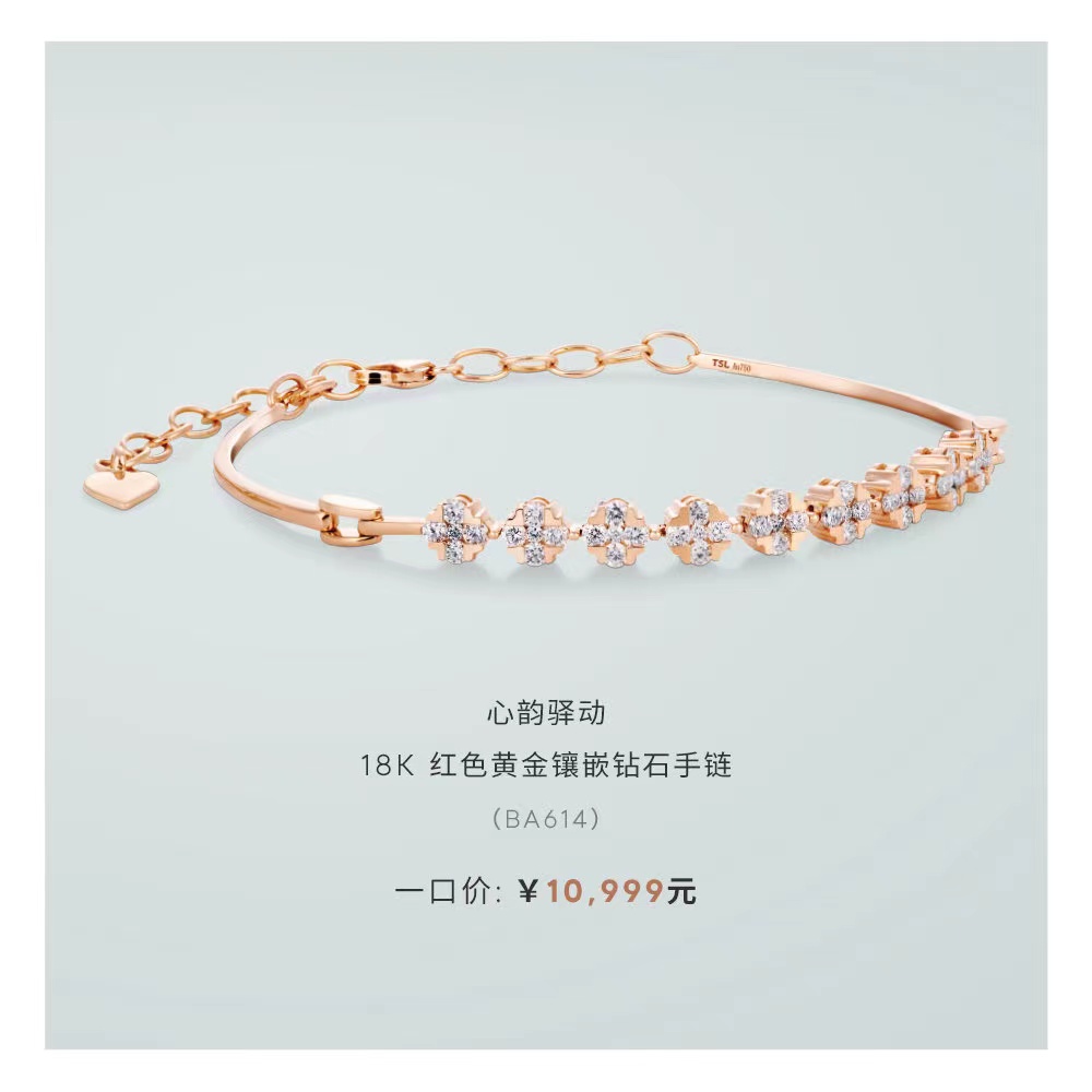 2楼TSL谢瑞麟心韵驿动18K金钻石手链,吊牌价13290
