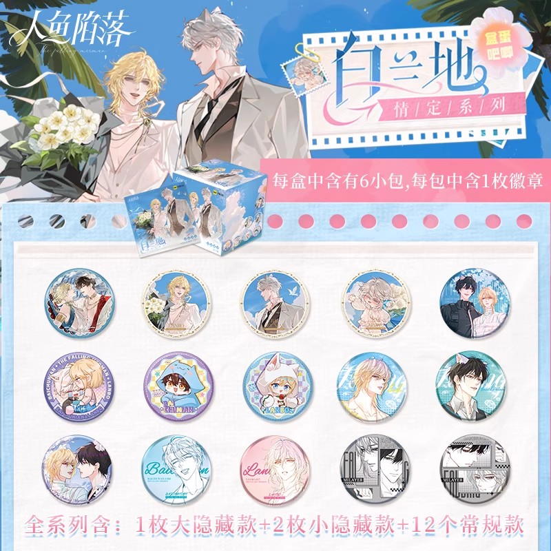 人鱼陷落 白兰地情定系列 马口铁徽章 吧唧 全15种 6包/盒 国谷 耽美