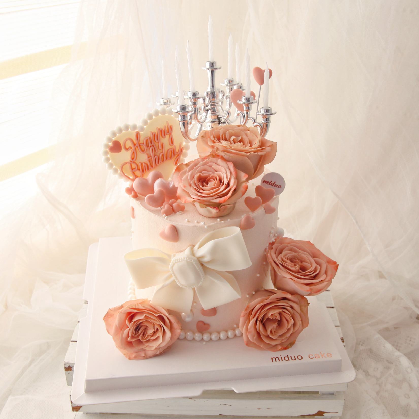 女士款 复古烛台 卡布奇诺鲜花 翻糖蝴蝶结