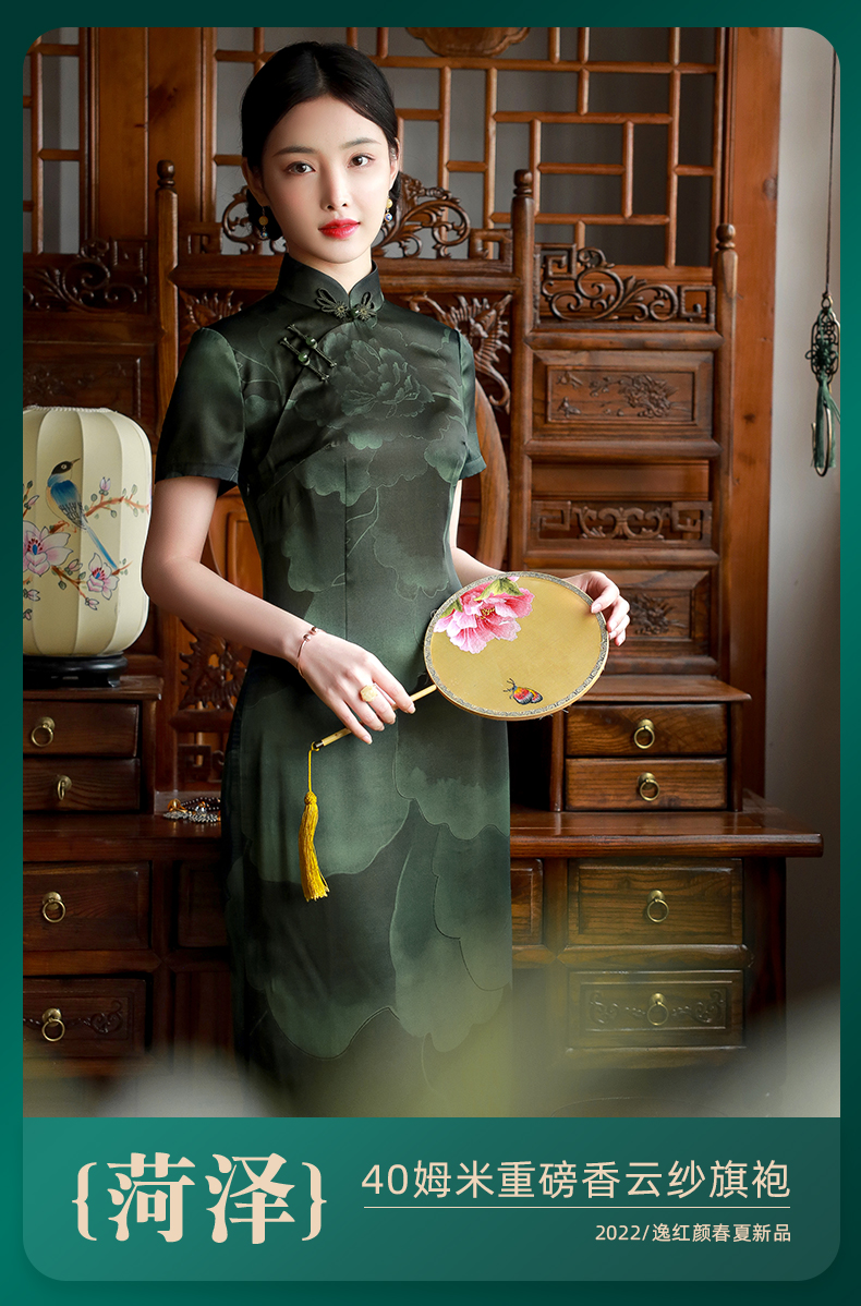 逸红颜原创夏季改良版旗袍年轻款香云纱高端菏泽连衣裙女真桑蚕丝
