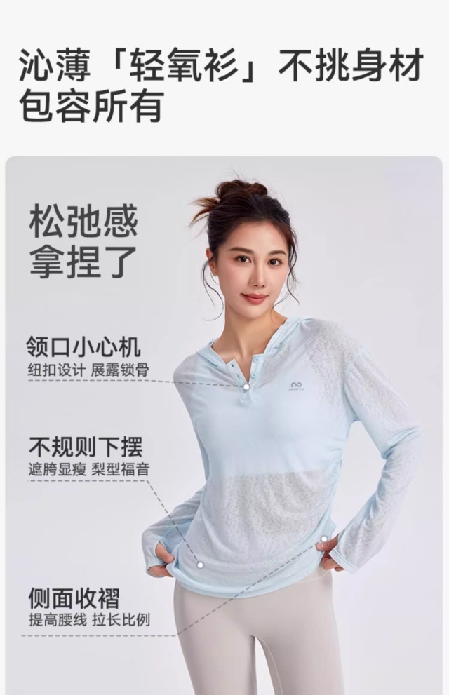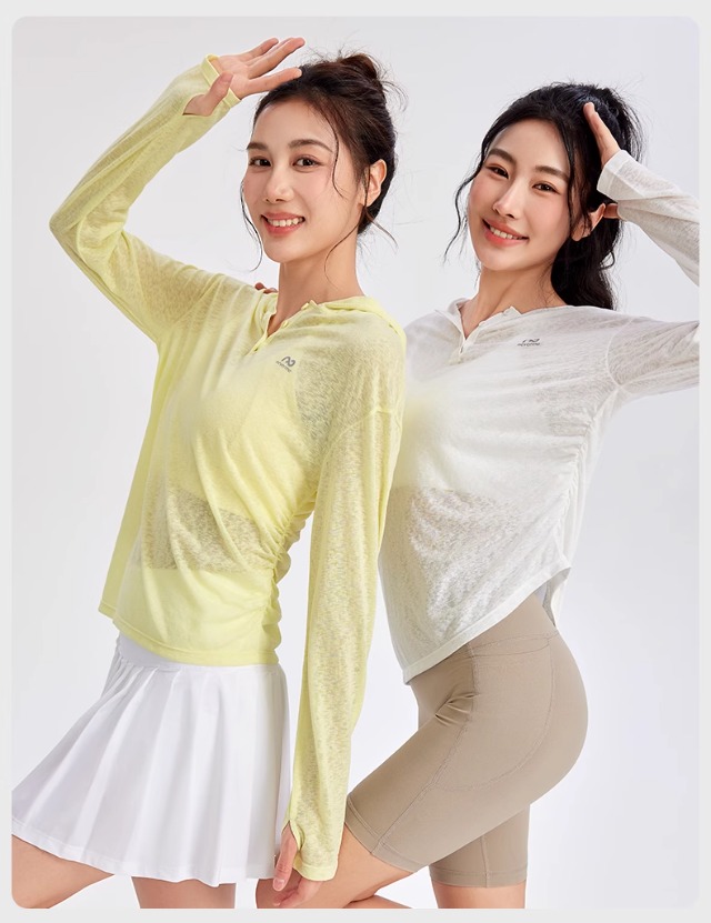 Neverme 2025春夏小V领连帽瑜伽罩衫ST6946 雪花纹理轻薄运动