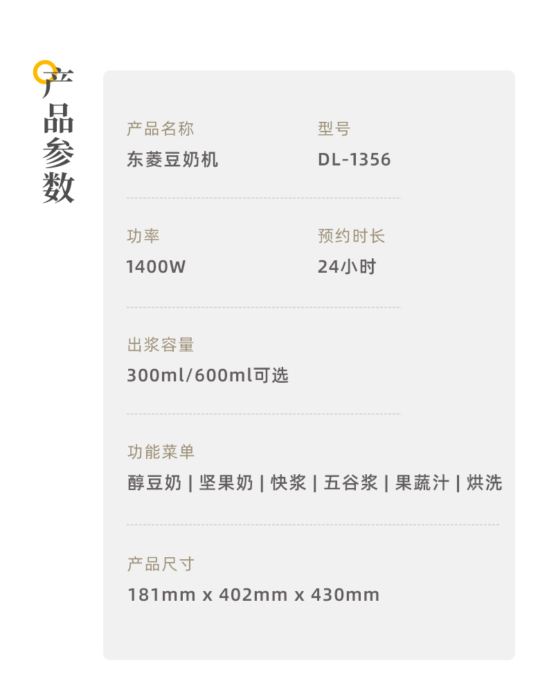 东菱豆奶机DL-1356钛金灰