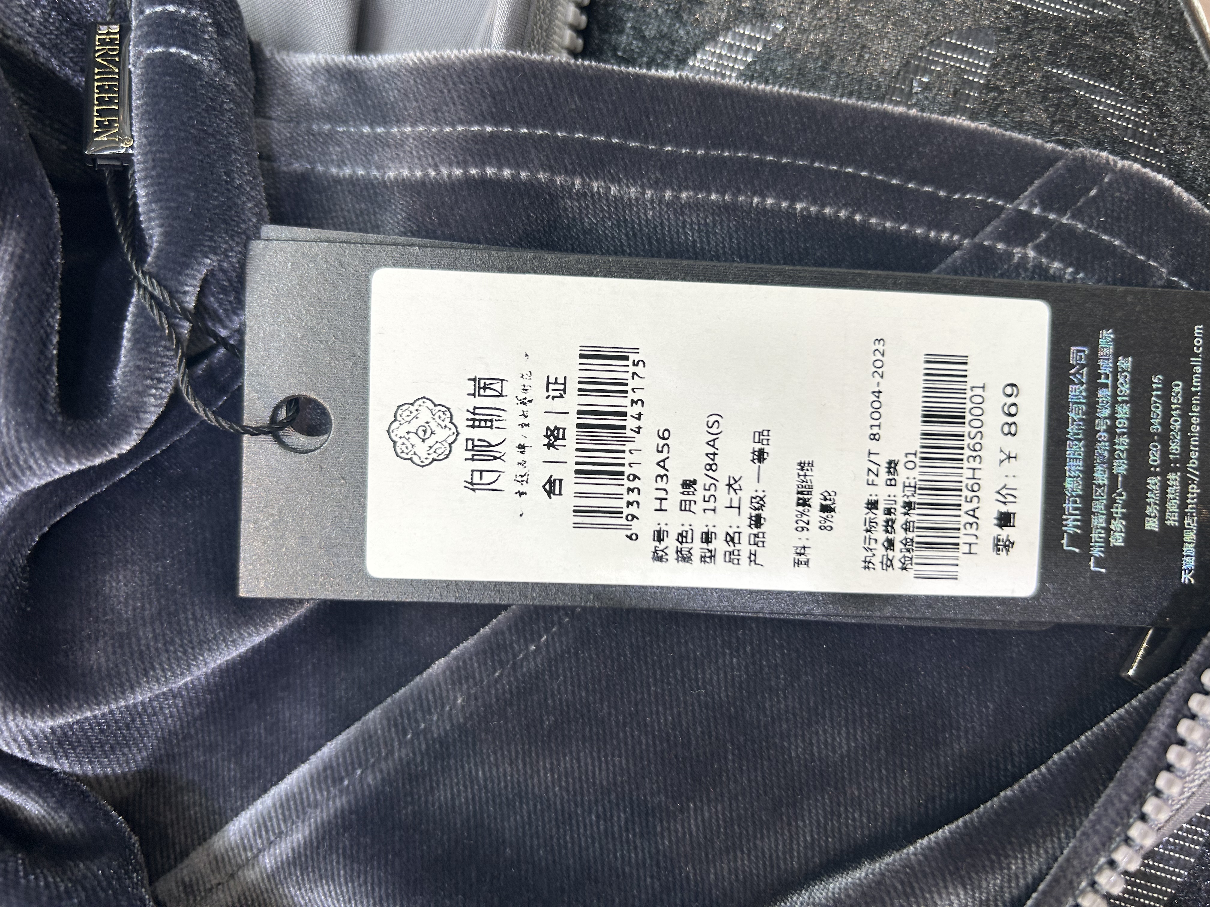 HJ3A56_月魄色_立领外套_春秋_百搭休闲收腰显瘦短款运动上衣_高级女装_BERNIEELEN 伯妮斯茵