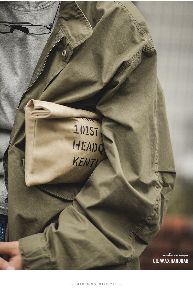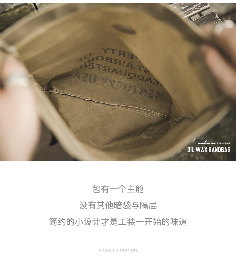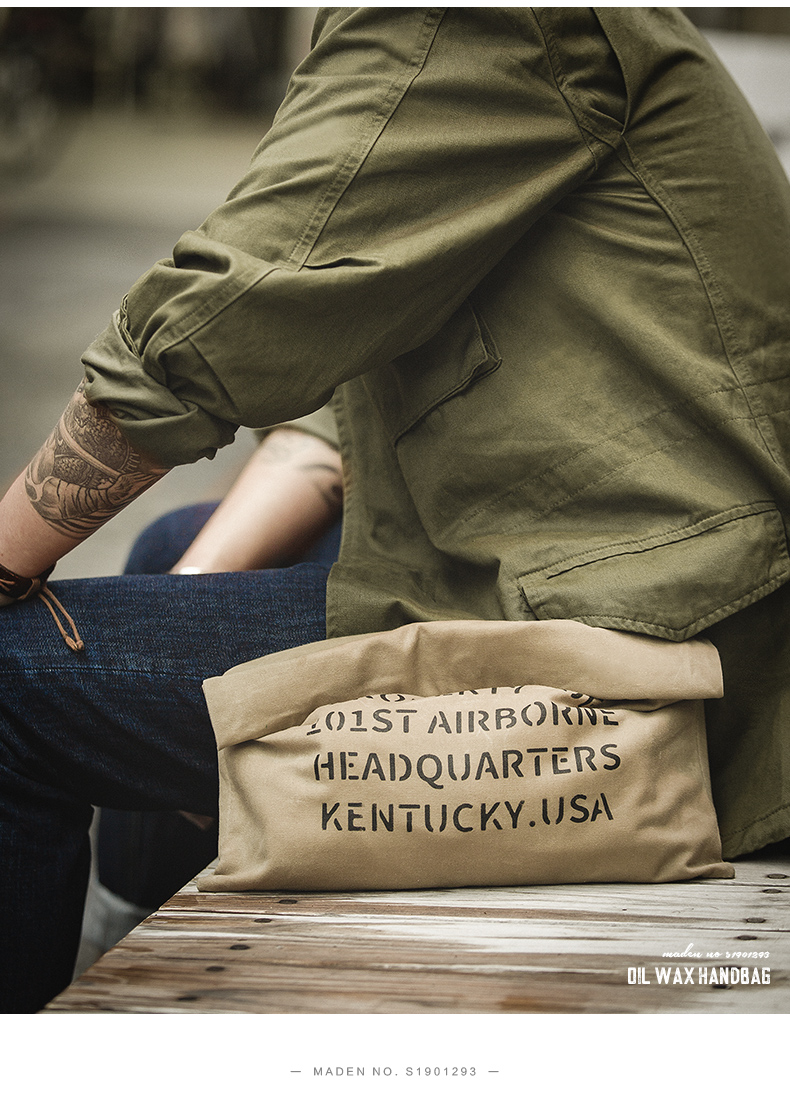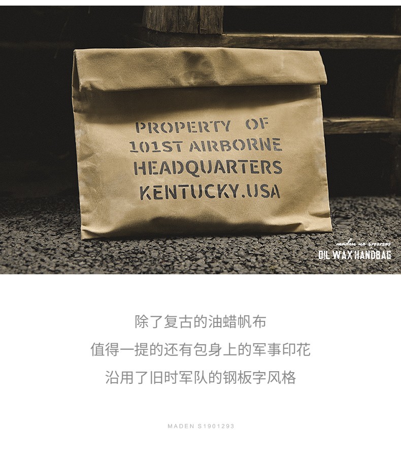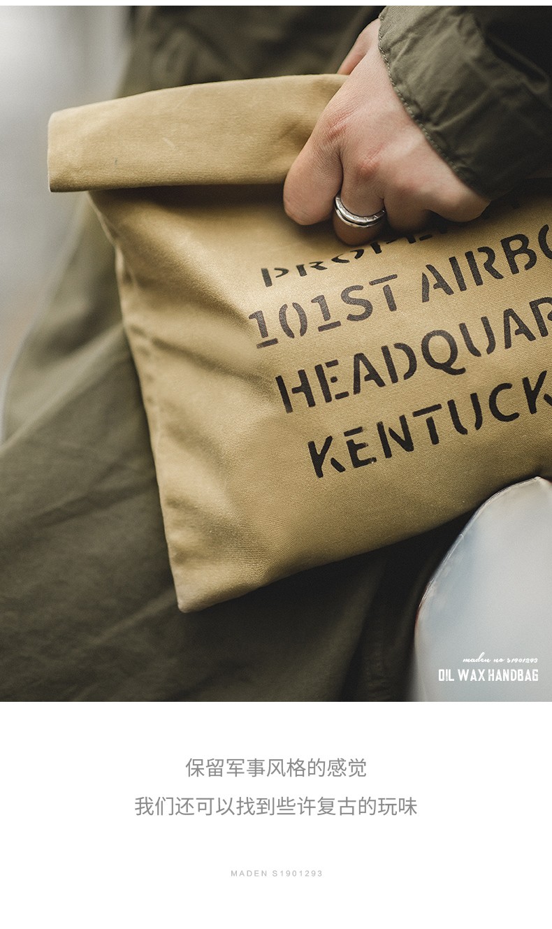 马登工装 美式复古军事分油蜡帆布手包阿美咔叽卡其色休闲印花包