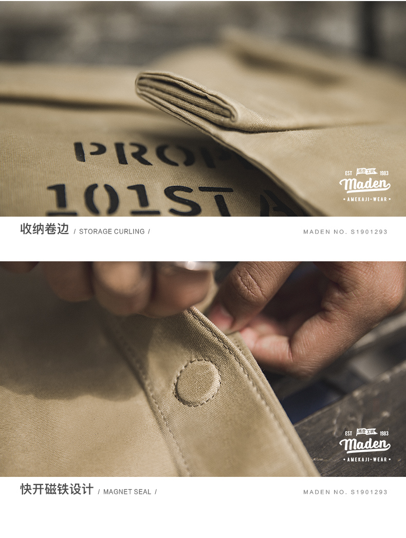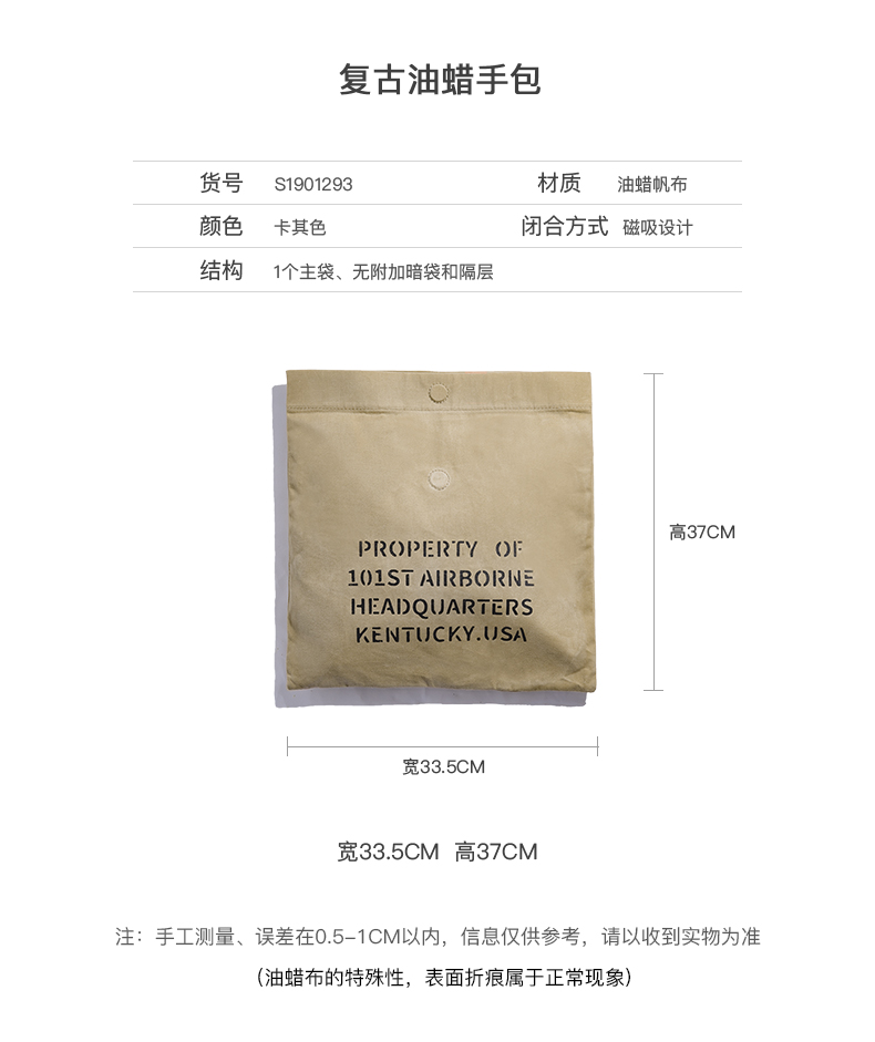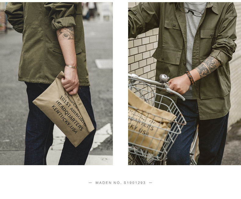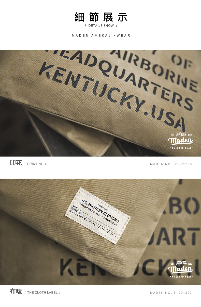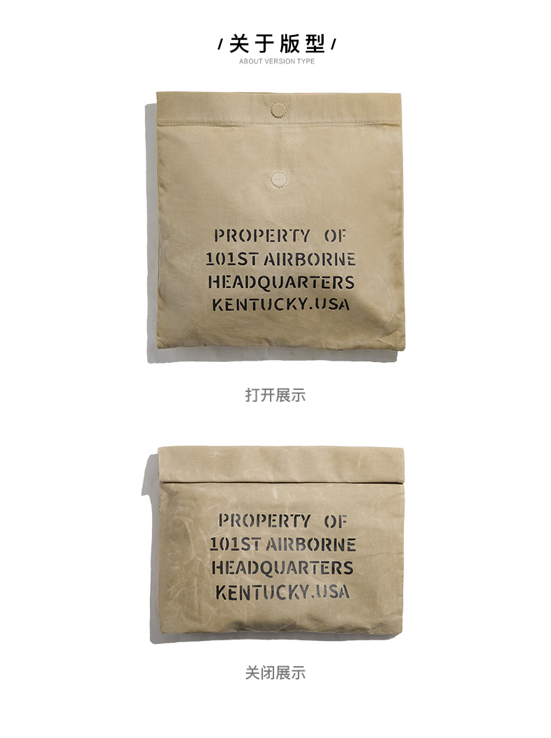 马登工装 美式复古军事分油蜡帆布手包阿美咔叽卡其色休闲印花包