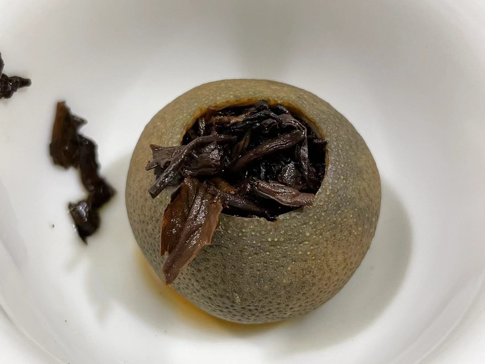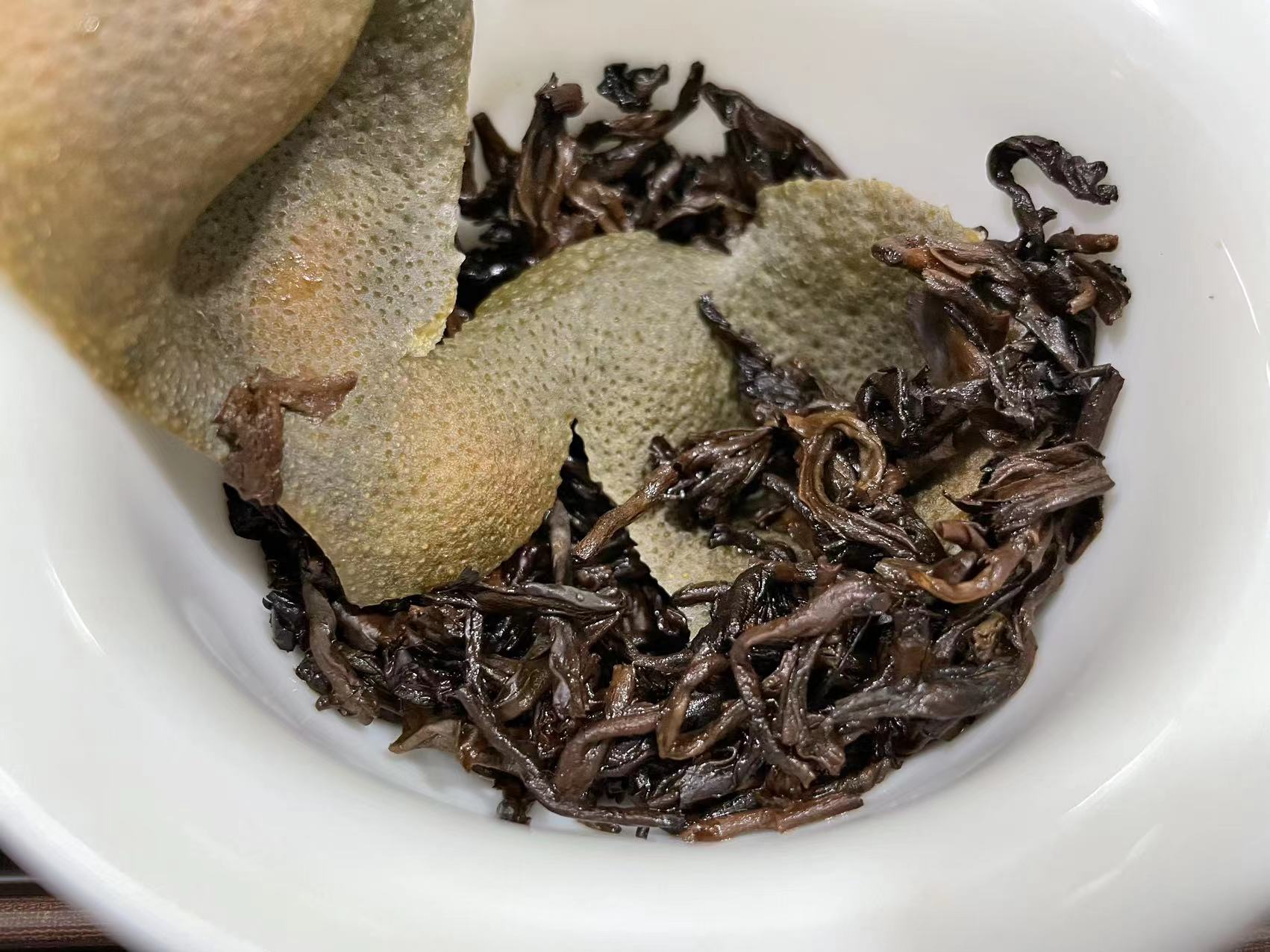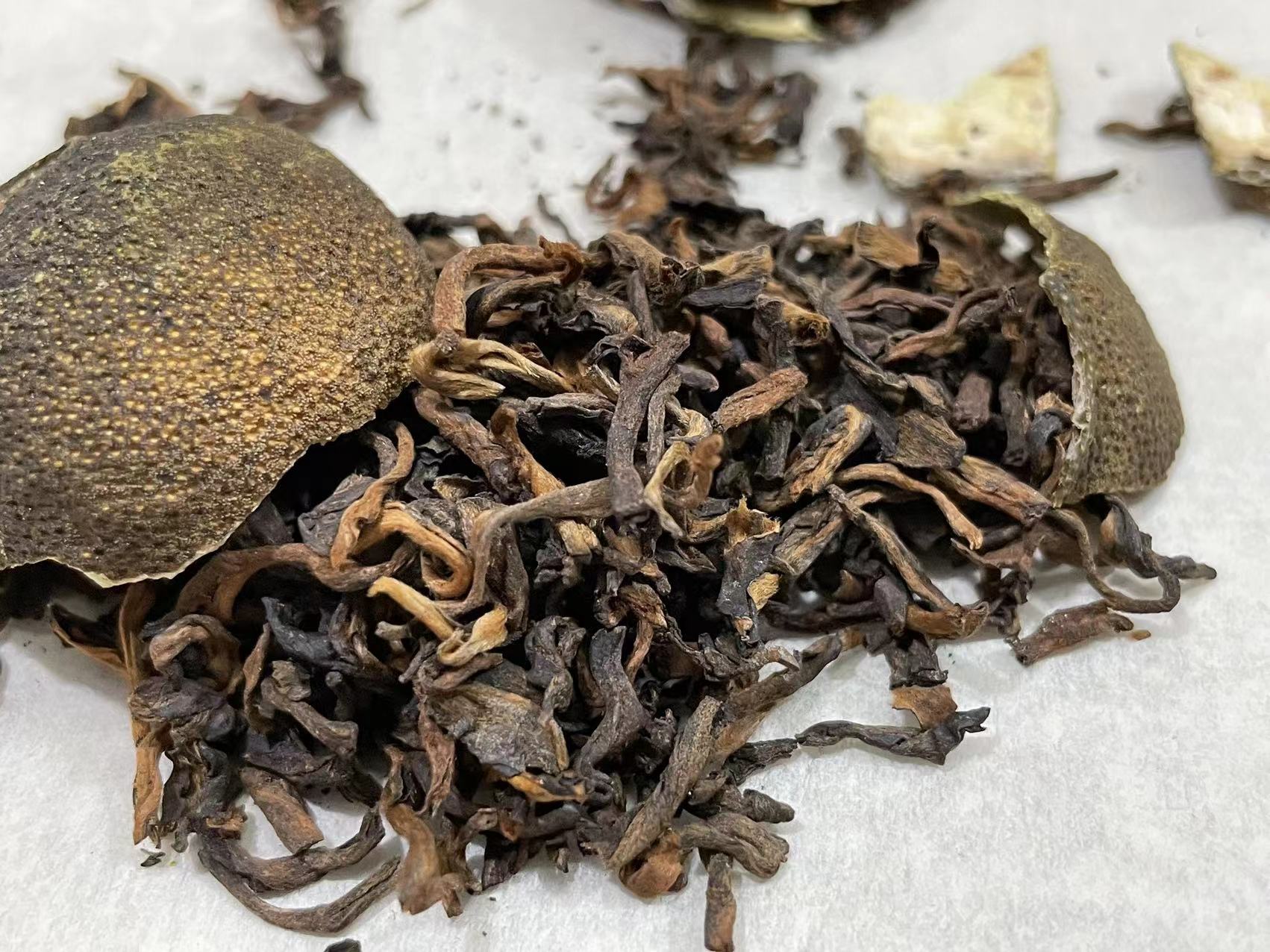 第四道:柑果香、辛香、茶香、熟茶味融合很协调。