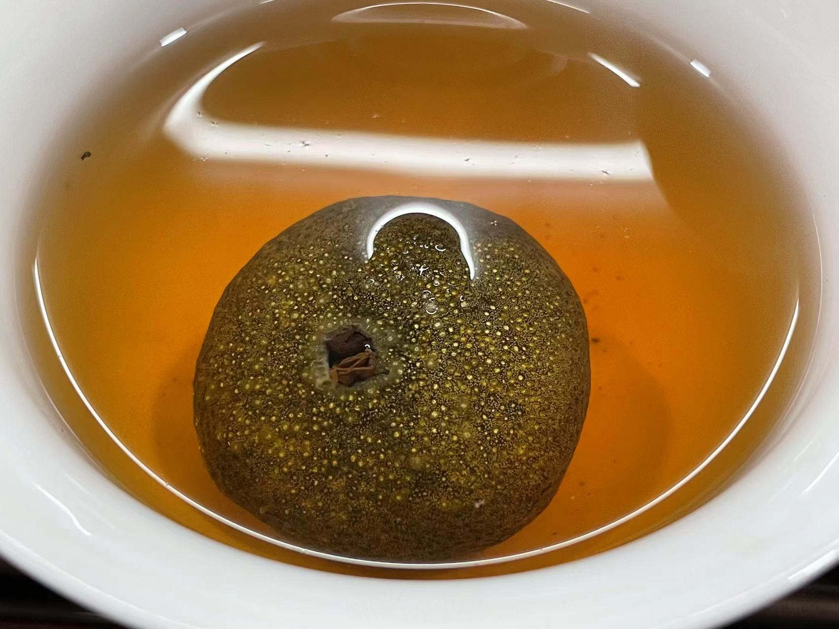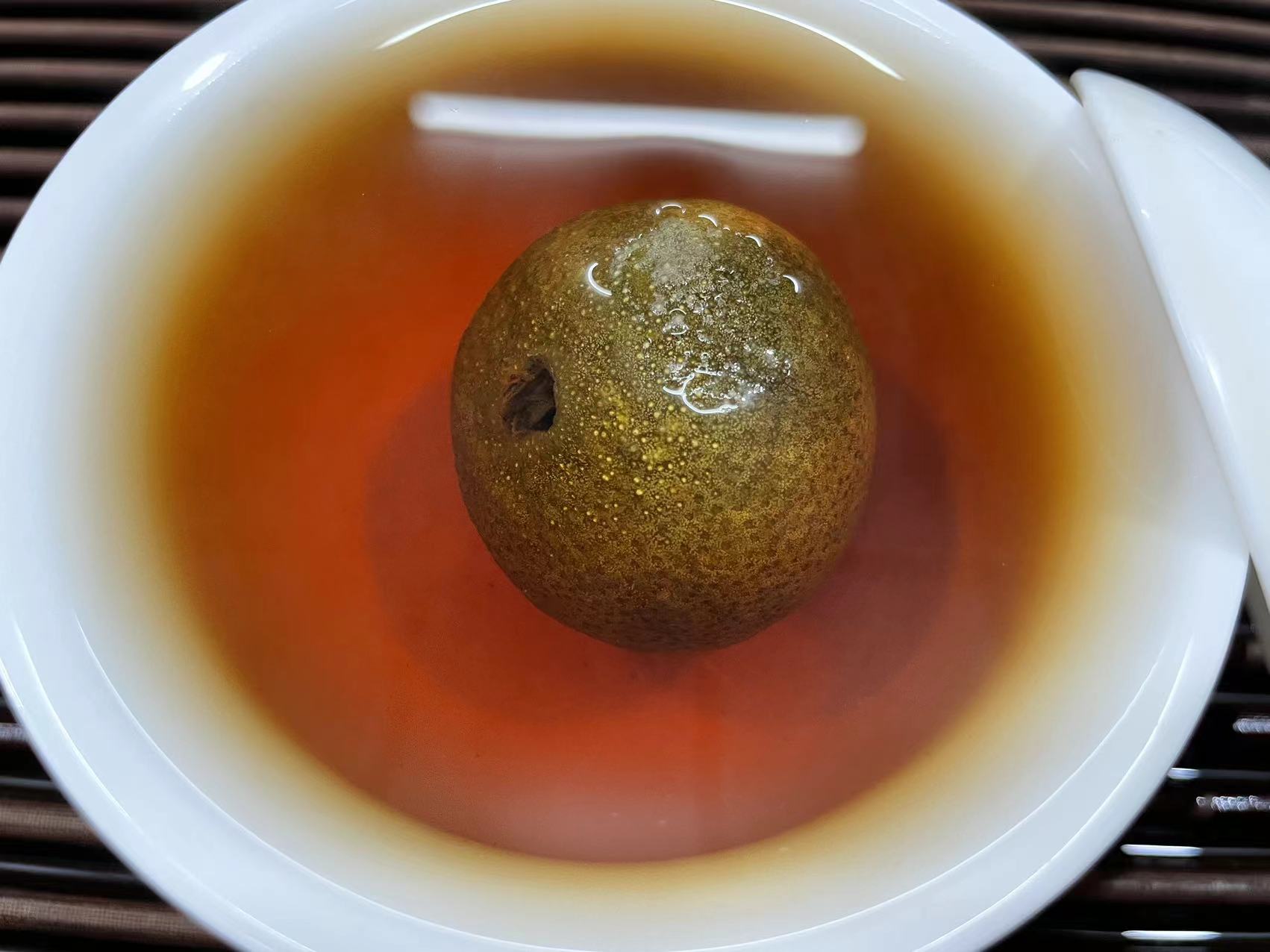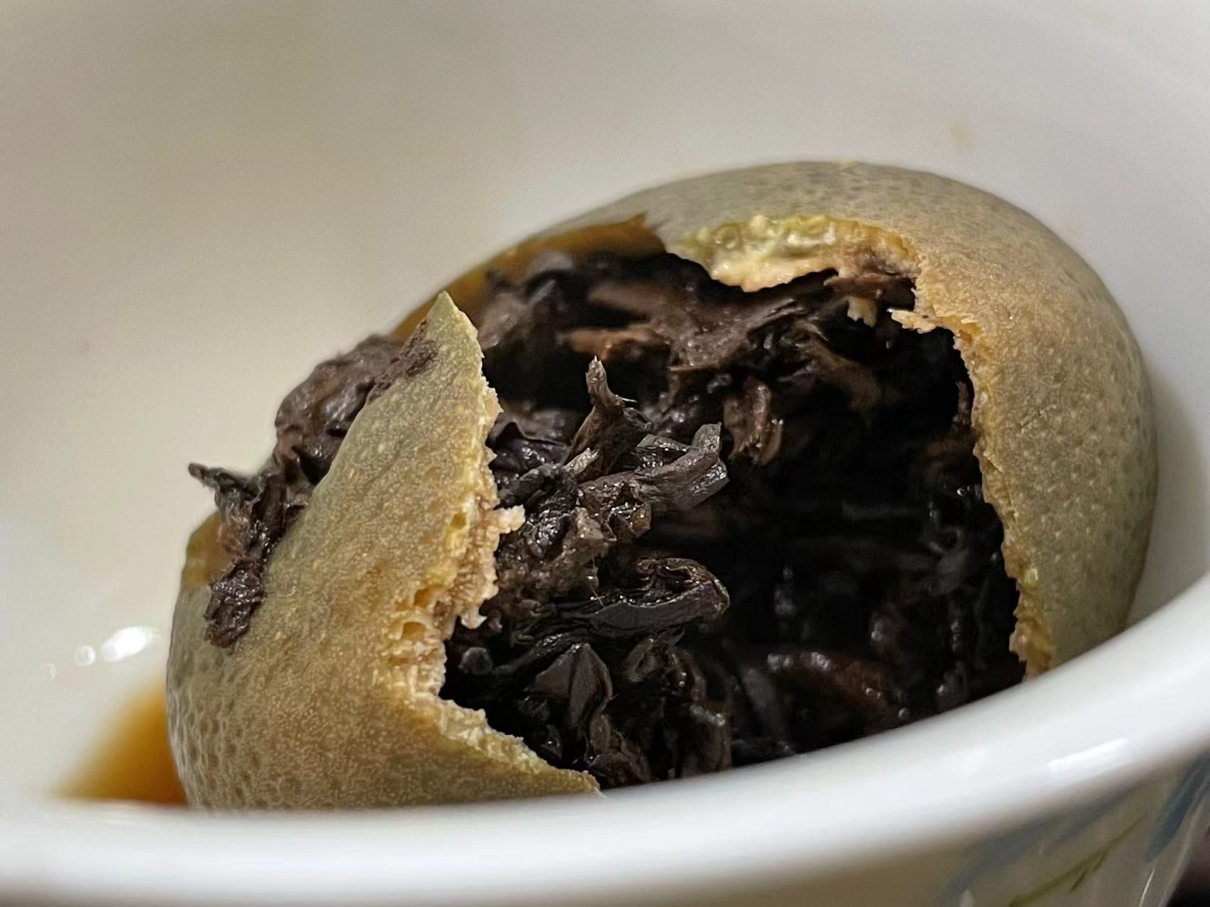 特别值得一提的是:咱们的小青柑即使大力闷泡,它的汤色也是透亮有光泽,不会像那些乱做的茶安暗淡无光。