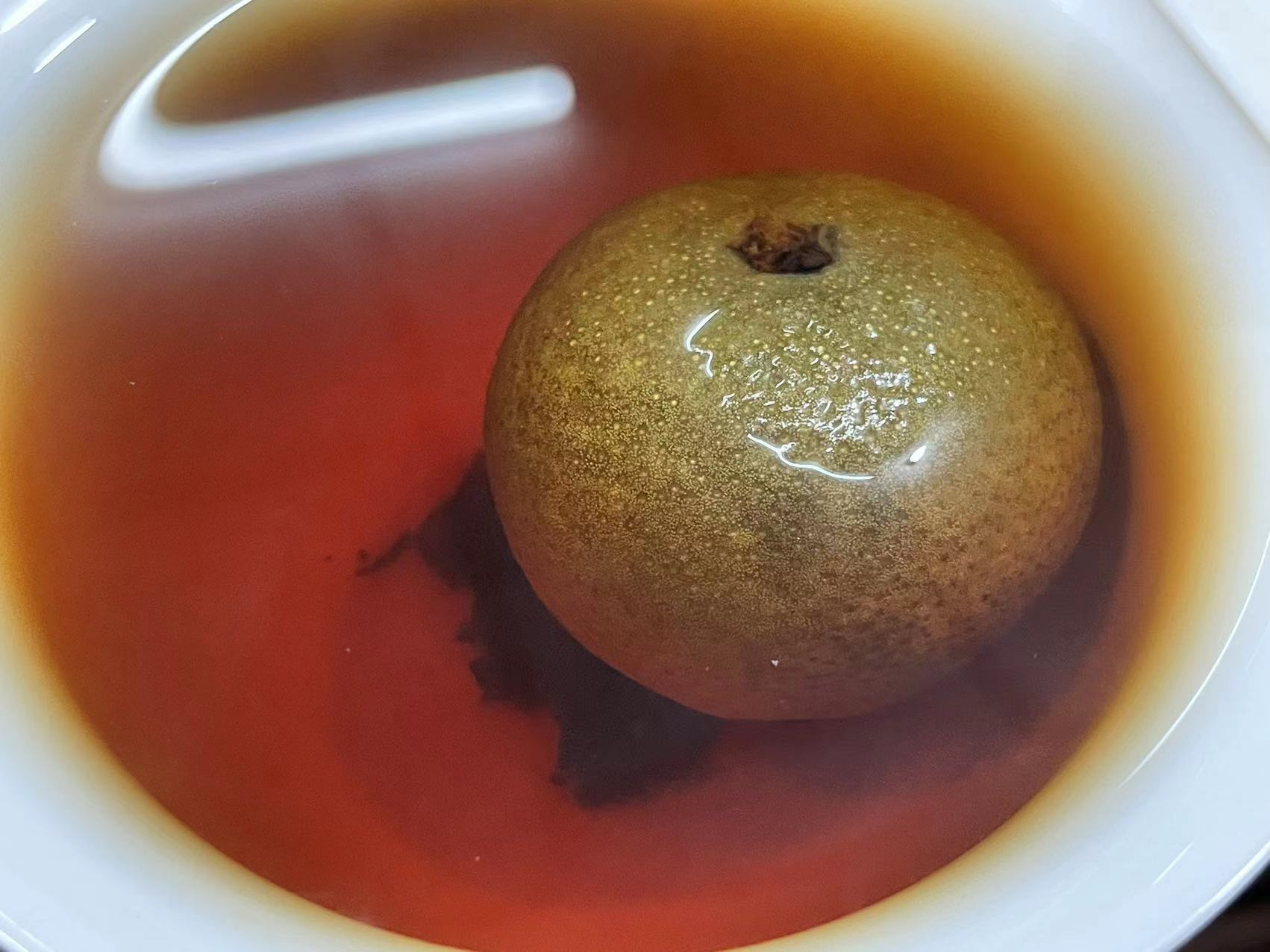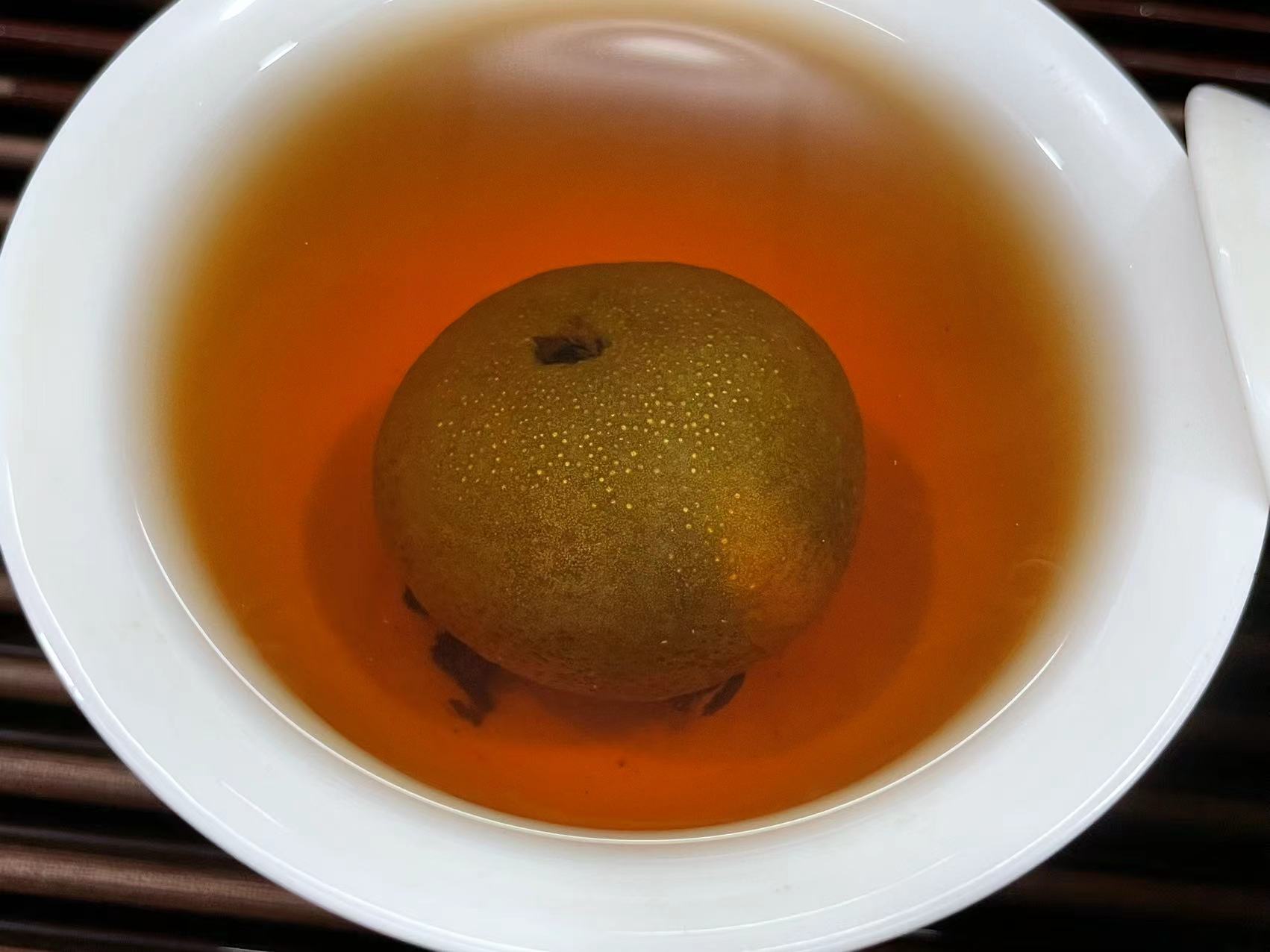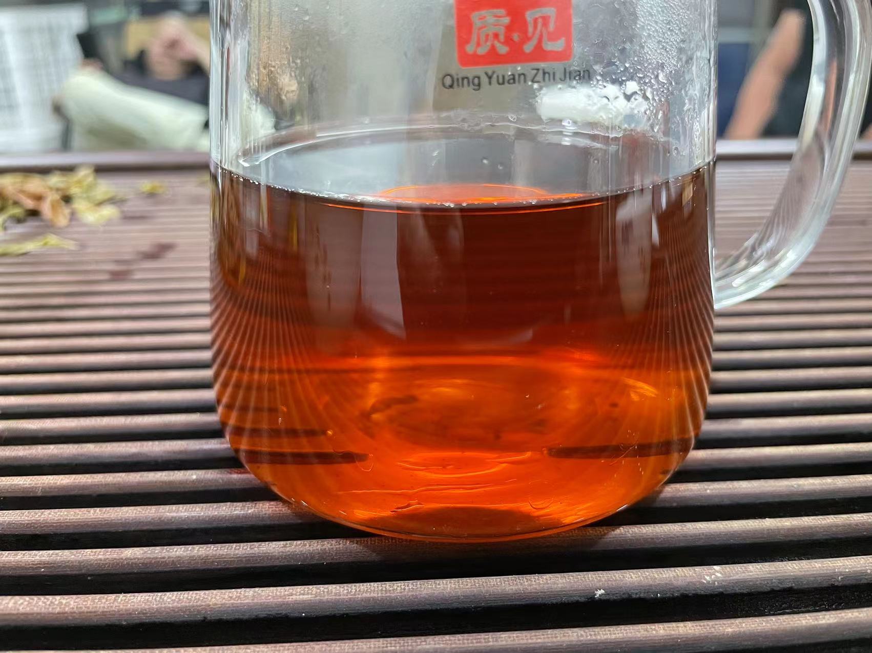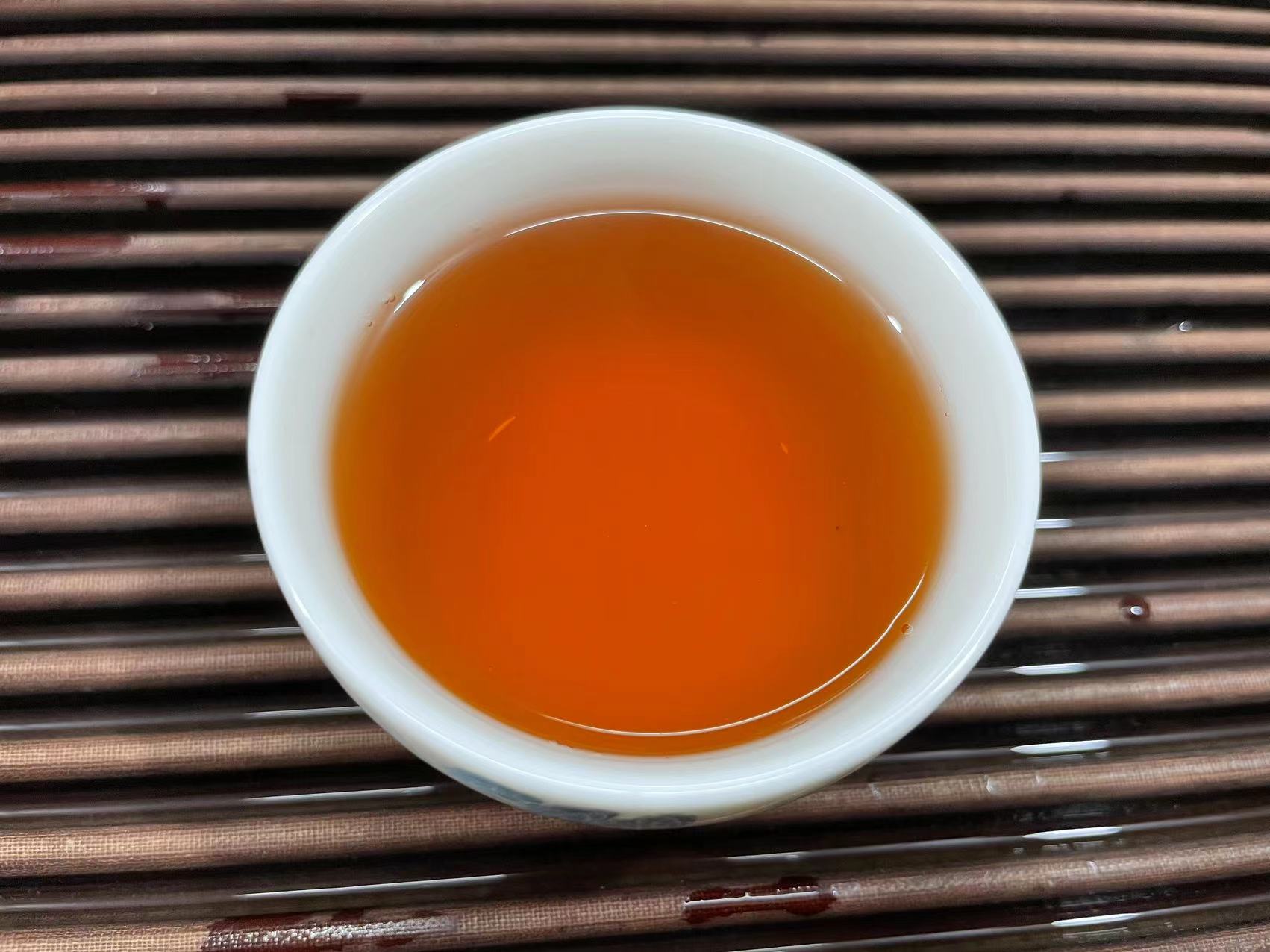 茶汤中熟茶的滋味明显、同时完美裹挟着甜果香,