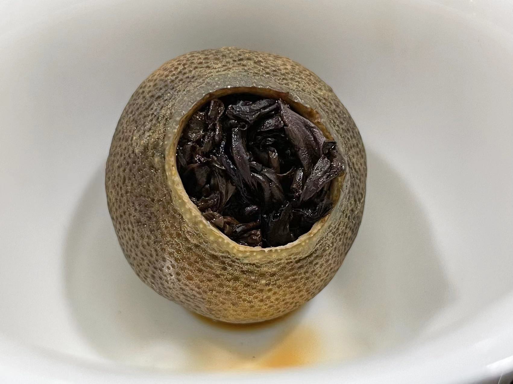 接下来,我们多角度看看我们里面填充的茶叶是什么样的。