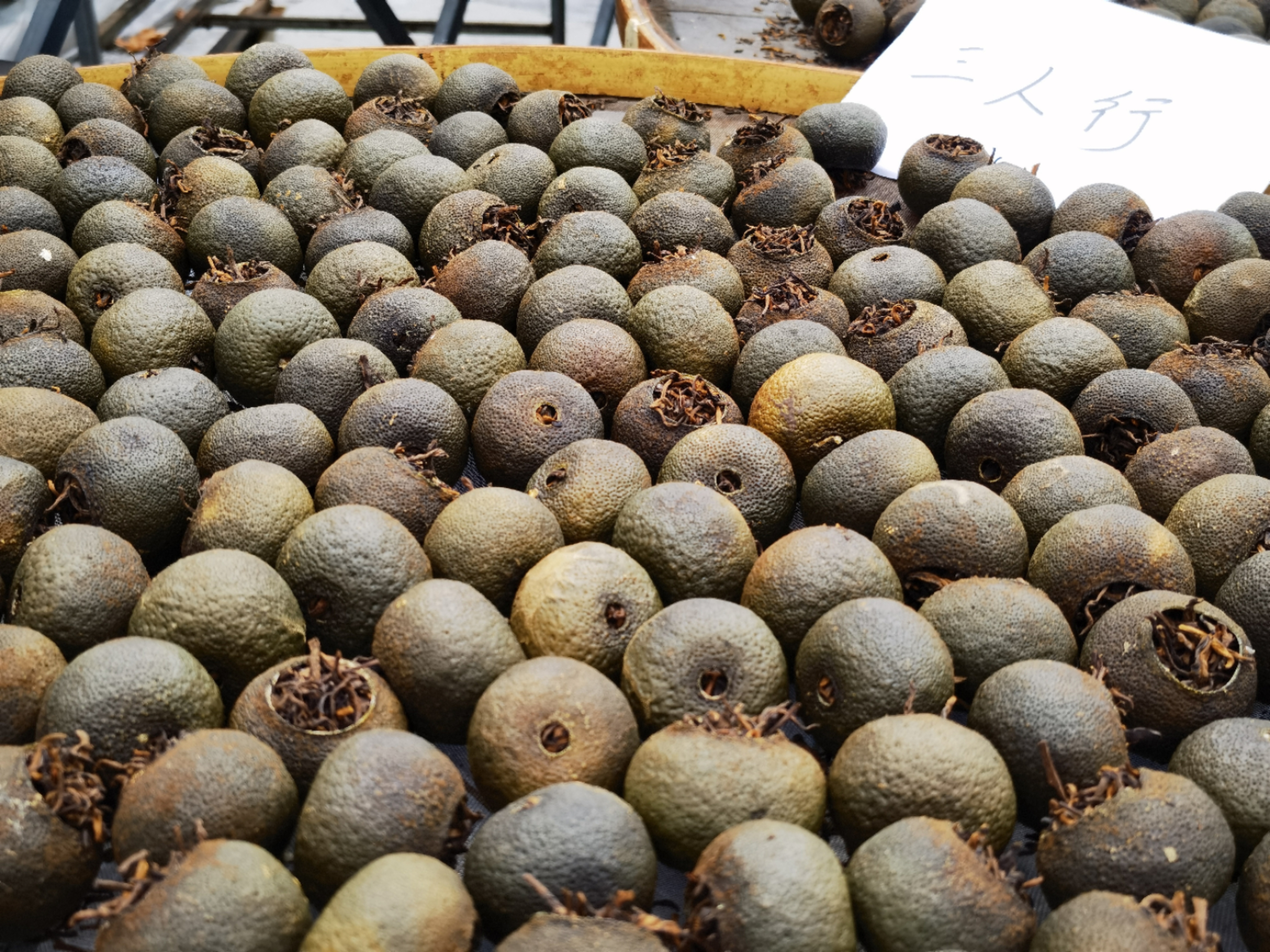 可是,天下好的小青柑茶越来越少,因为被太多“坏人”做坏了,他们为了降低成本,为了蒙蔽对茶不了解的人,为了用价格砸市场抢单,用外地的柑果、或者普通的青橘子(根本不是茶枝柑)、然后填充最烂的下脚料、碎末茶(主要是乌龙茶或者黑茶的碎末),之后进去烘焙机简单烘焙干就完事…我知道最便宜的小青柑茶30上下一斤…此物还能饮?真想说一句,无量商家,茶界之痛,呜呼,“哀”哉…