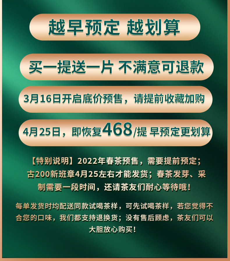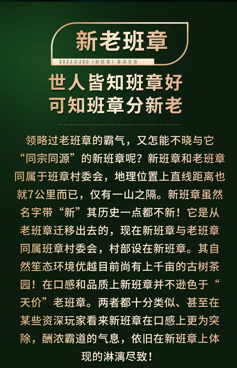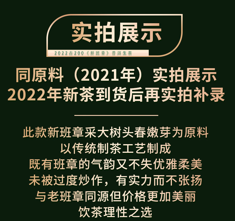 2022春茶 古200新班章云南古树茶普洱茶生茶饼357g*7饼