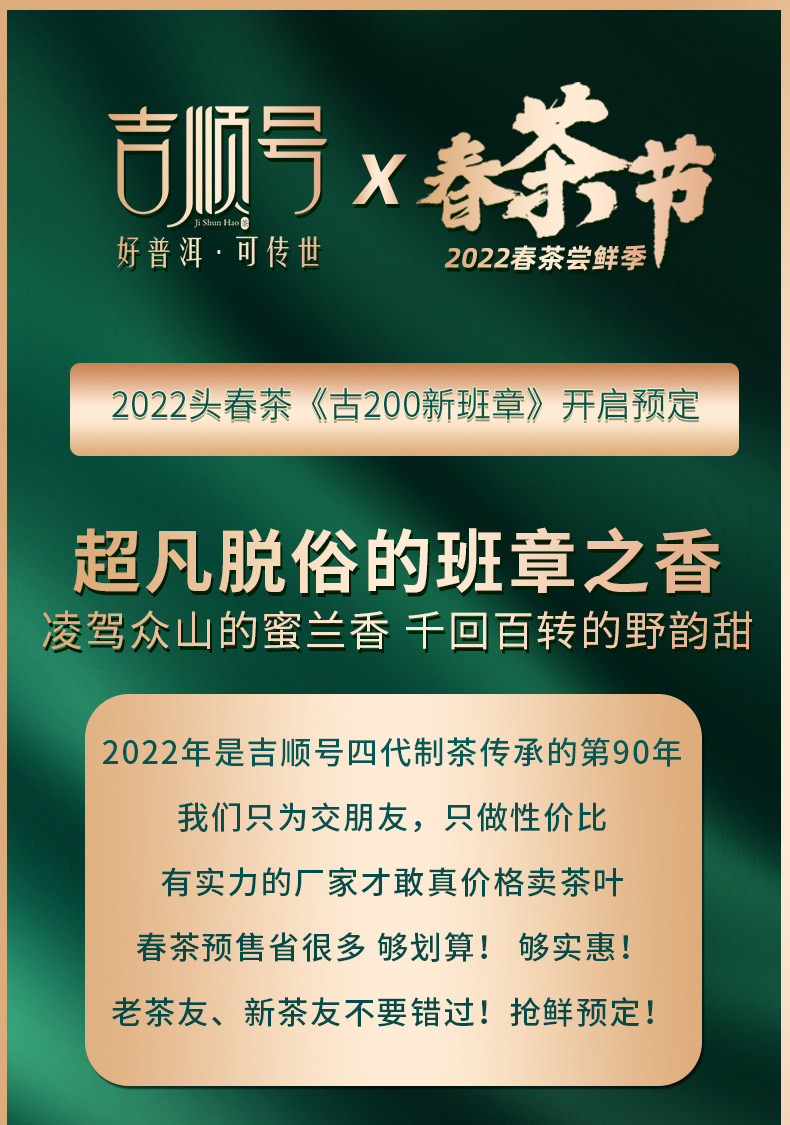 - 云南吉顺号茶业,专业云南普洱茶基地生产销售商。自有基地茶厂及运营仓储物流团队。