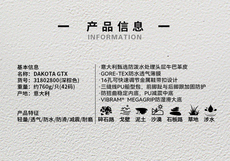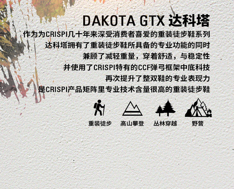 CRISPI春秋重装徒步鞋防滑耐磨户外高帮登山鞋靴达科塔Dakota GTX