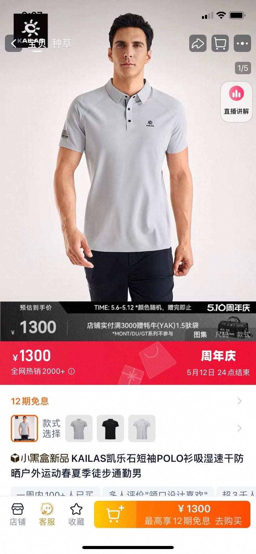 独家订单!全身热压!!KAILAS凯乐石短袖POLO衫吸湿速干防晒户外运动春夏季徒步通勤男