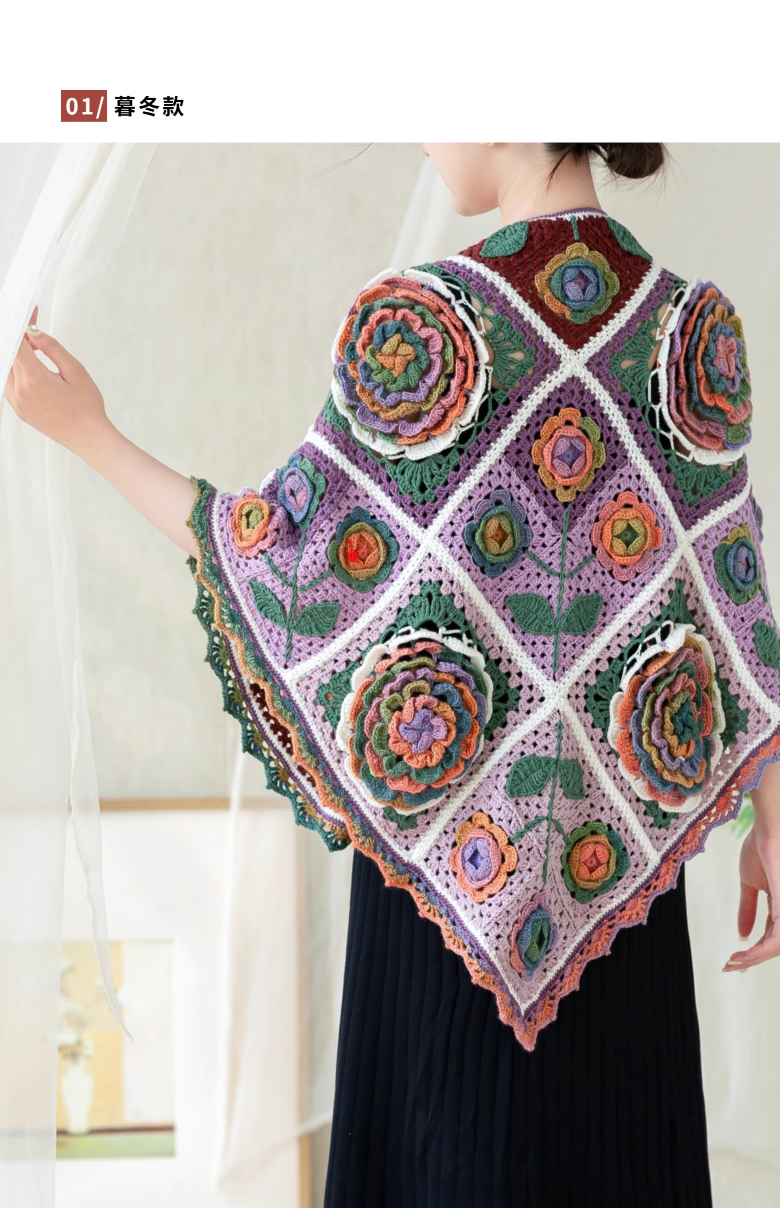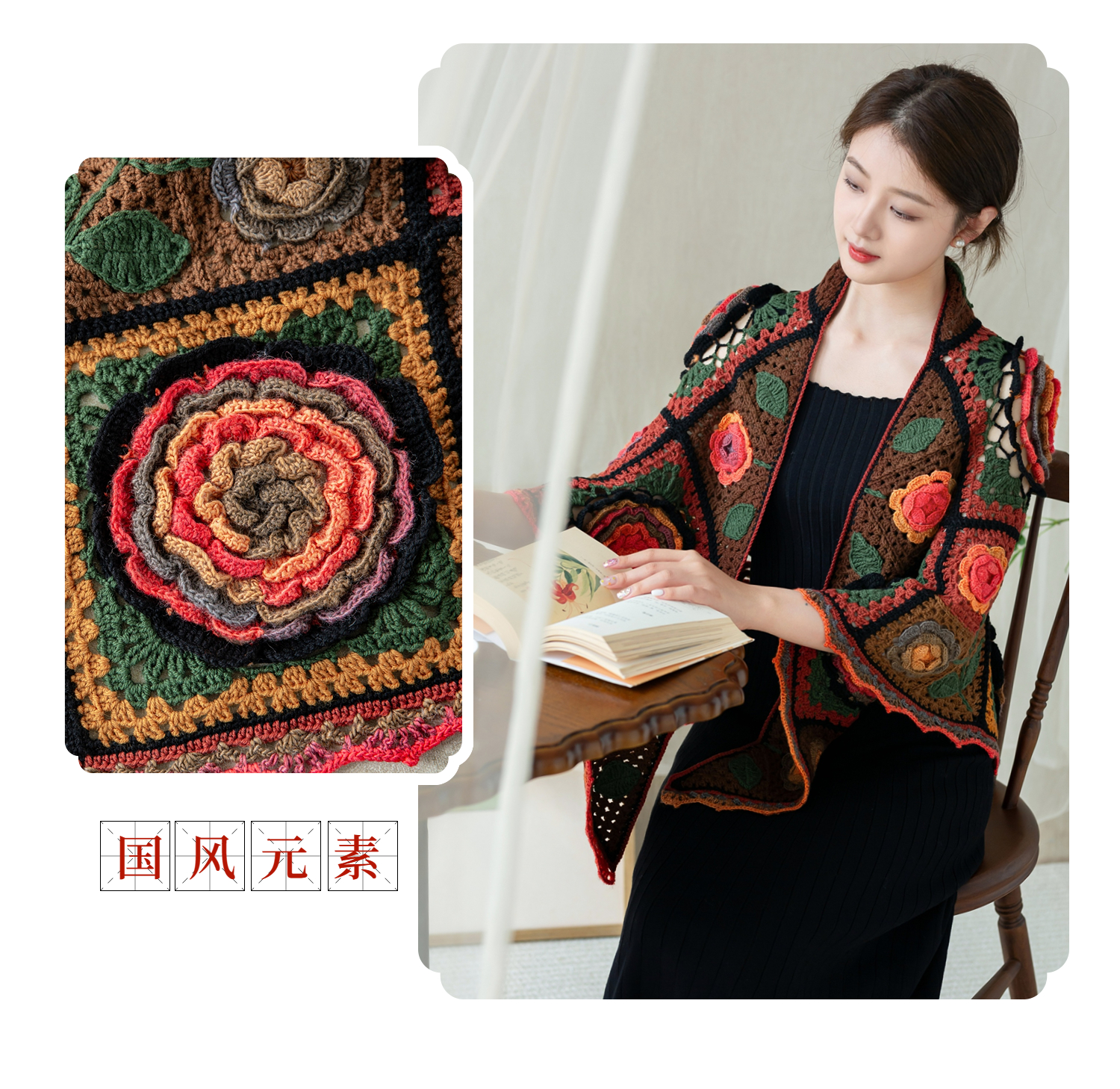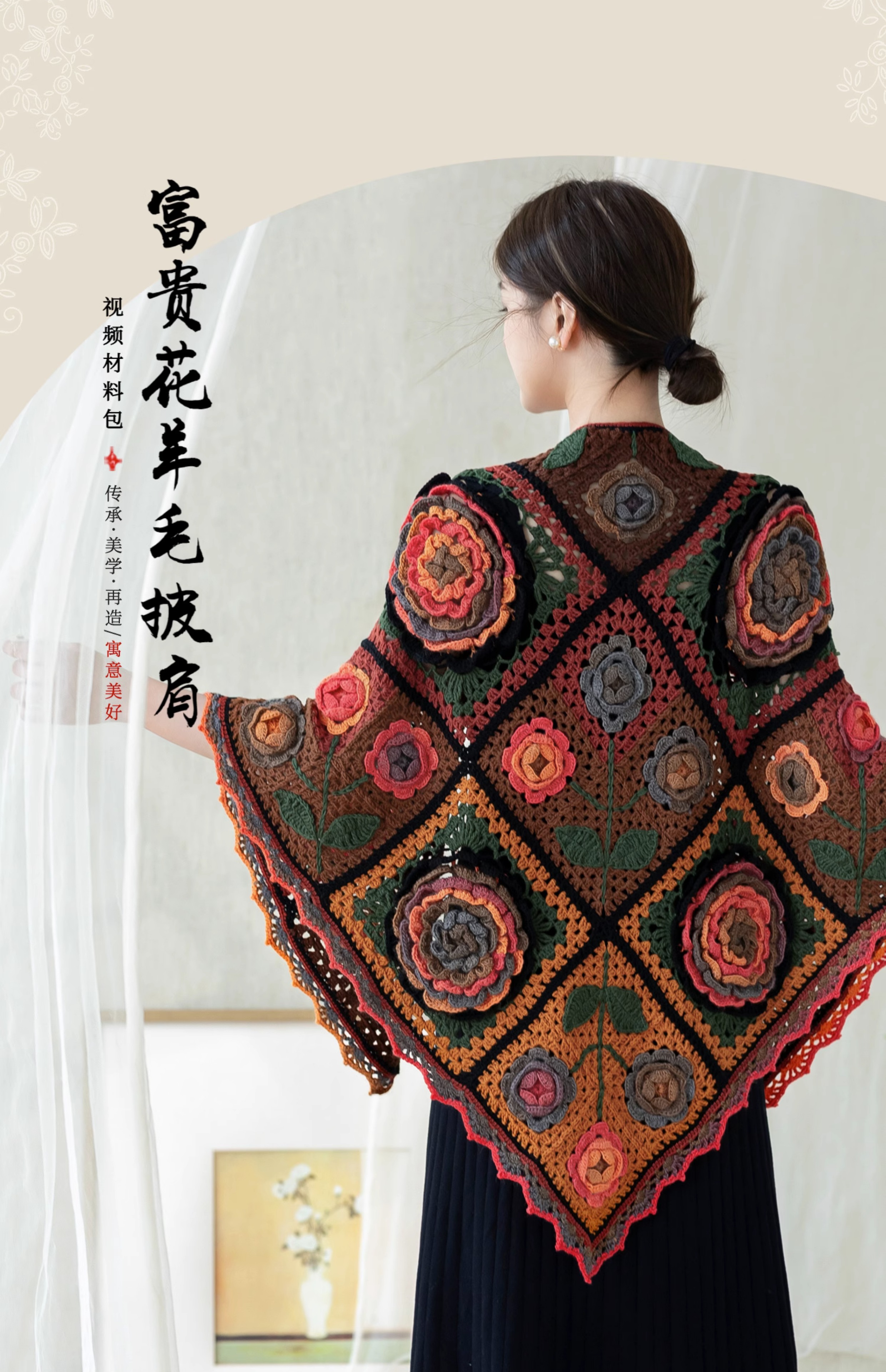 苏苏姐家富贵花羊毛披肩手工DIY编织钩针毛线团自制材料包