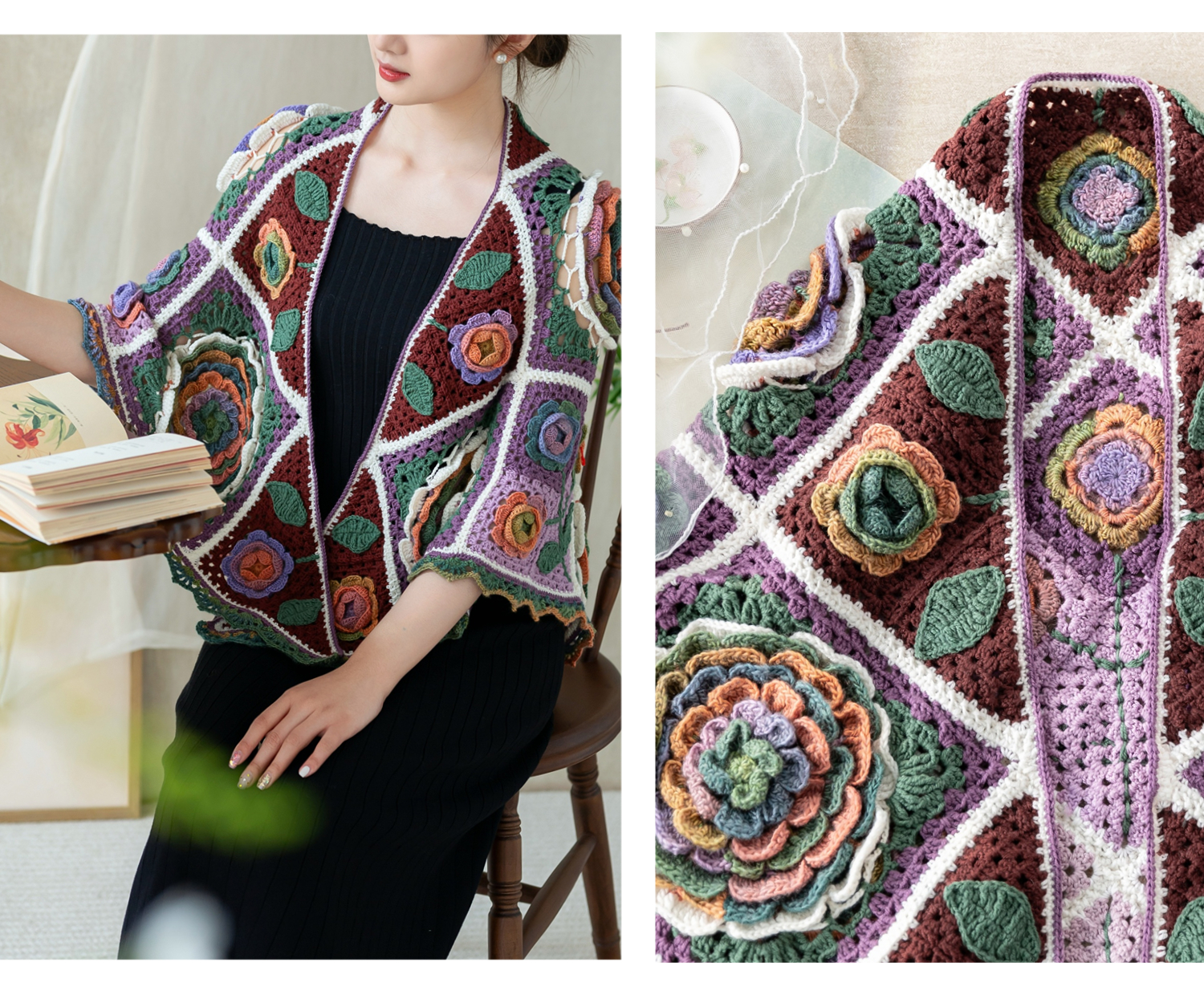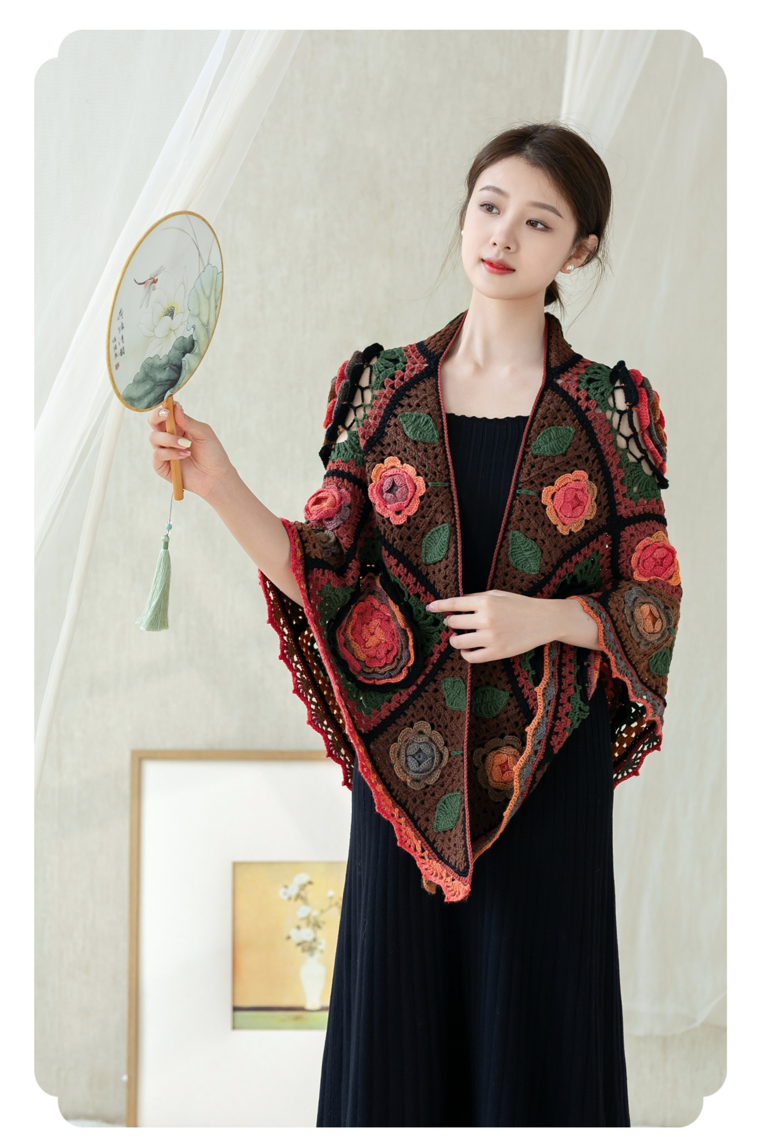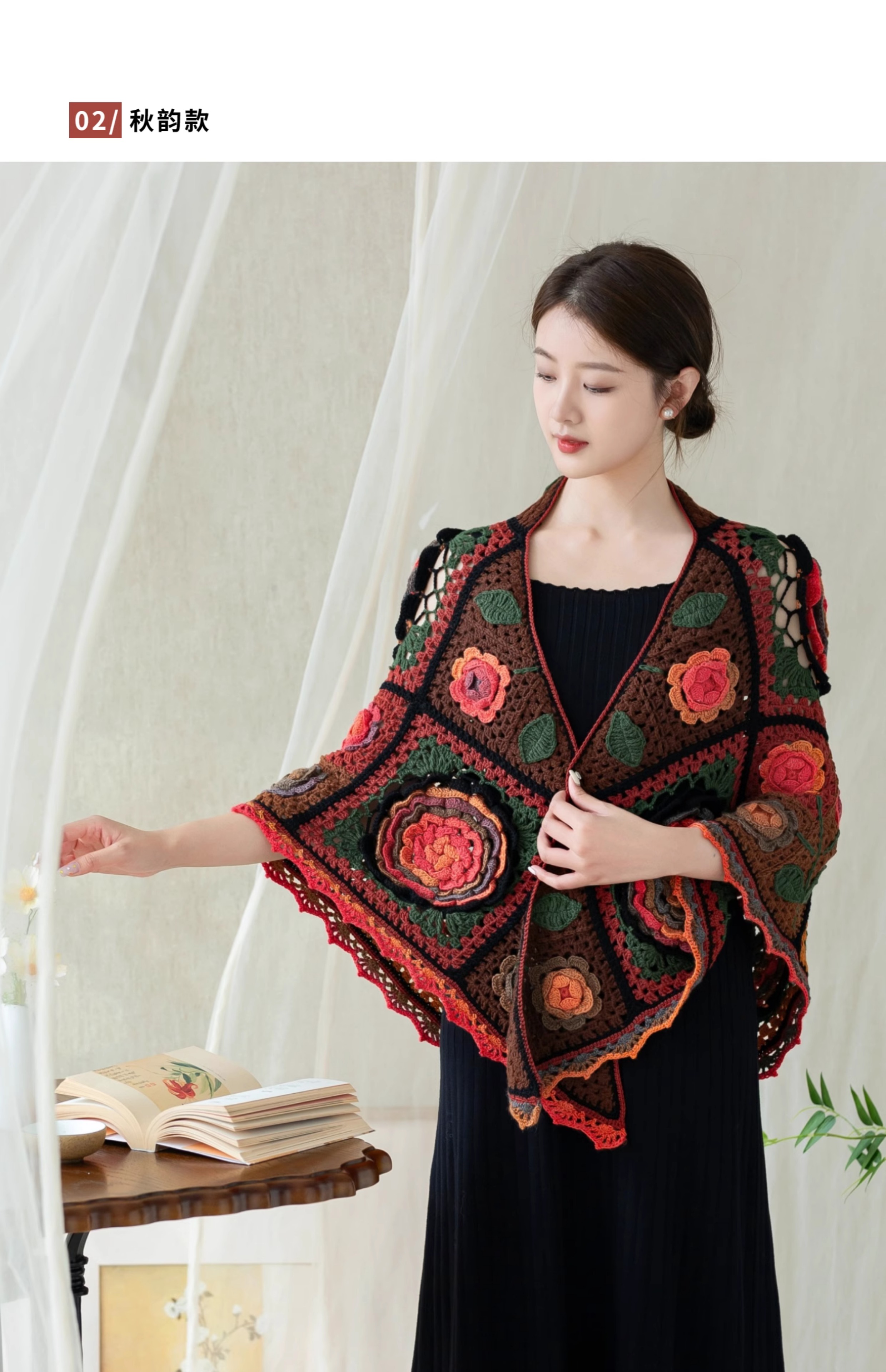 苏苏姐家富贵花羊毛披肩手工DIY编织钩针毛线团自制材料包