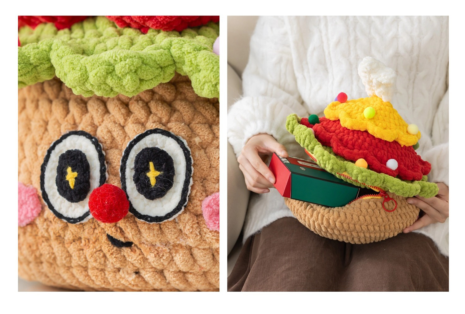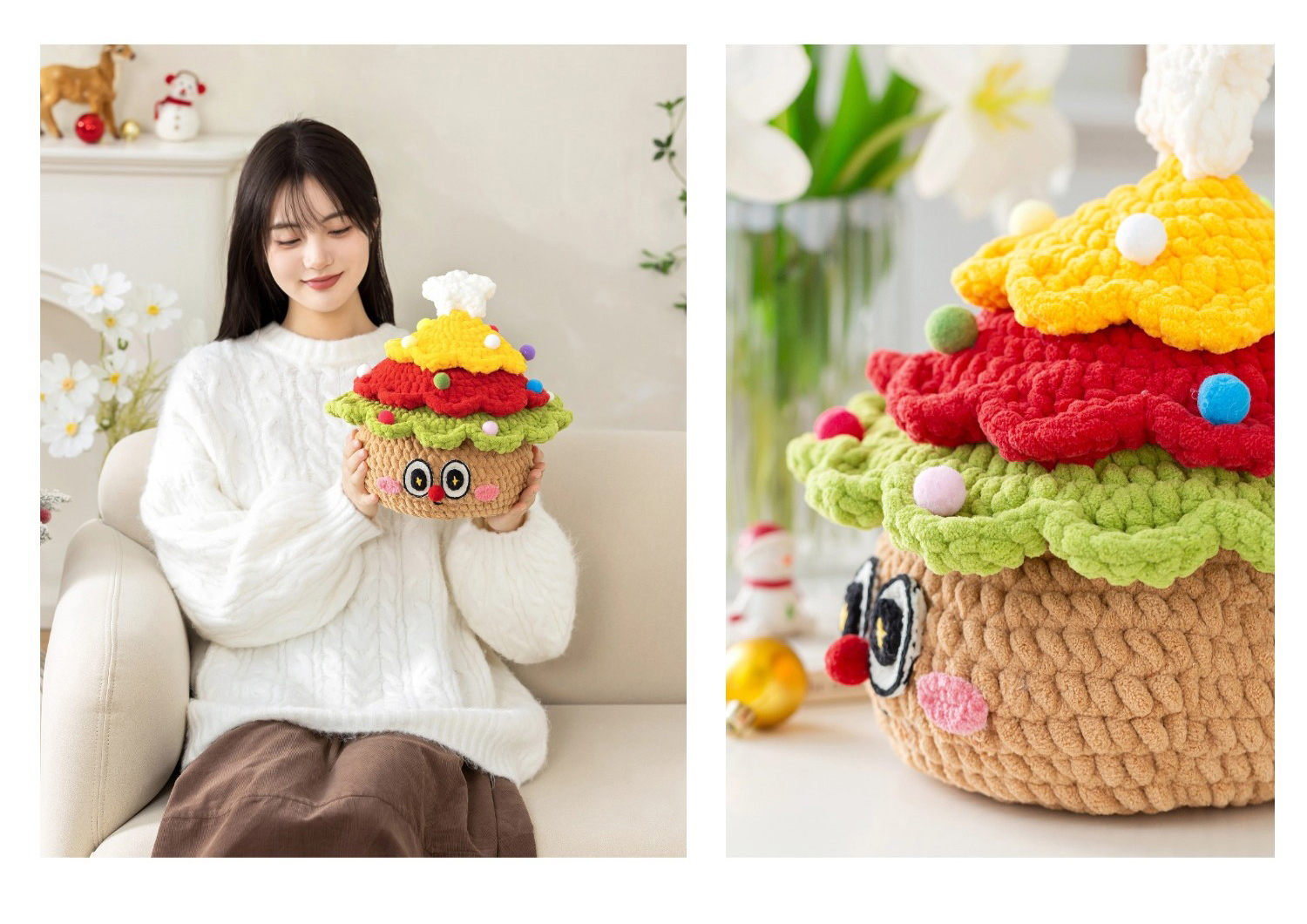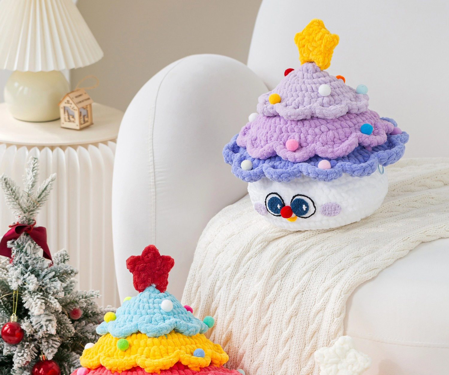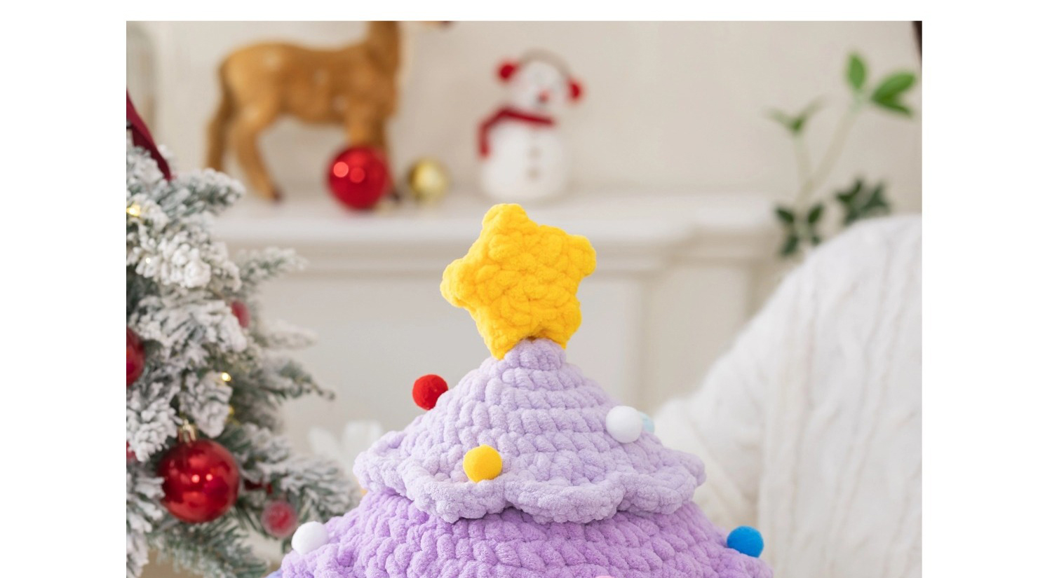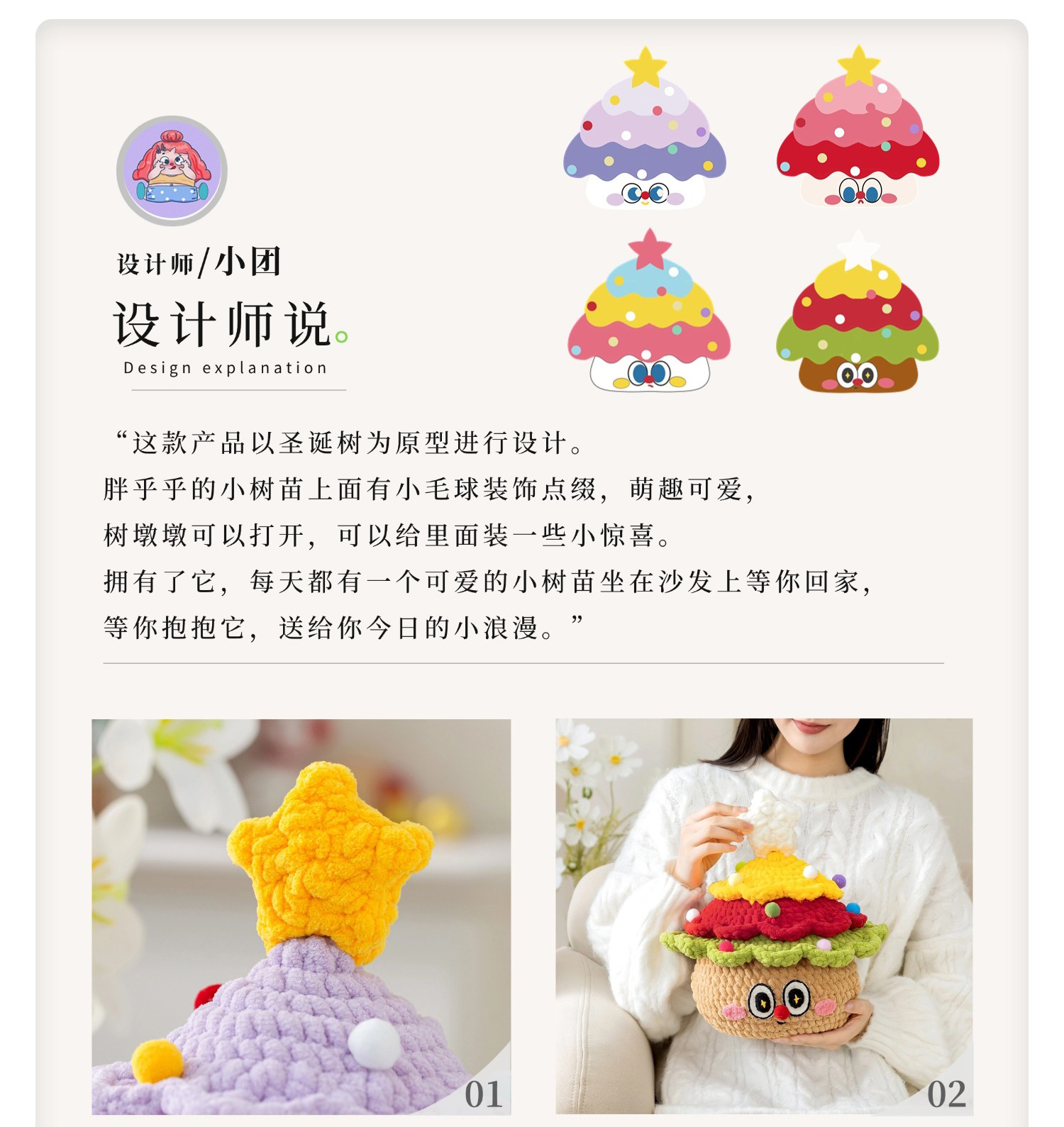 苏苏姐家圣诞树抱枕手工diy编织钩针胖胖云毛线团自制材抱枕料包