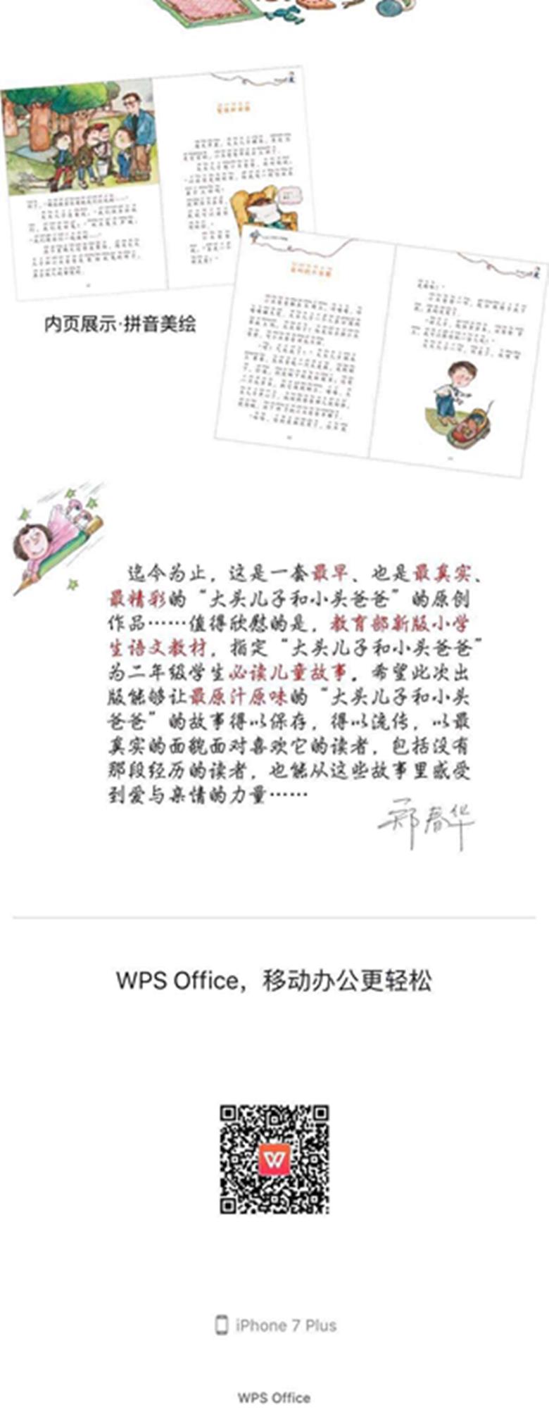 本书包含《两个人的小屋》《会叫的DA皮鞋》《写信和读信》《DA狼灰》等48个故事。这些故事是作家很早发表在儿童期刊上、为满足儿童阅读需求而创作的,是原汁原味的“DA头儿子和小头爸爸”经典原著故事。作家从儿童的视角出发,用精致细腻的文字,构建了一个温馨幸福,充满欢声笑语的家。这个家里有一个顽皮可爱、长着DA脑袋的DA头儿子;一个总是陪儿子一起疯玩、有很多好主意的小头爸爸;一个喜欢洋娃娃、会迷路,但又温柔善良的围裙妈妈。他们之间发生了一系列充满童真童趣的小故事,这些小故事就像真真切切发生在小读者身边一样,让小读者在欢声笑语中品味亲情与温暖,成长与感动。
