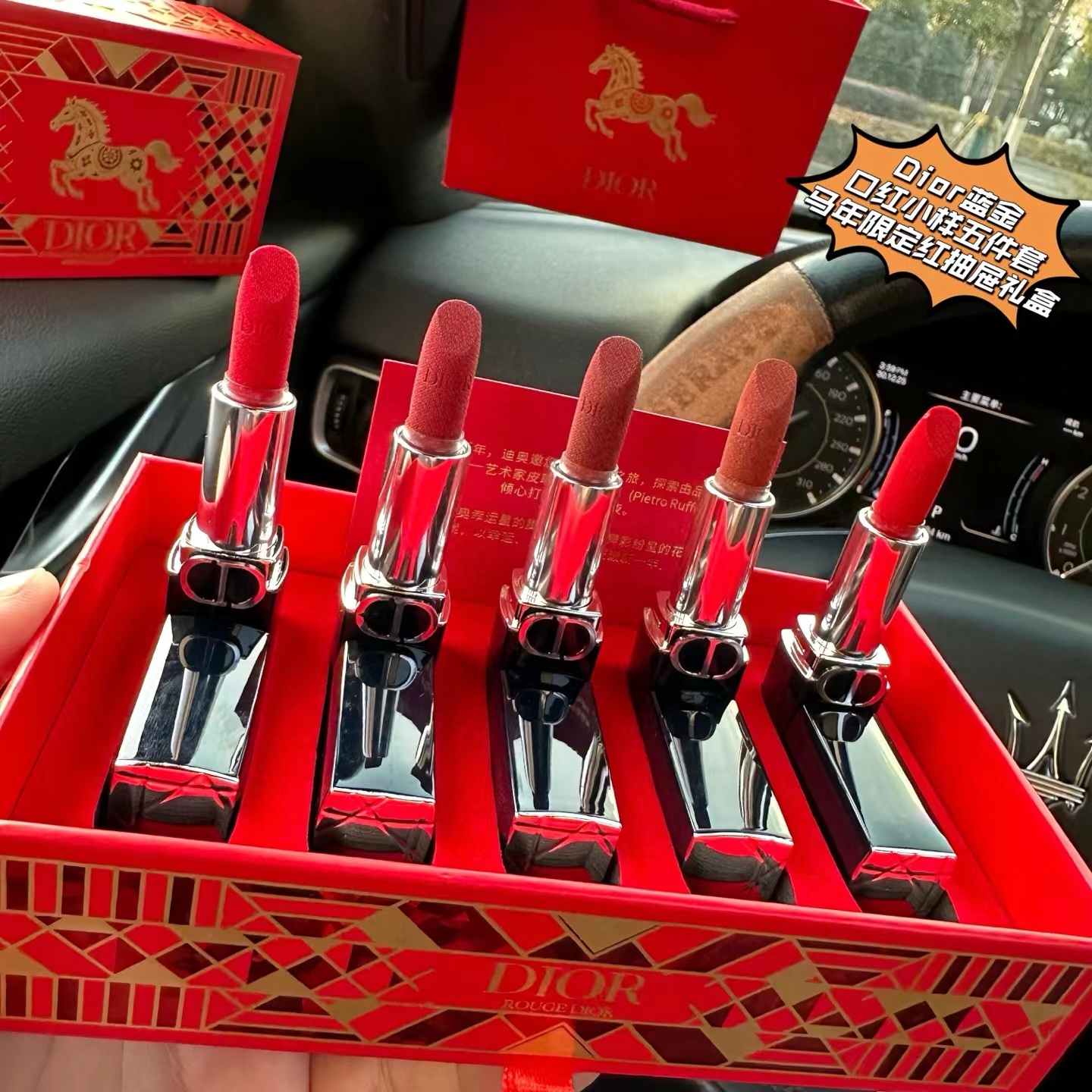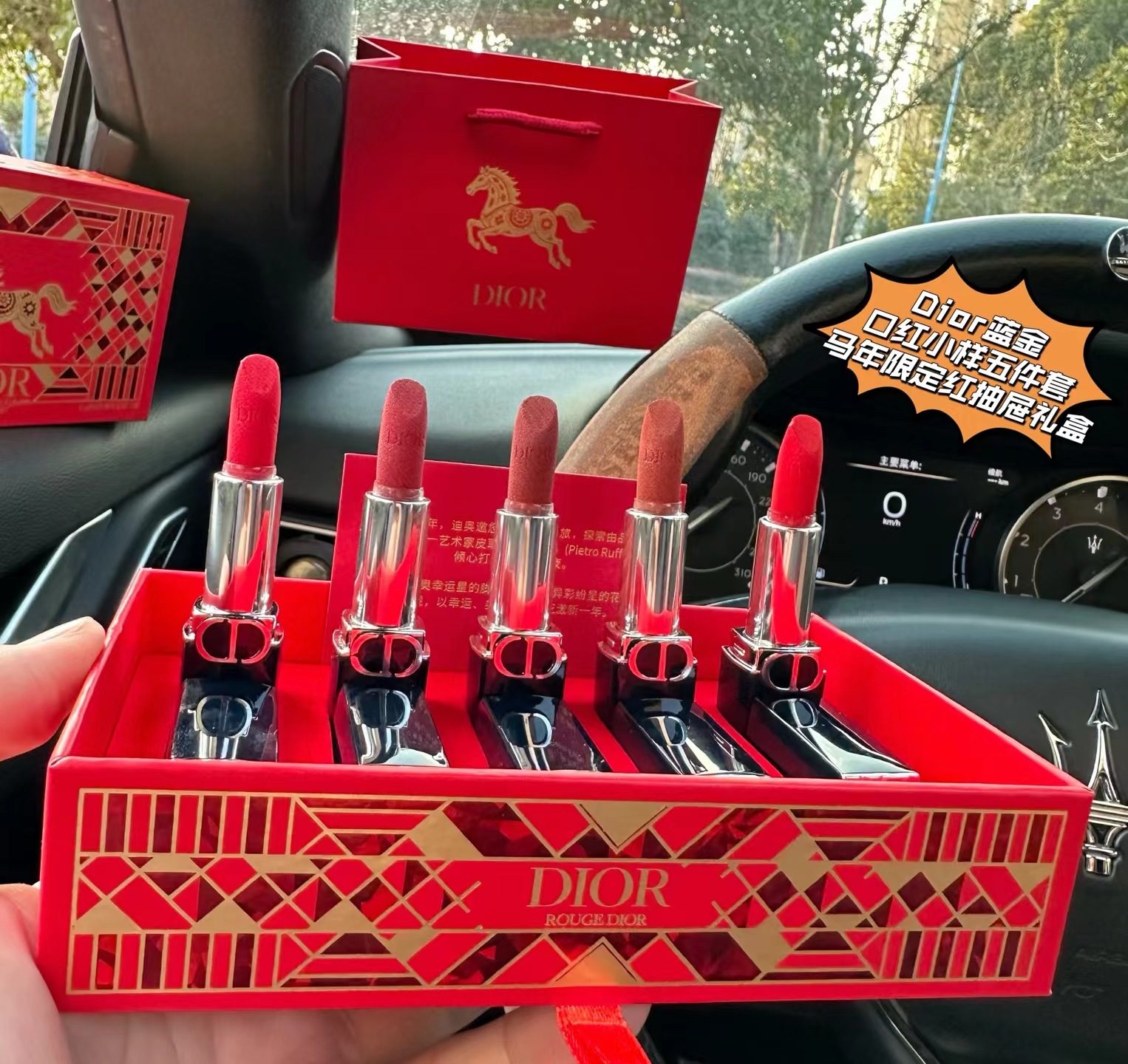以精典贺新生,以时光鎏金,封 藏精典魅力,当法式优雅邂逅东方传 奇,以 「马年」为序,雕琢时光之礼#【蓝金口红小样5件套马年限定红抽屉礼盒】醉火的几个色号全在礼盒中,内含:5X1.5g!色号:999红唇丝绒+720豆沙红棕丝绒+188赤霞裸色丝绒+228茶红棕色丝绒+888哑光橘调正红!每一支都是那么精典,不容错过,抢到就是赚到!每一个颜色都炒鸡无敌巨好看!不挑皮肤不挑人!无论是哑光感,还是丝绒感涂上后很顺滑,很好涂,也不干,薄涂厚涂都好看,炒鸡显肤色喔,说实话D家每支口红都是精典,一个女人如果不用口红是没有未来的!当代女人一定要学会化妆,化妆不仅仅是取悦自己,更是对他人的一种尊重!一抹瞬间气质升级,巨滋润!超显白!弟萌姐妹萌,这样的礼盒不讨喜吗?关键惊喜太多了,拉开抽屉就是惊艳,这样的逆T浮力,闭眼抢!