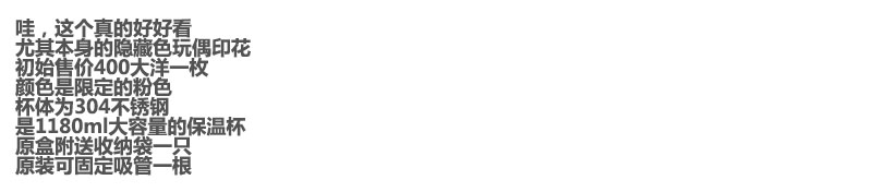 太可爱噜,限定粉保温杯。1180ml大礼盒+收纳袋+固定吸管C070368
