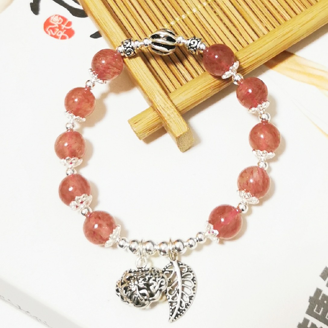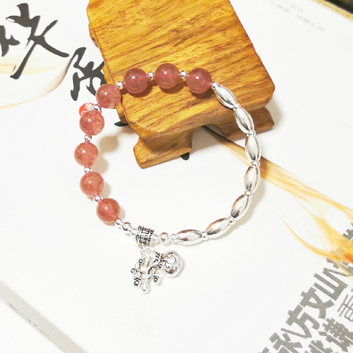 【桃花】【s925银新款摩根石草莓晶】韩版甜美粉色草莓晶招桃花,复古风,百搭森系小众手串珠手链送闺蜜礼品QQ情人节礼物