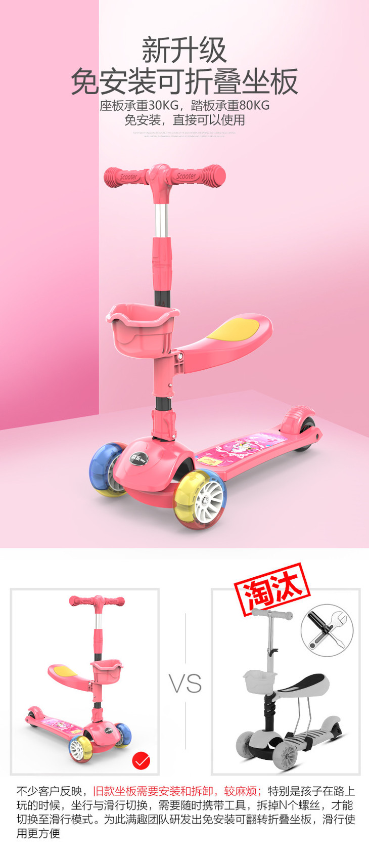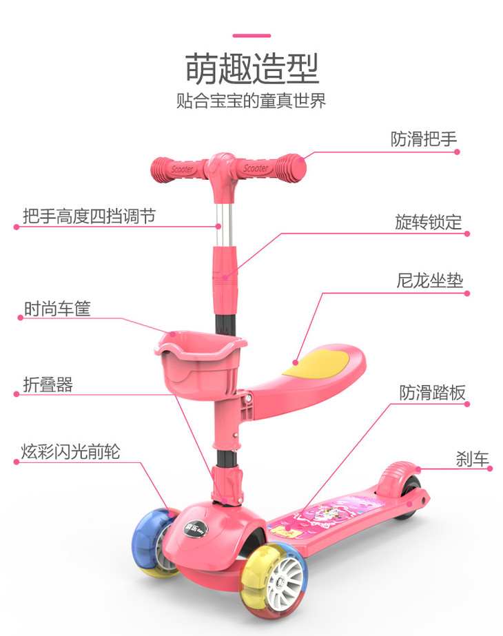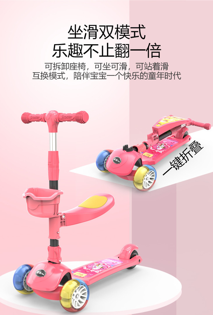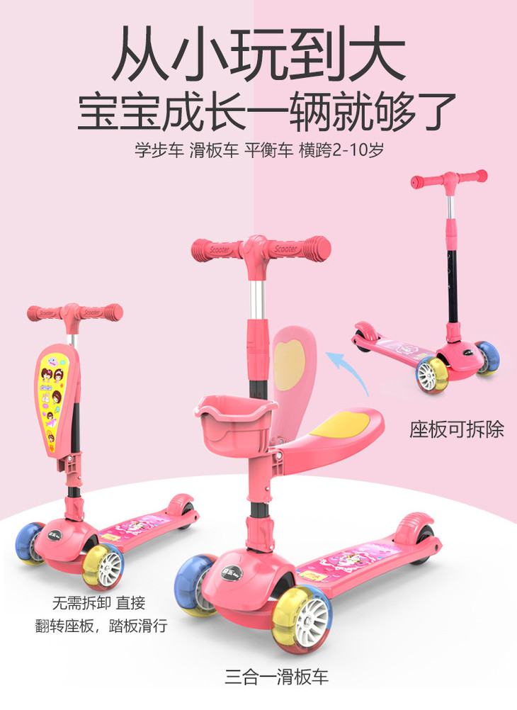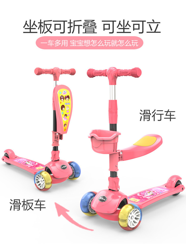 【儿童玩具】*滑板车1-2-3-6-12岁三合一可坐溜溜车女孩男宝宝小孩踏板车